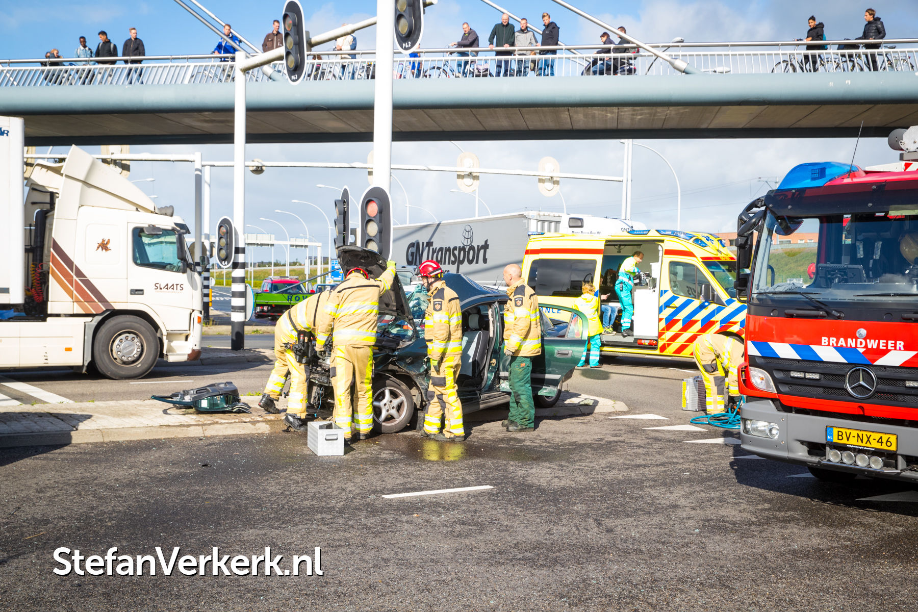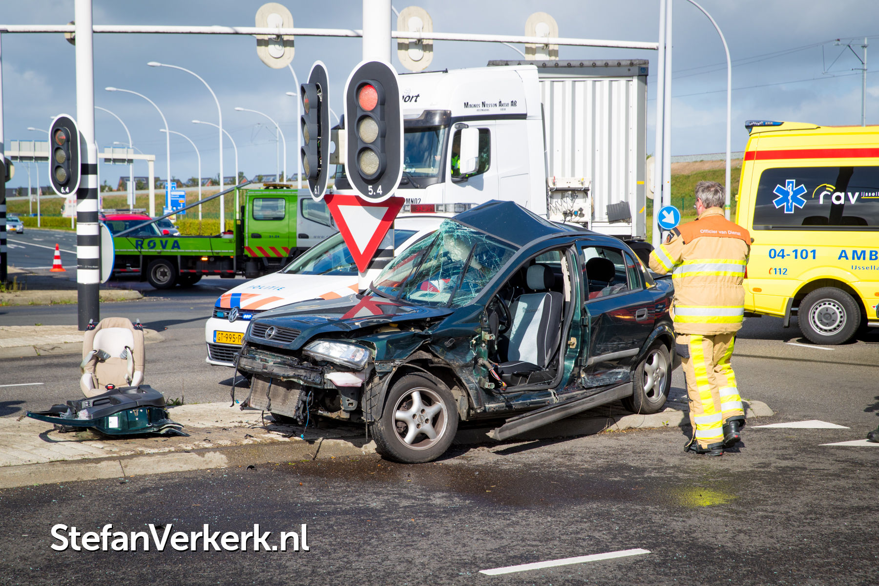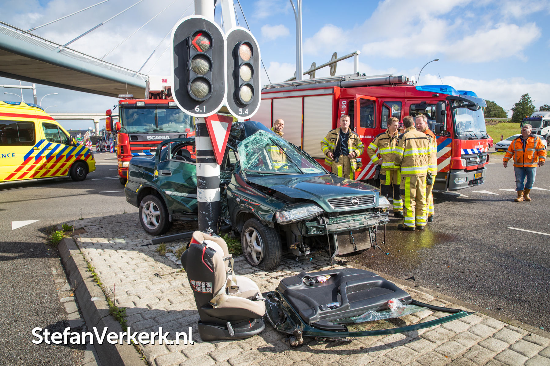 Foto's: Ongeval auto tegen paal verkeerslichten Hasselterweg Zwolle
