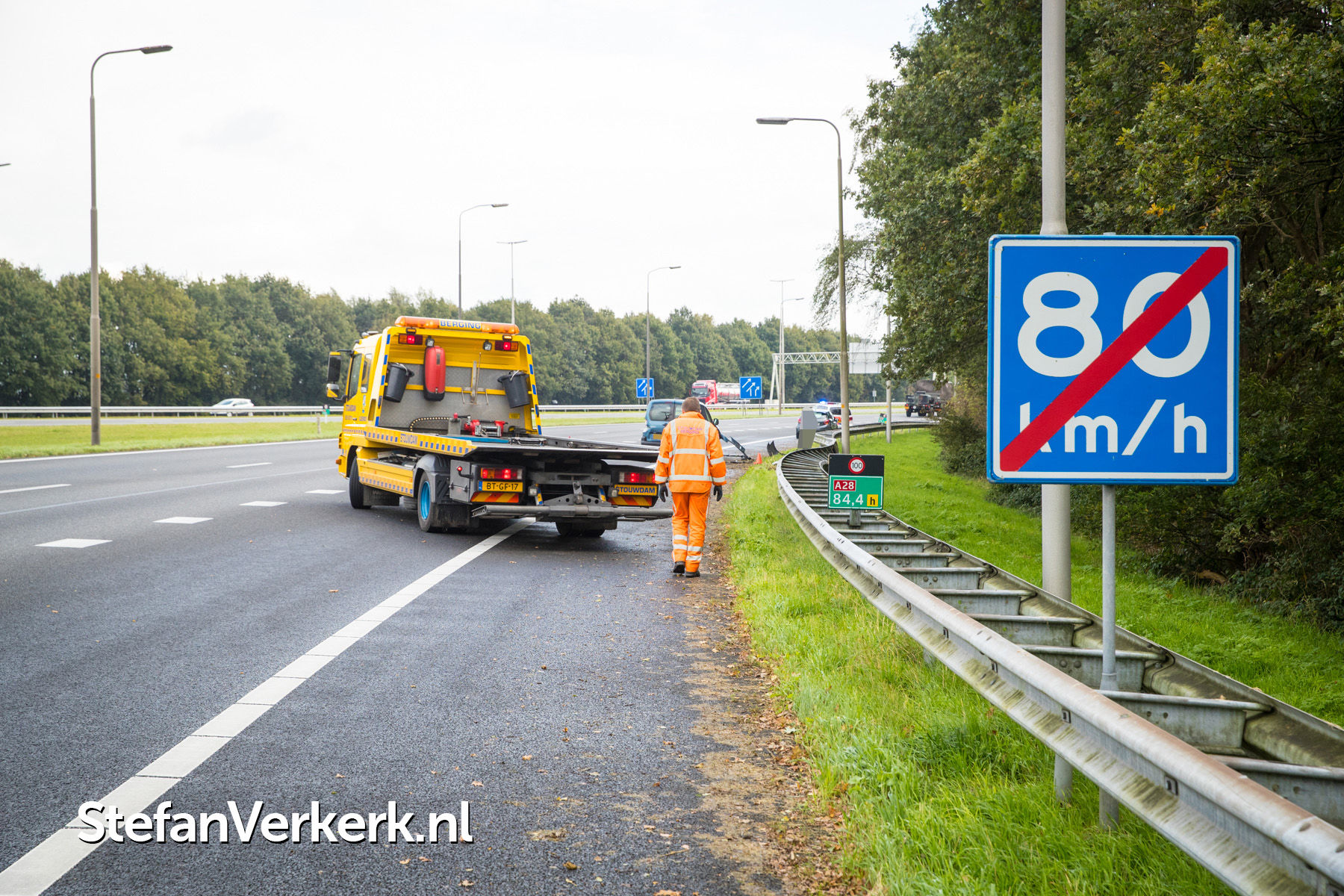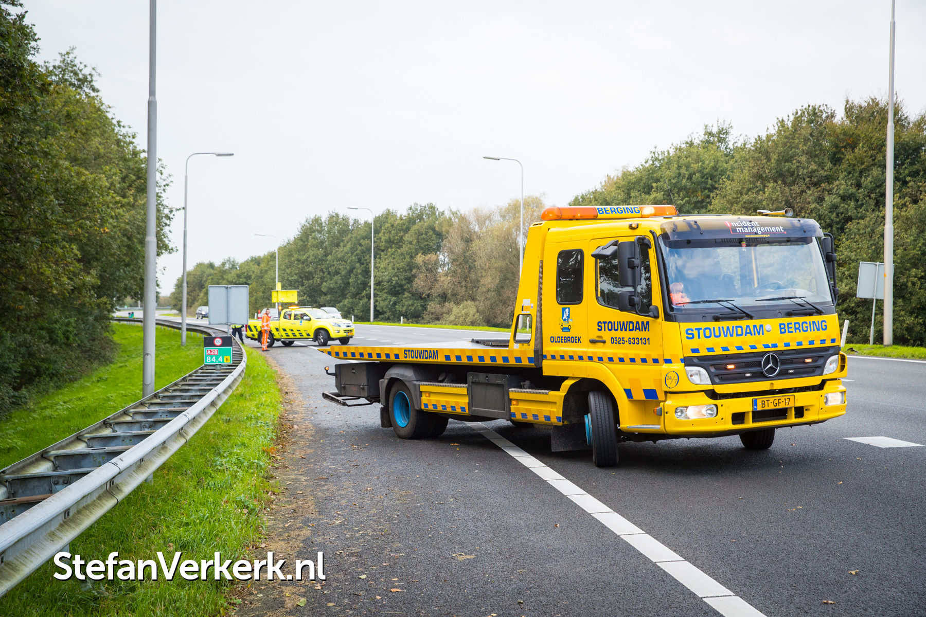 Foto's: Ongeval auto tegen vangrail A28 Li 84,4 h knooppunt Hattemerbroek