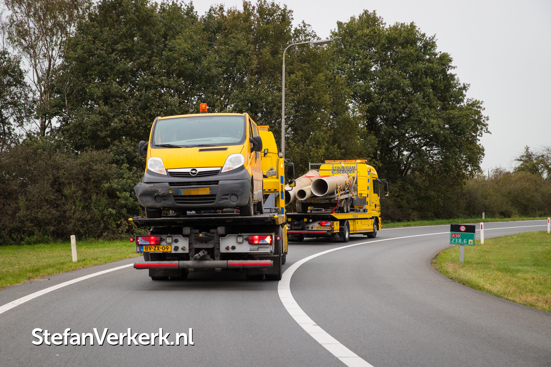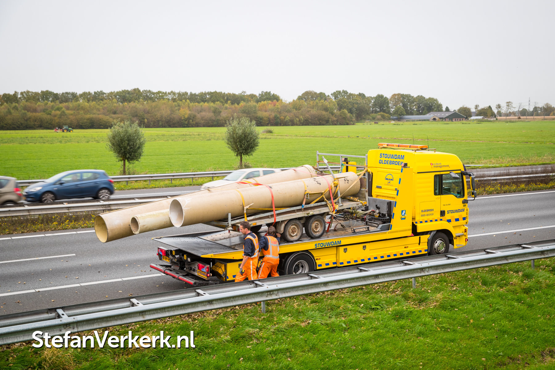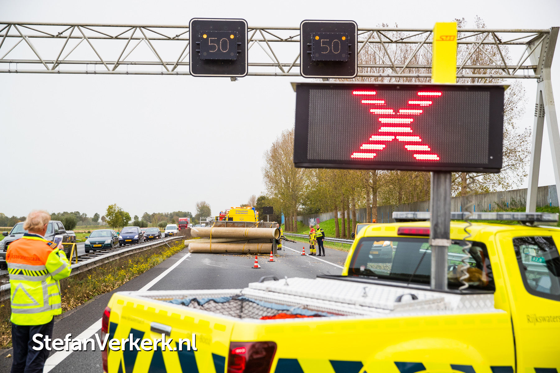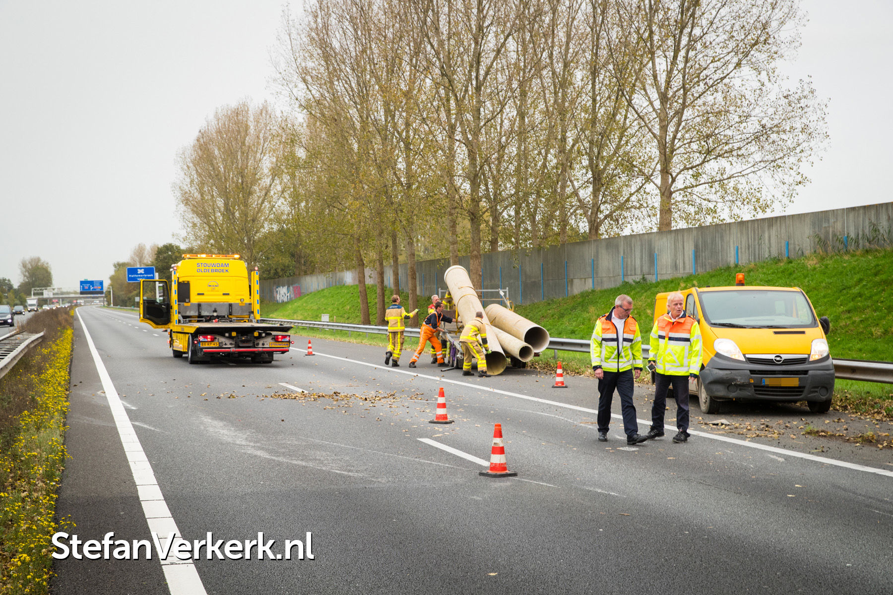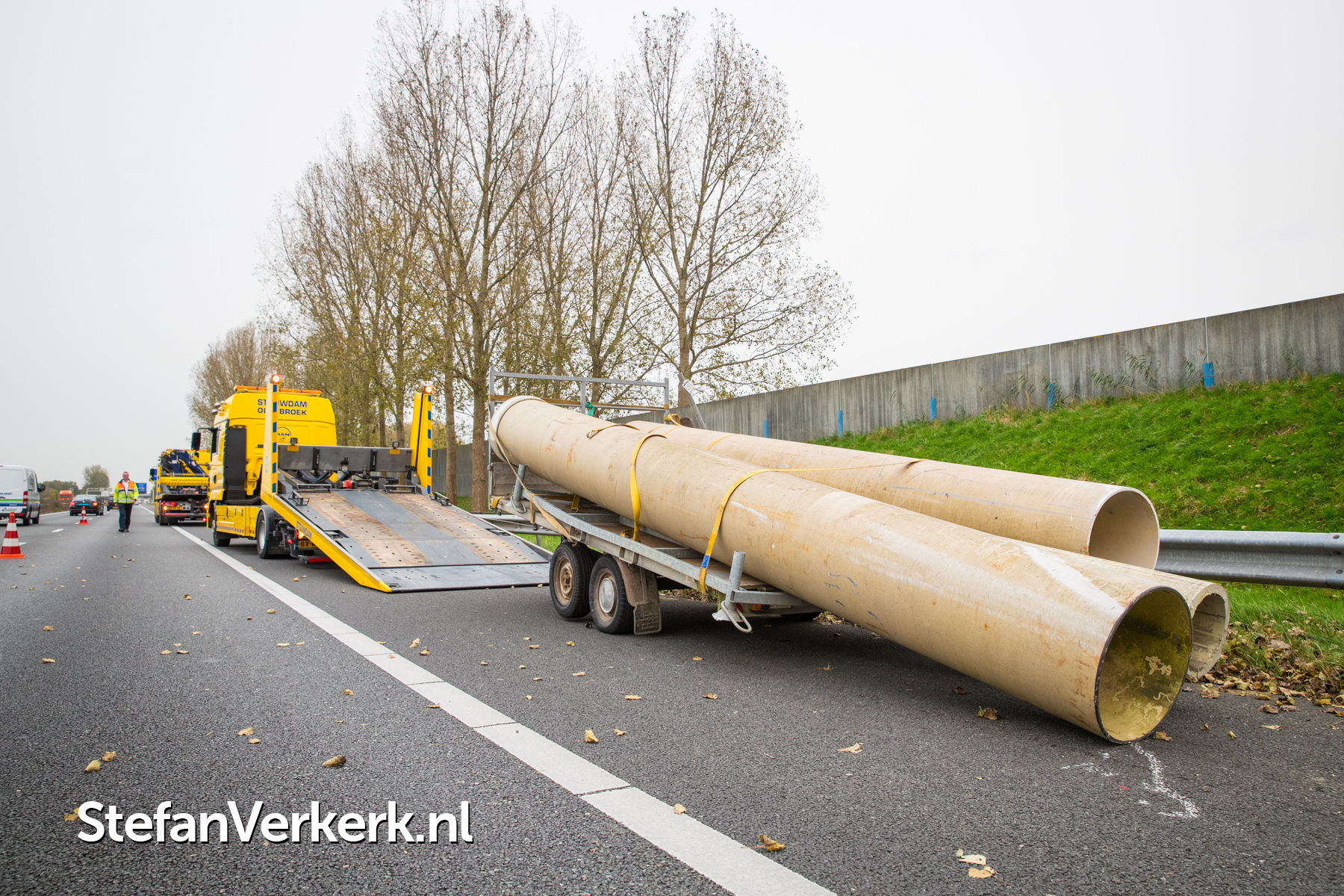 Foto's: Ongeval aanhanger met buizen geschaard A28 R 82,8 Wezep