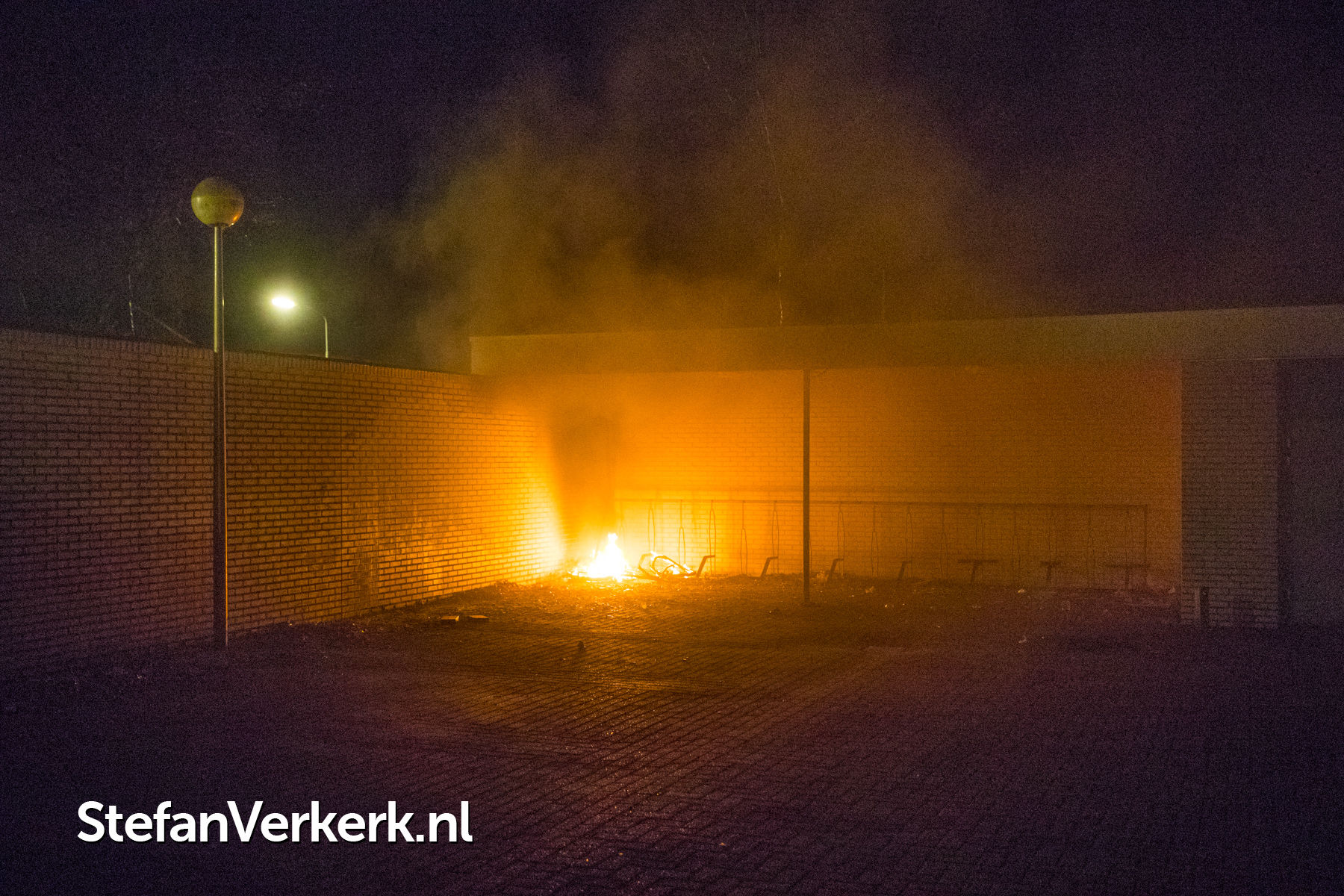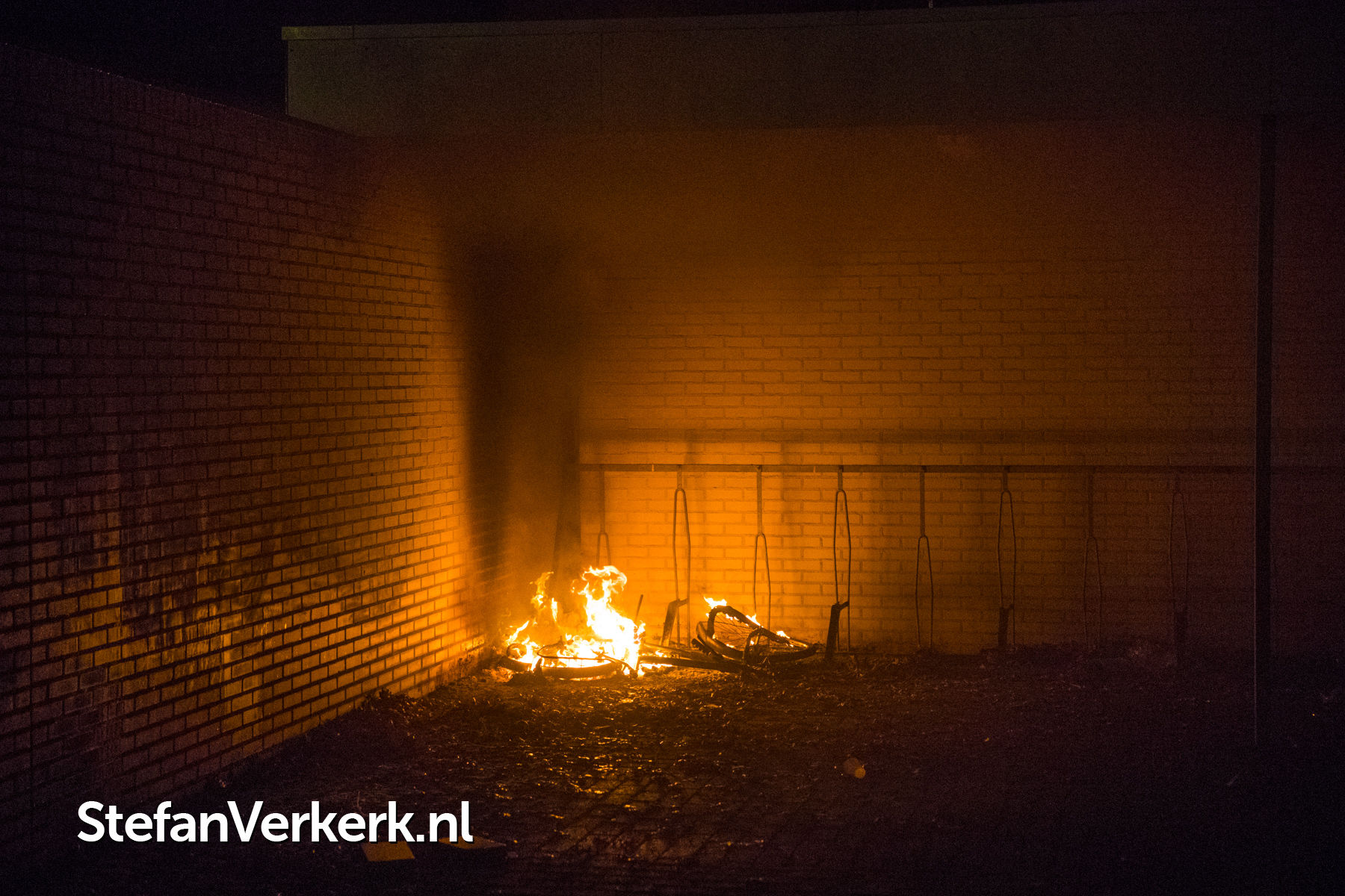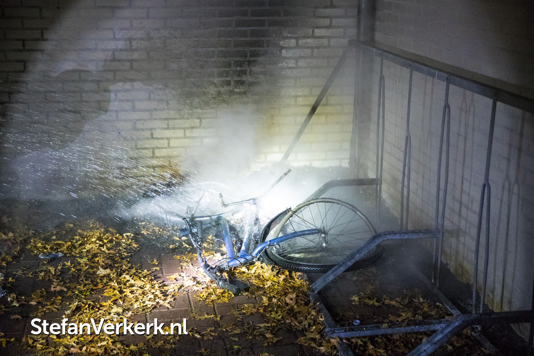 Foto's: Brandstichting fiets in fietsenstalling Clematisstraat Wezep
