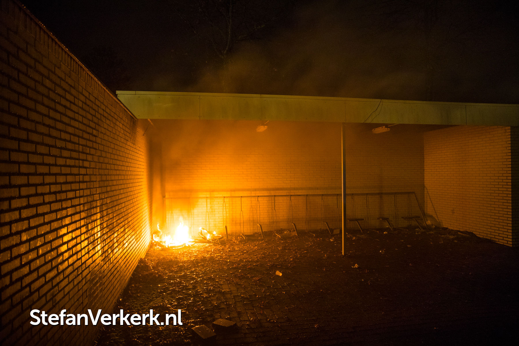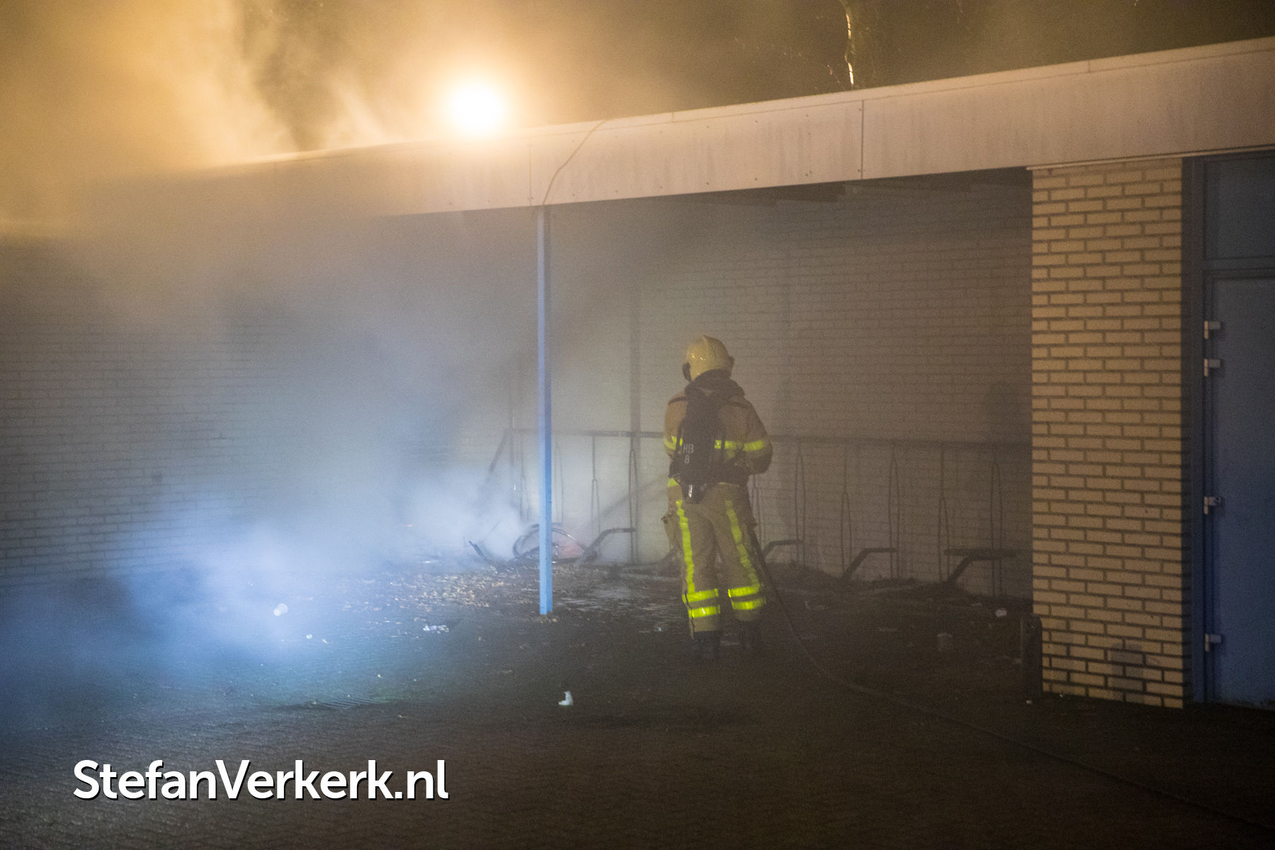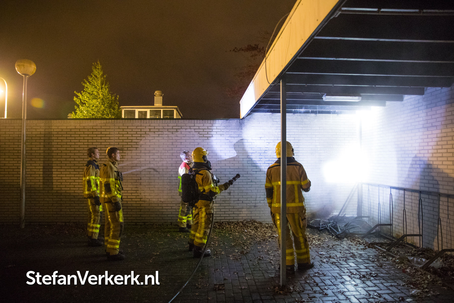Foto's: Brandstichting fiets in fietsenstalling Clematisstraat Wezep