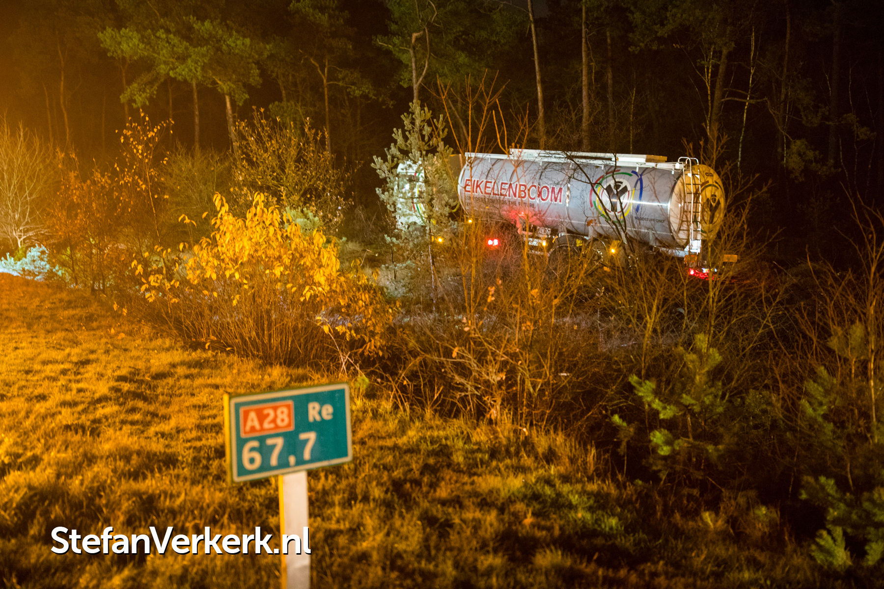 Foto's: Ongeval vrachtwagen van de weg A28 R 67,7 Nunspeet - 't Harde
