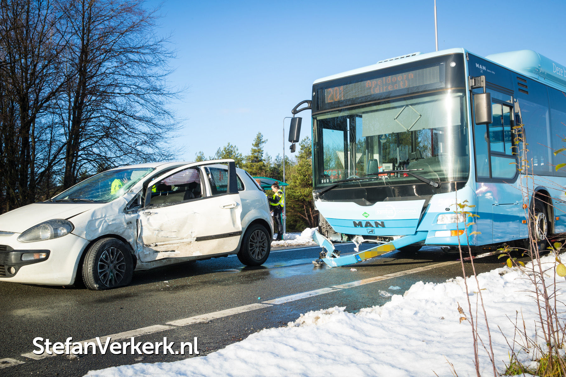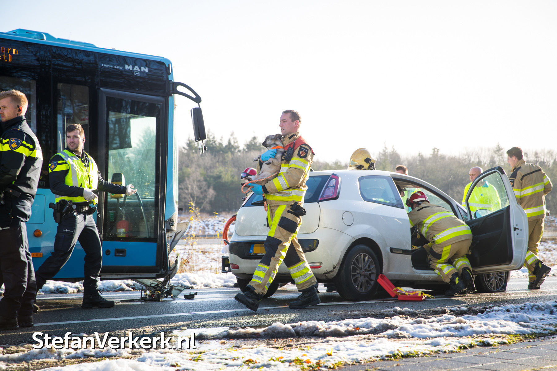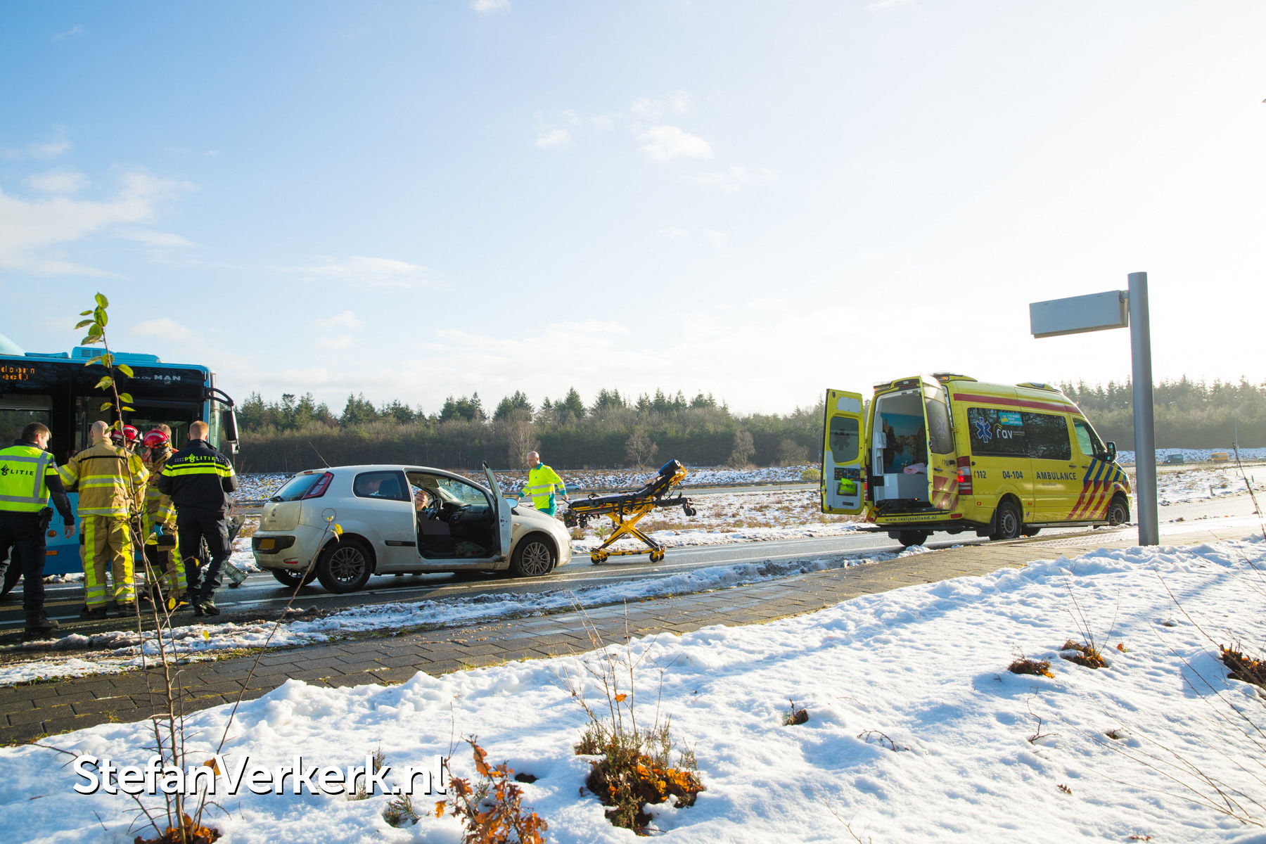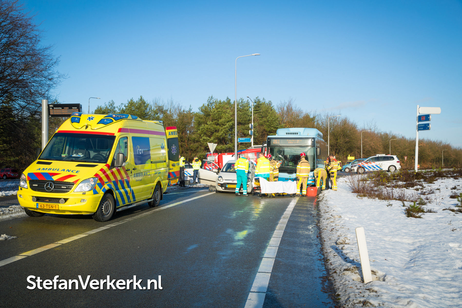 Foto's: Ongeval lijnbus - personenauto kruising Hessenweg - toerit A50 Hattem