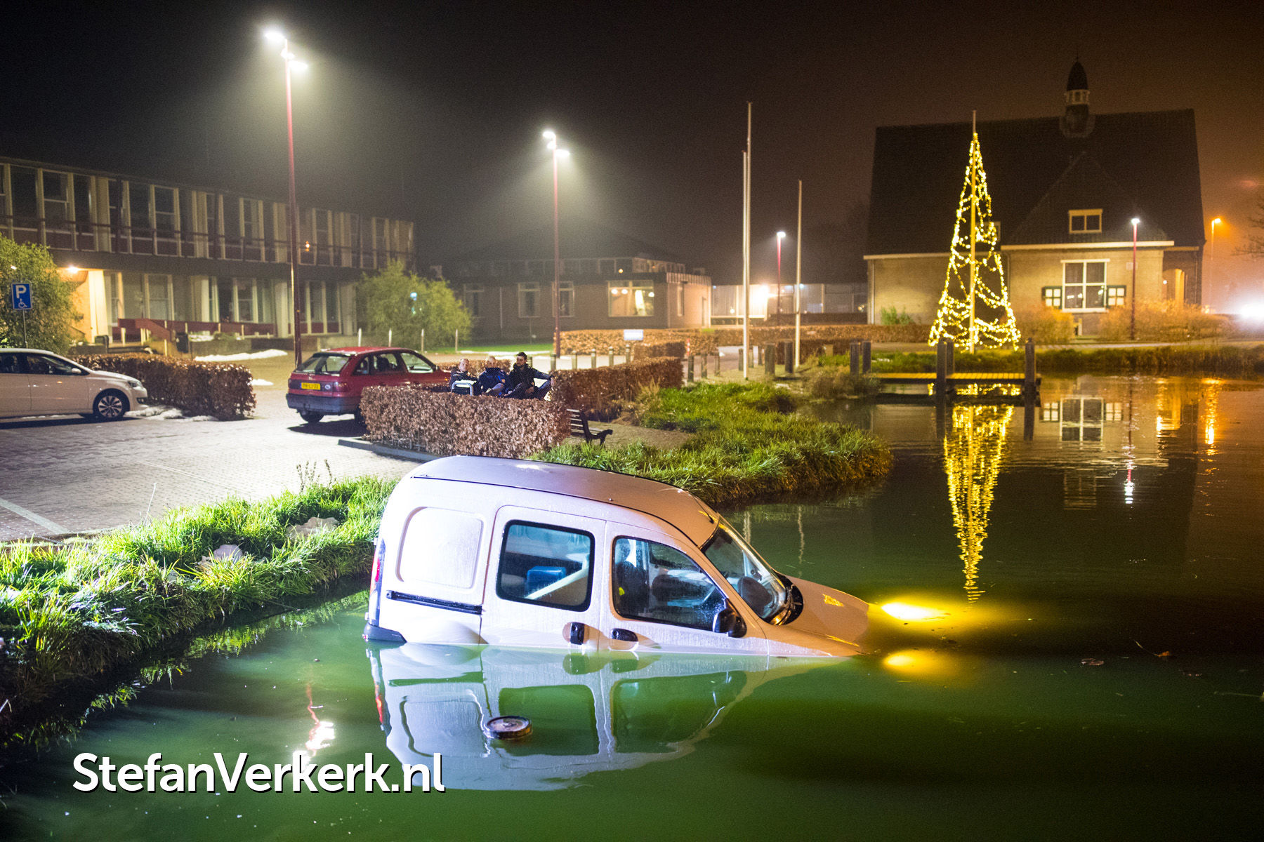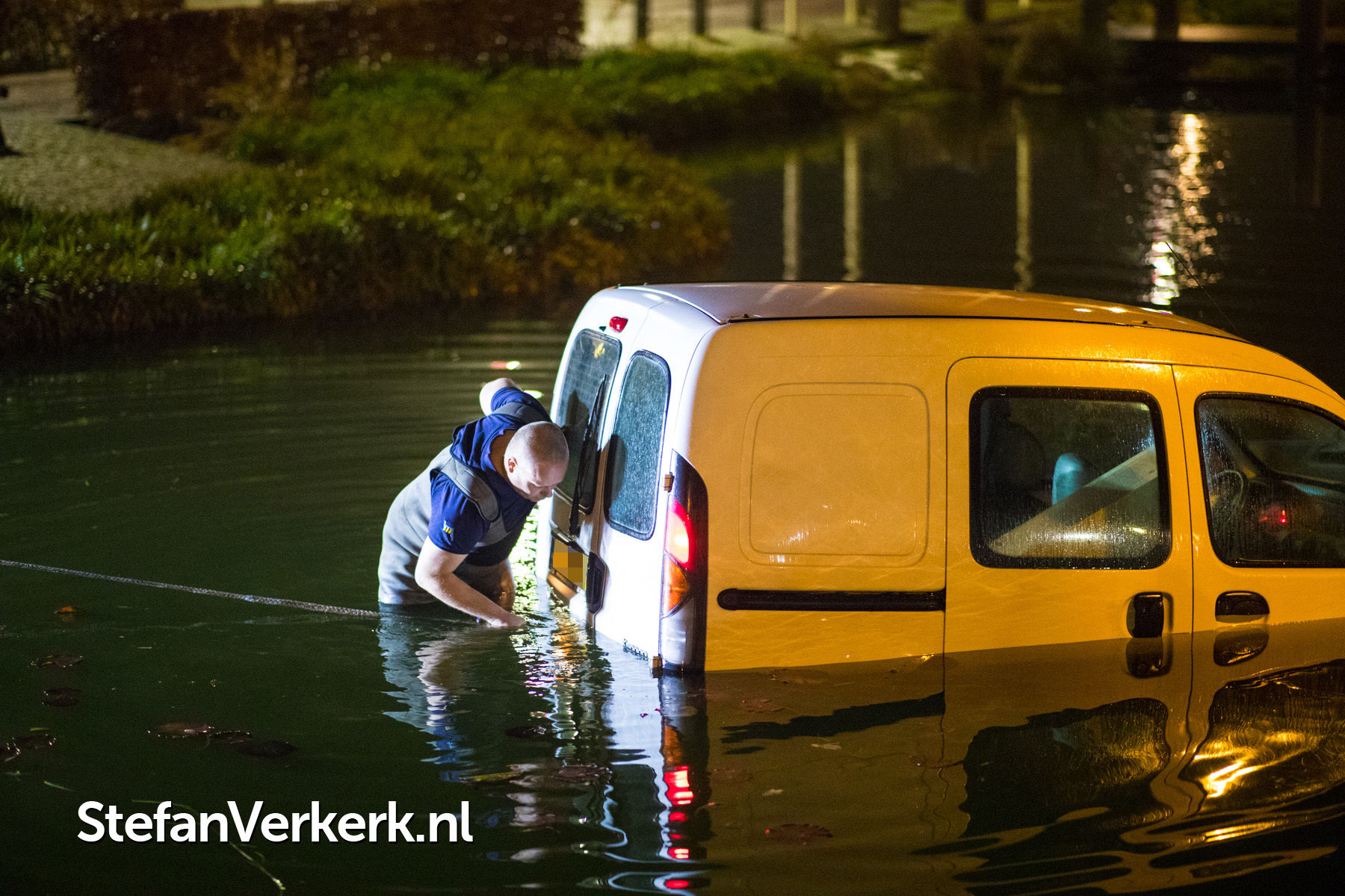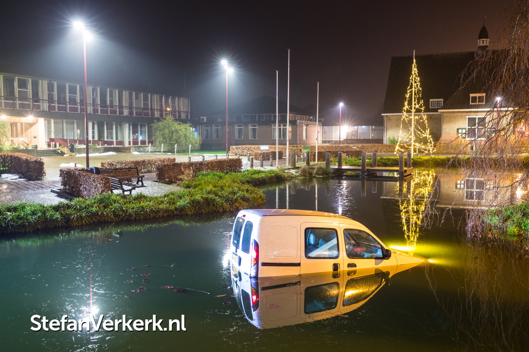 Foto's: Ongeval auto te water vijver gemeentehuis Elburg