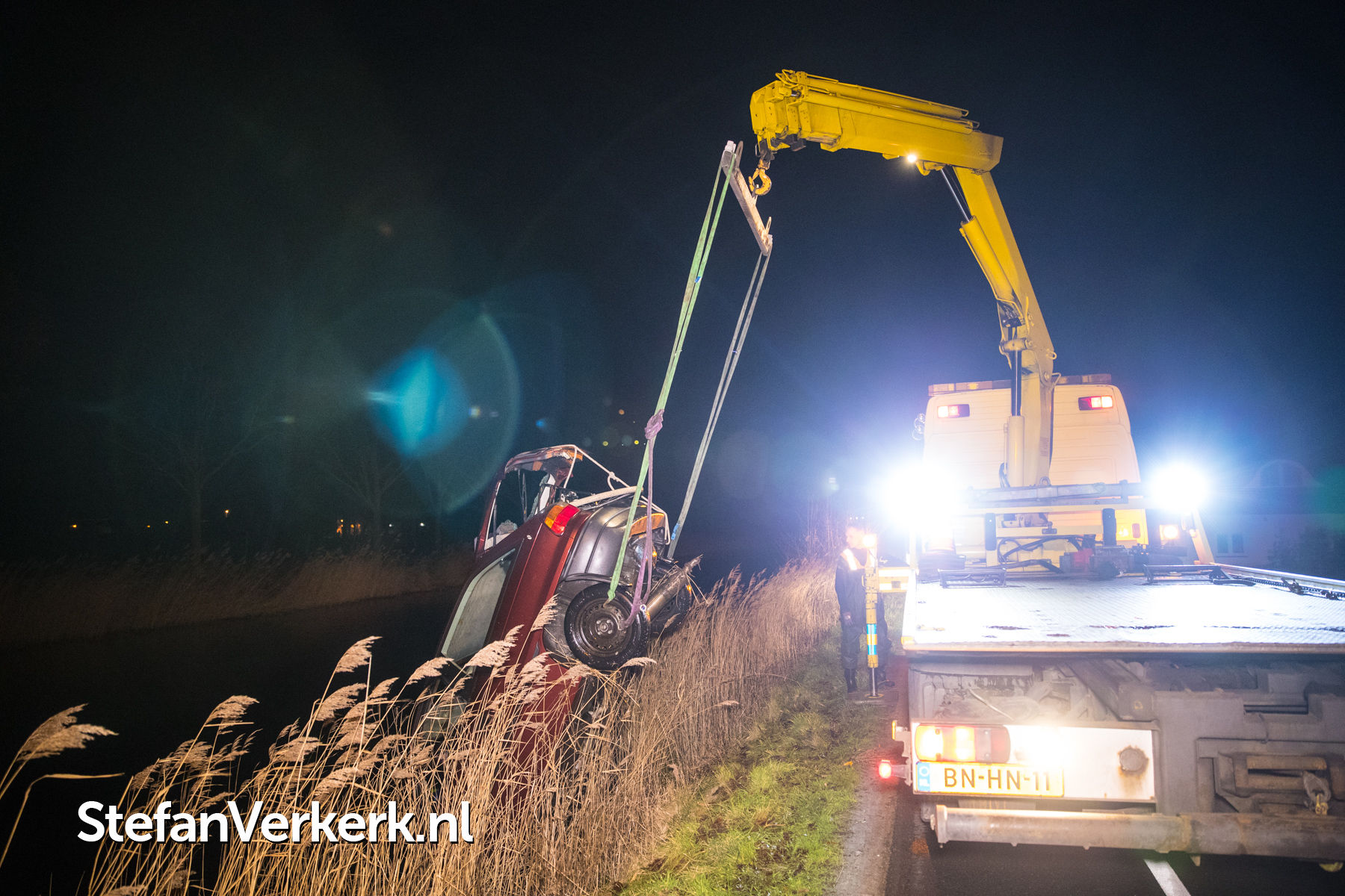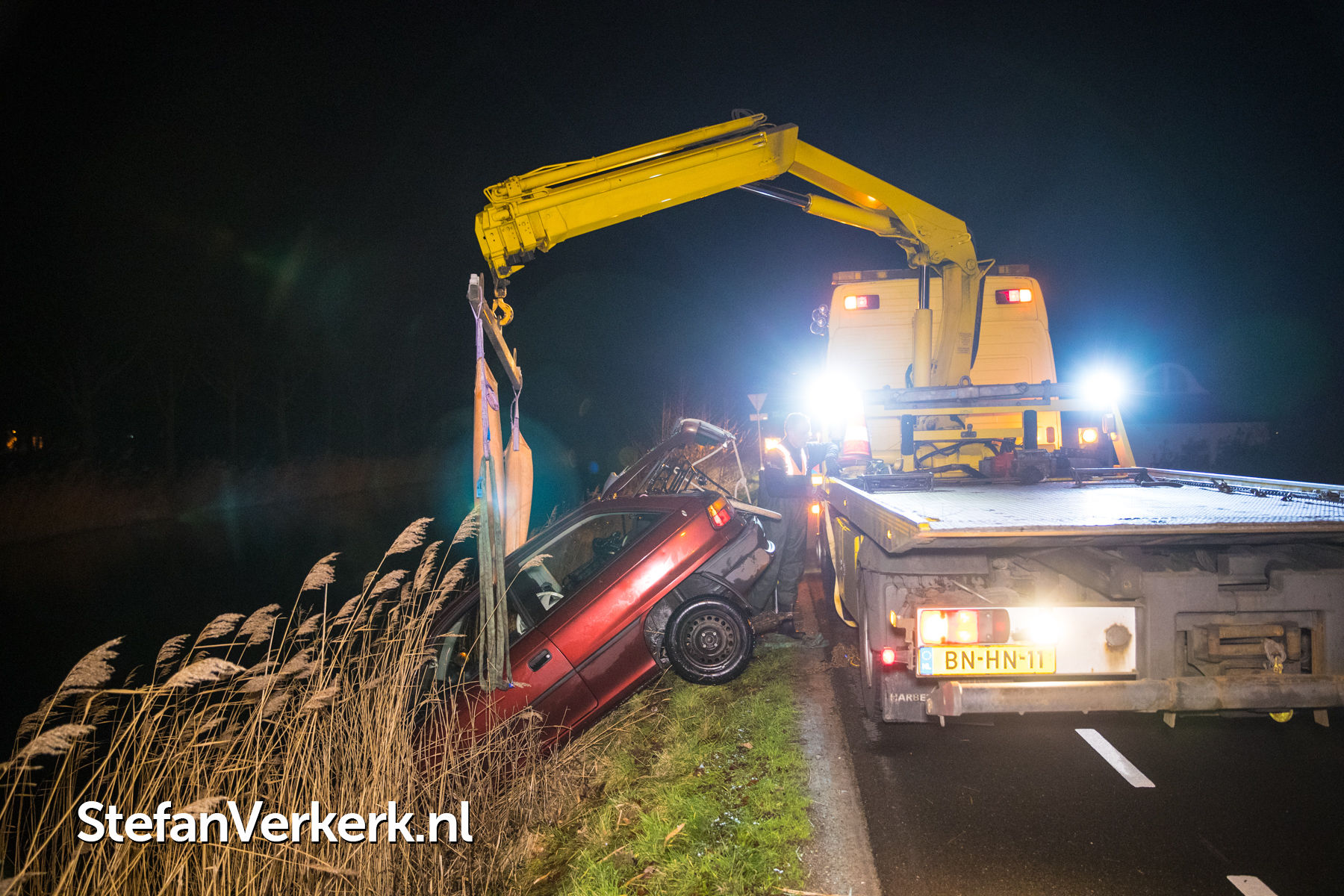 Foto's: Ongeval auto te water Kanaalweg Vaassen