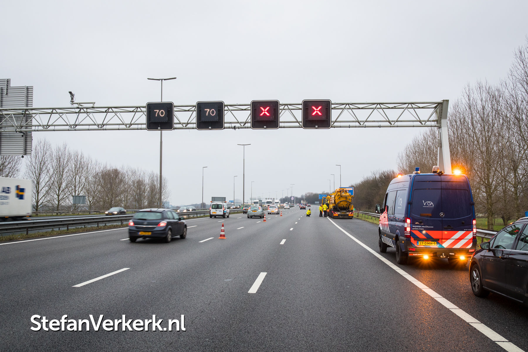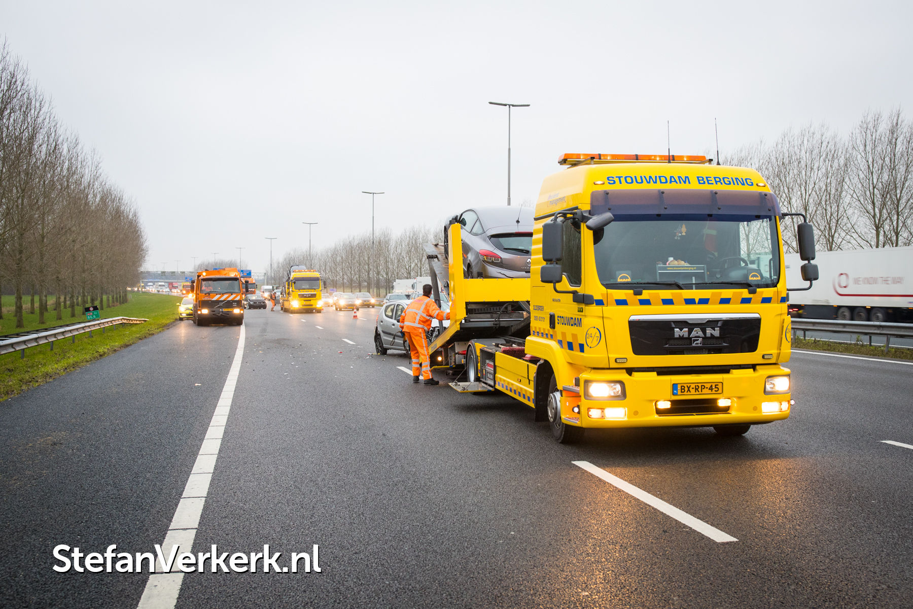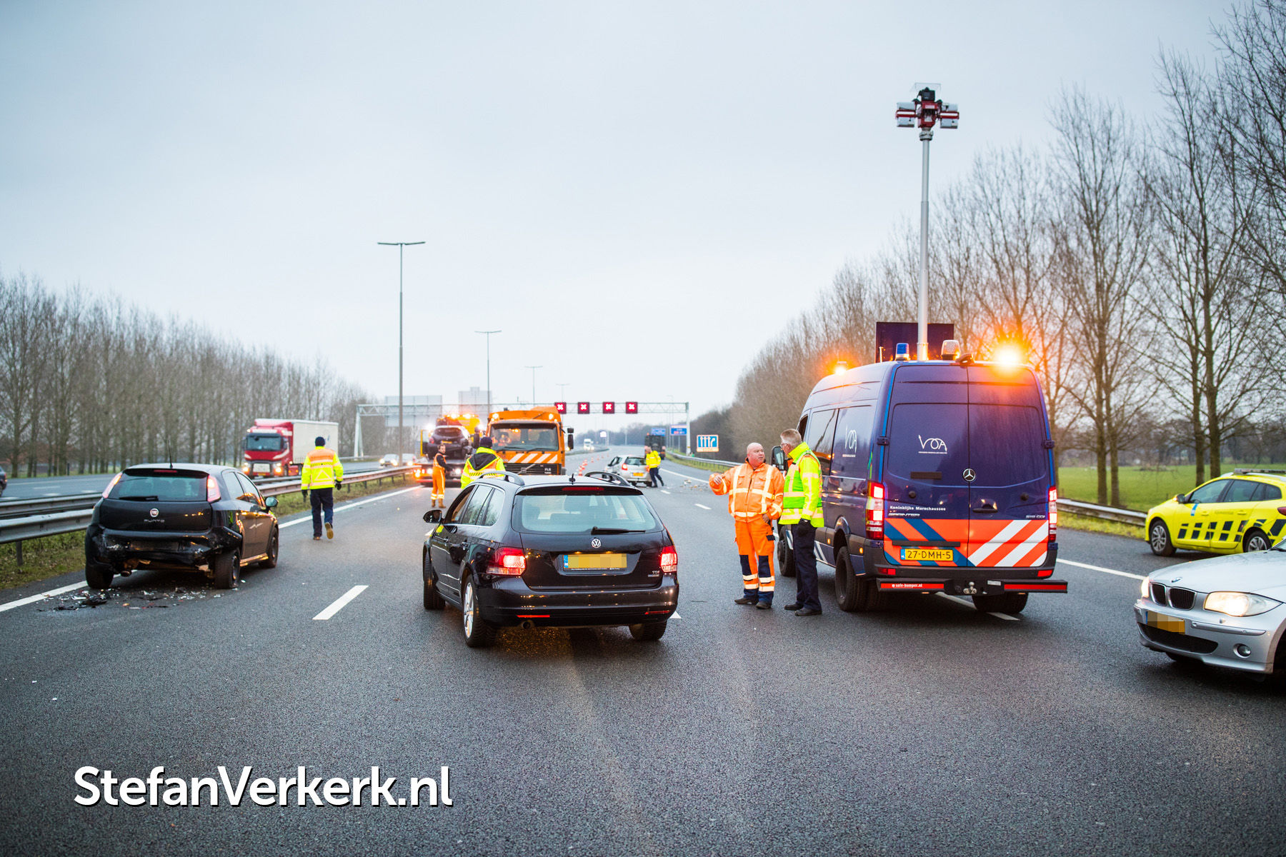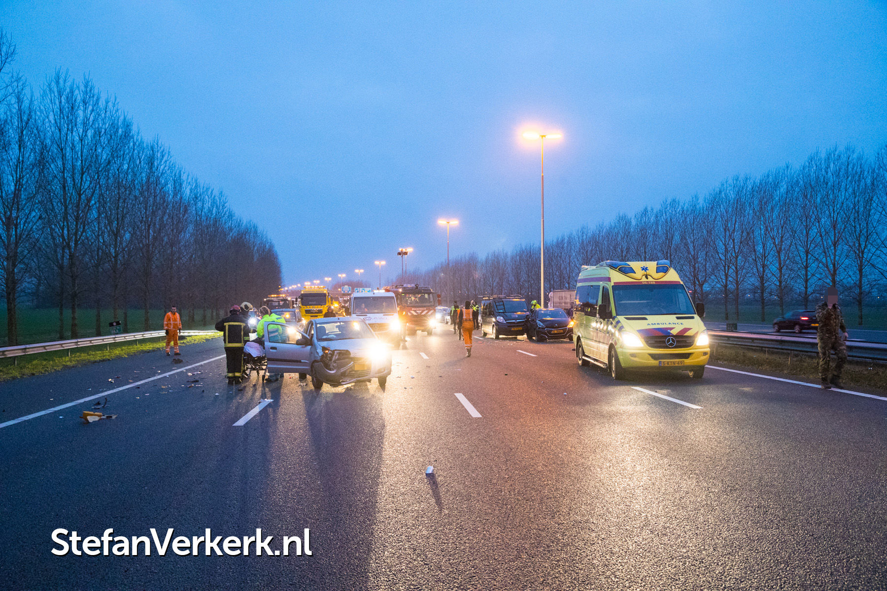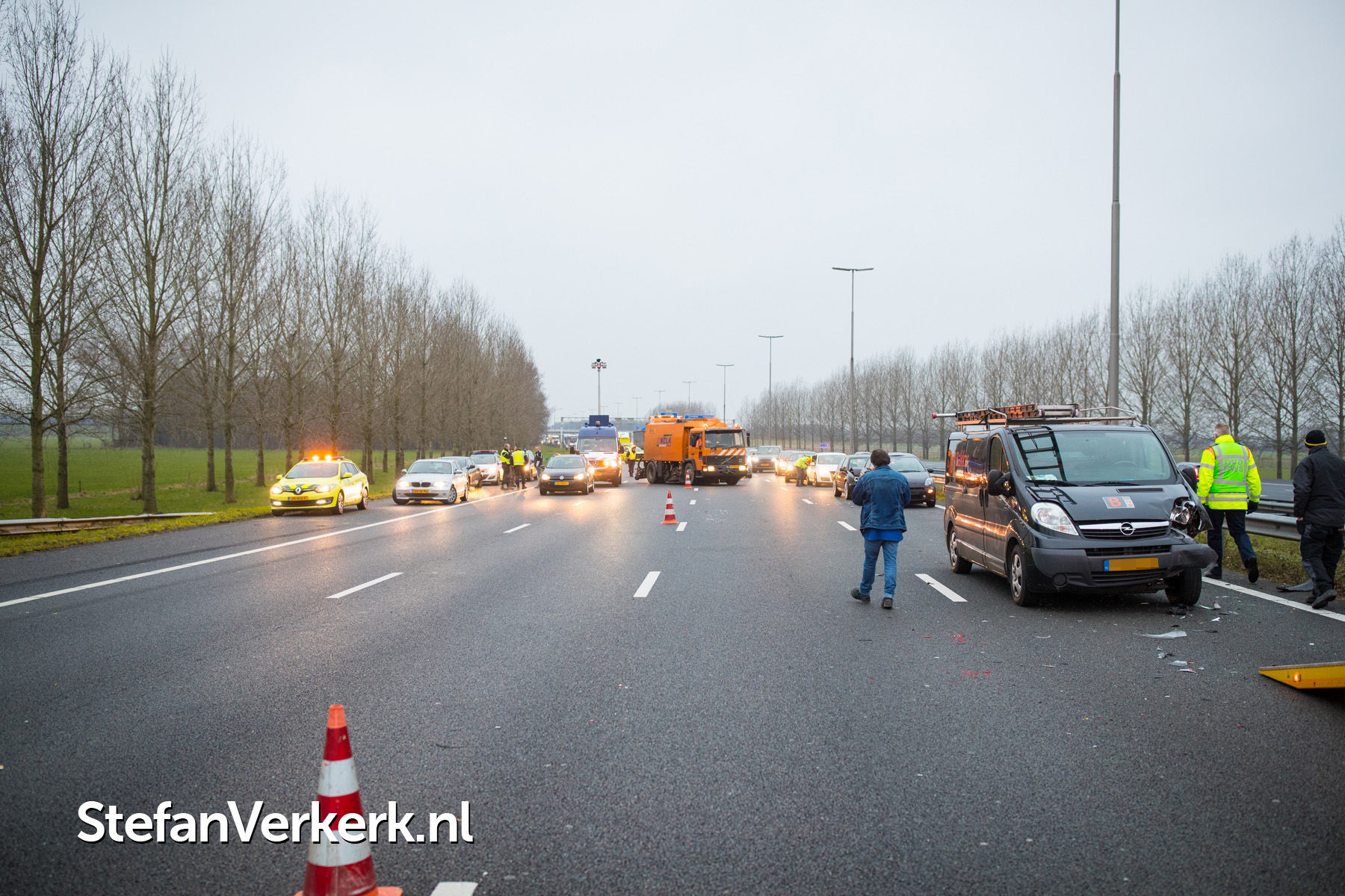 Foto's: Kettingbotsing meerdere auto's, bedrijfsbus en vrachtwagens A28 R 86,6 Hattem