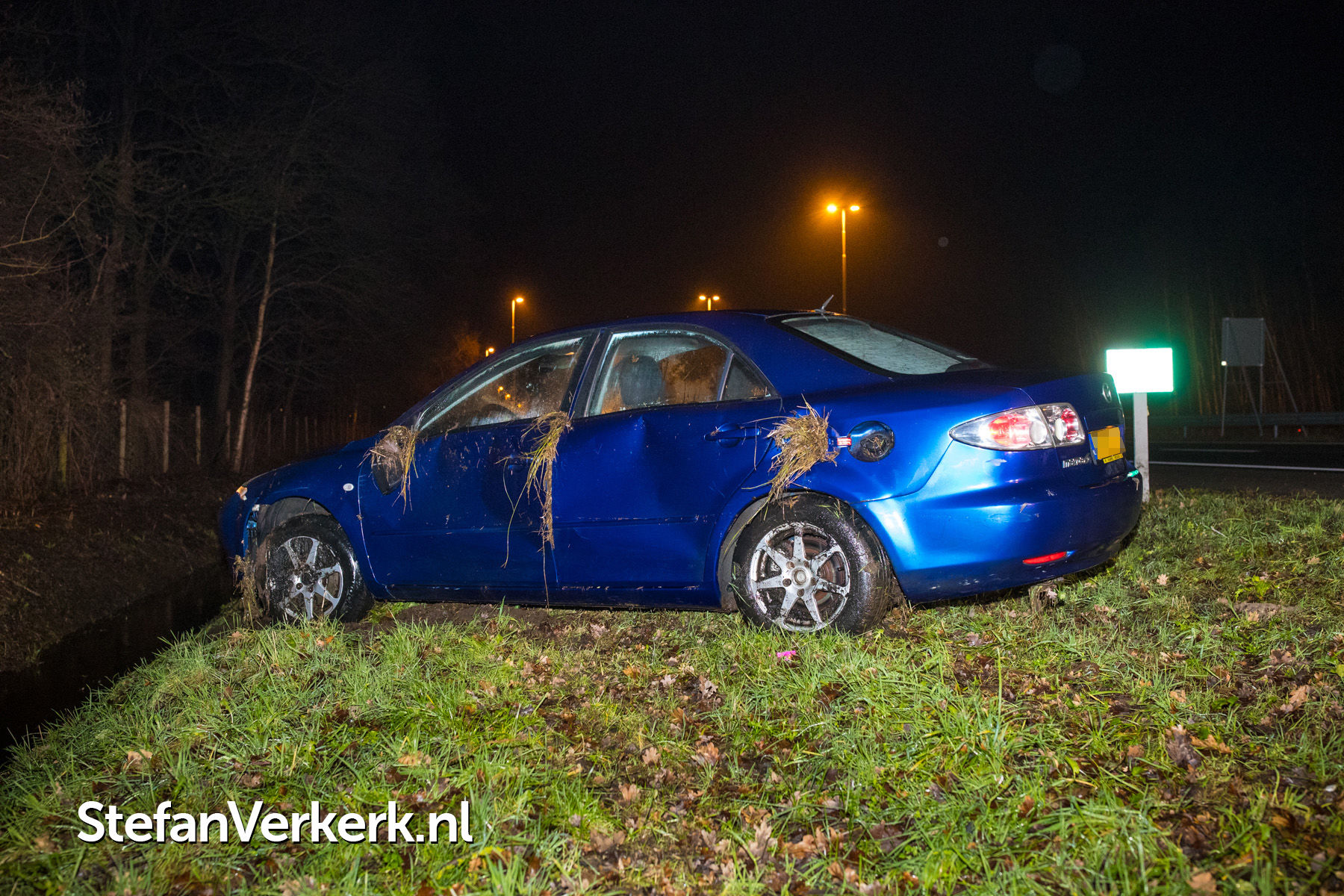 Foto's: Ongeval auto in beekje A50 L 219,7 Epe