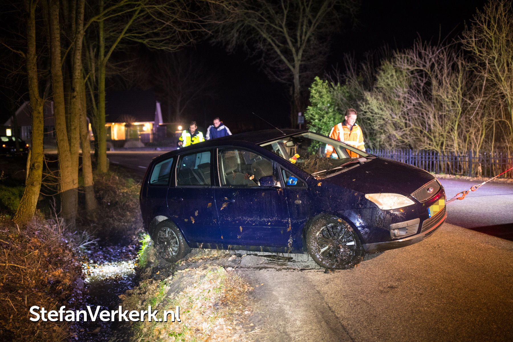 Foto's: Auto in greppel Vreeweg - Bongersweg 't Loo Oldebroek