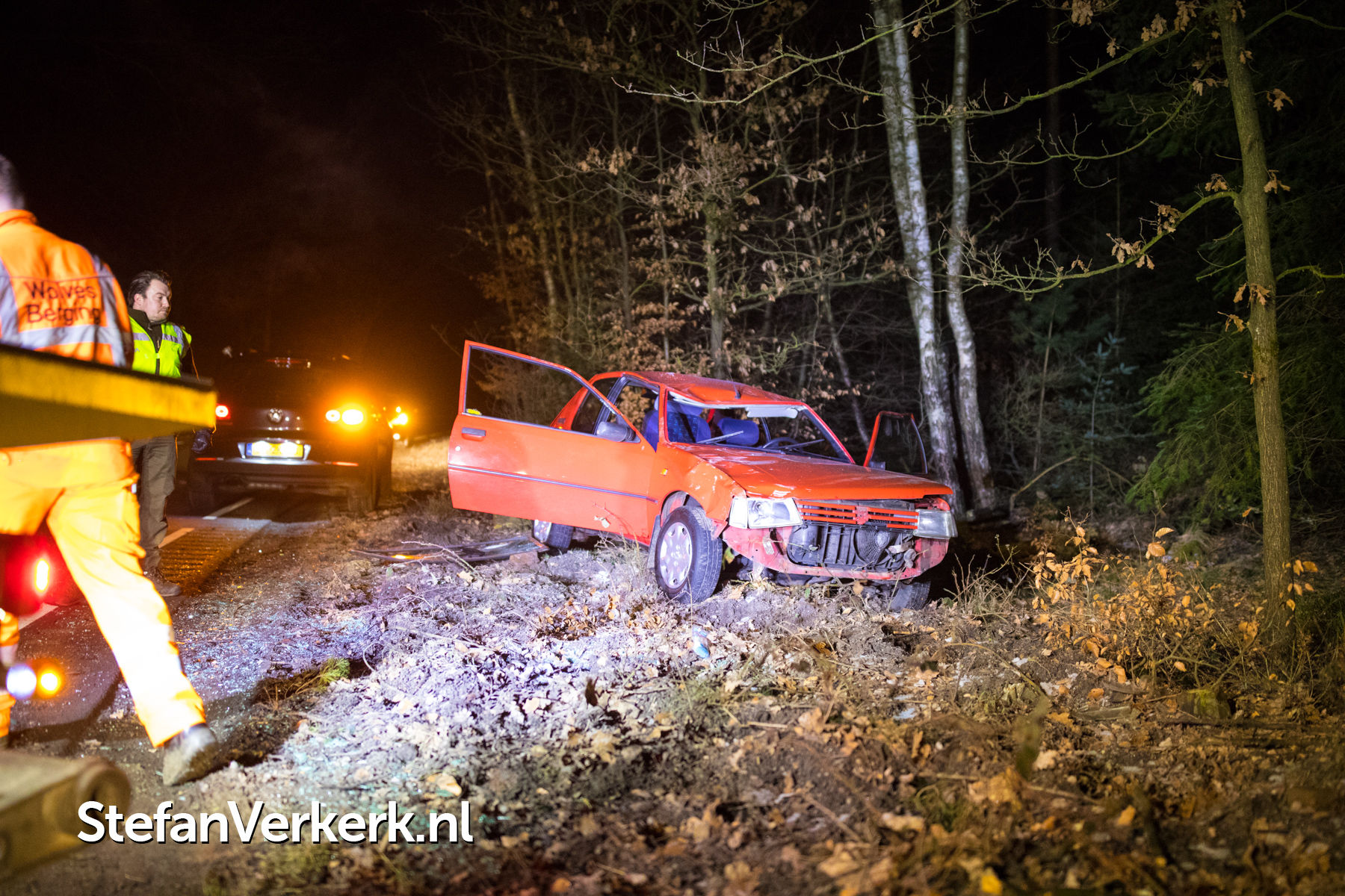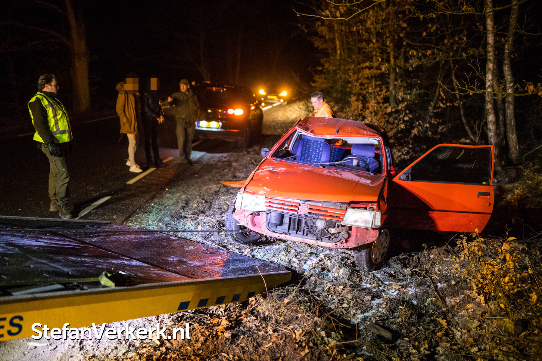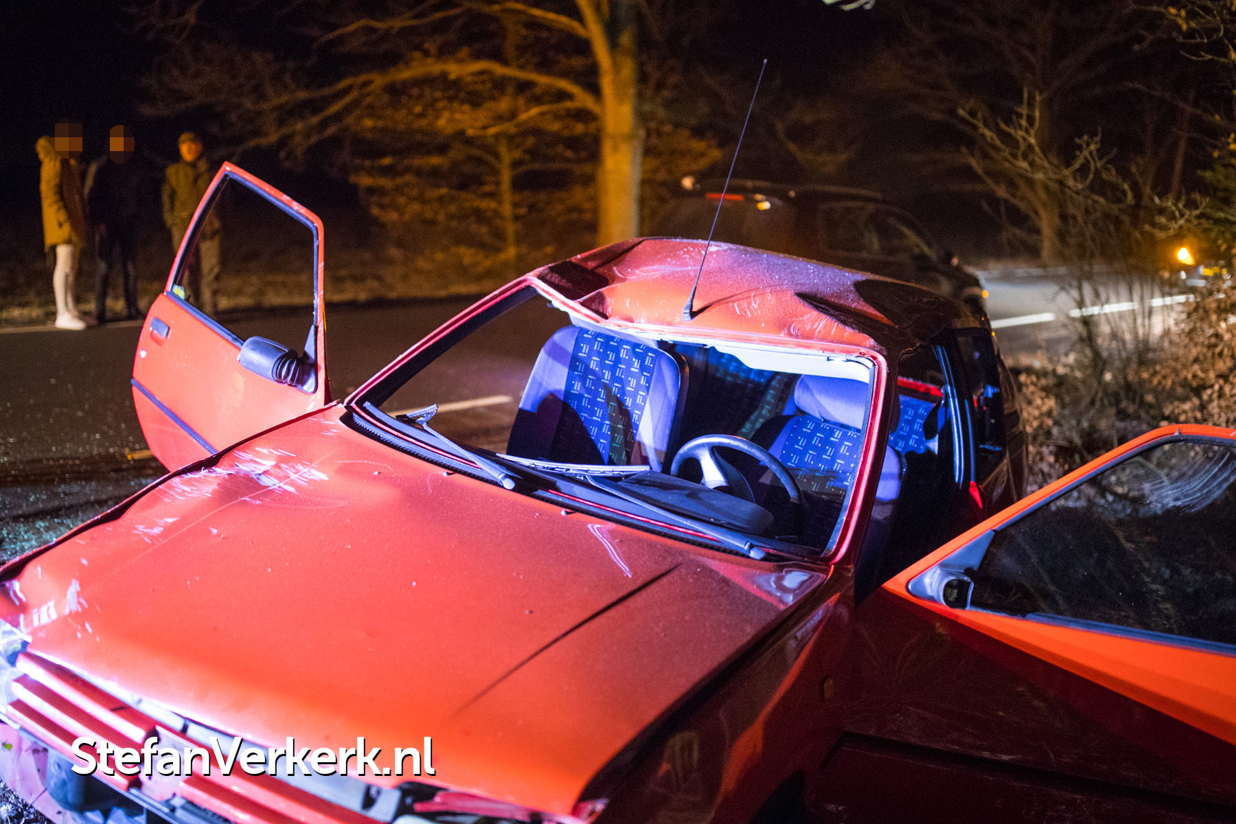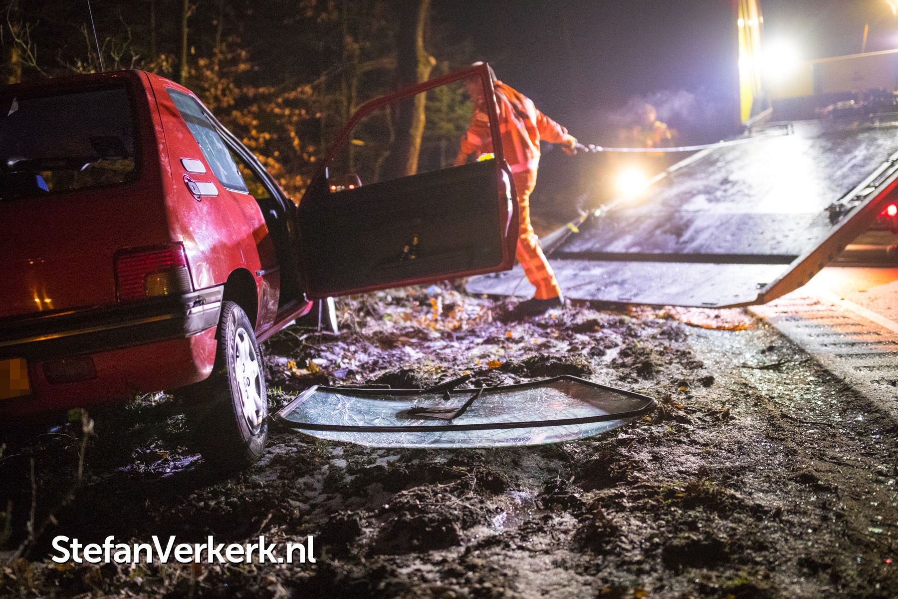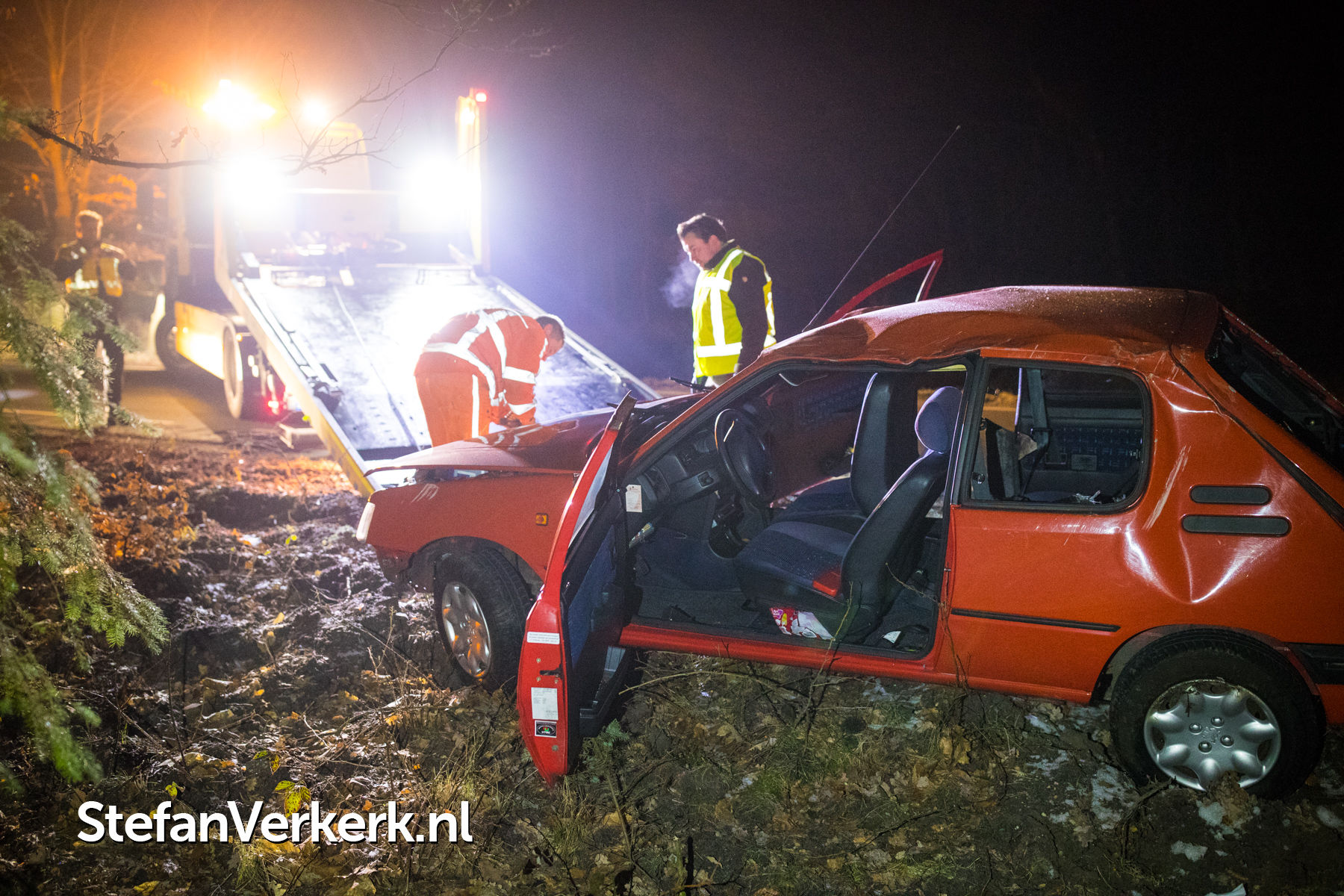 Auto in greppel Vreeweg - Bongersweg 't Loo Oldebroek