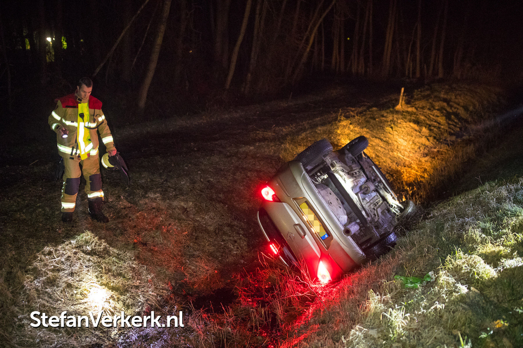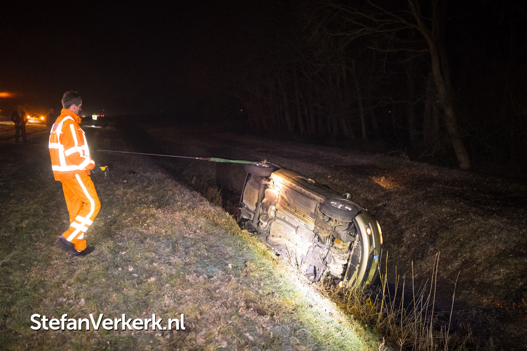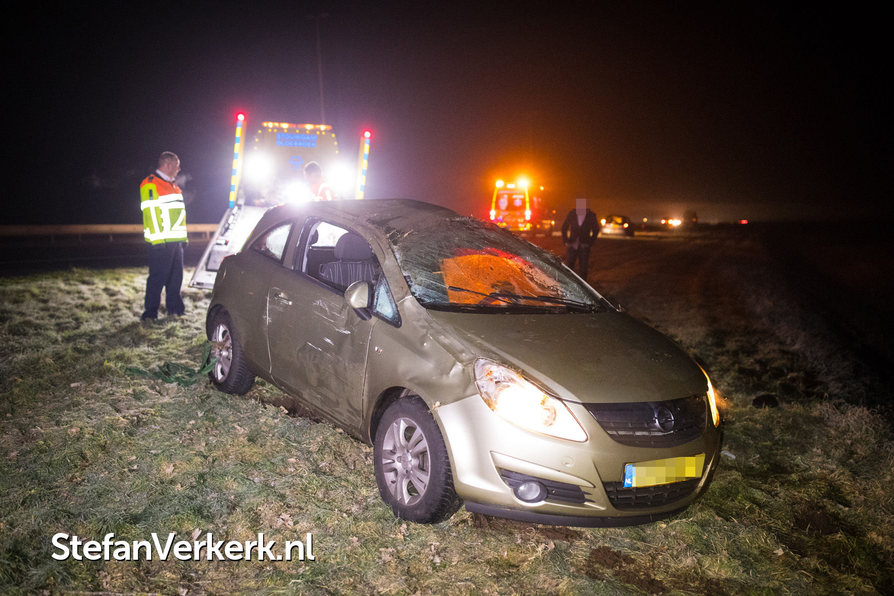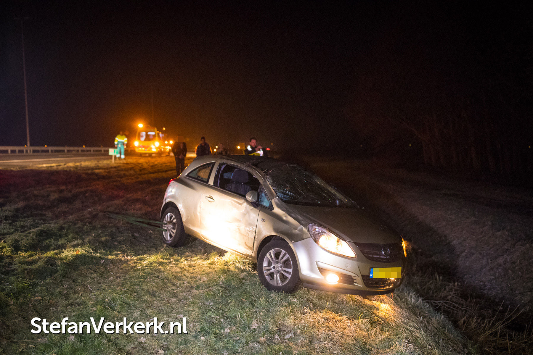 Foto's: Ongeval auto over de kop in greppel A50 L 223,3 Epe