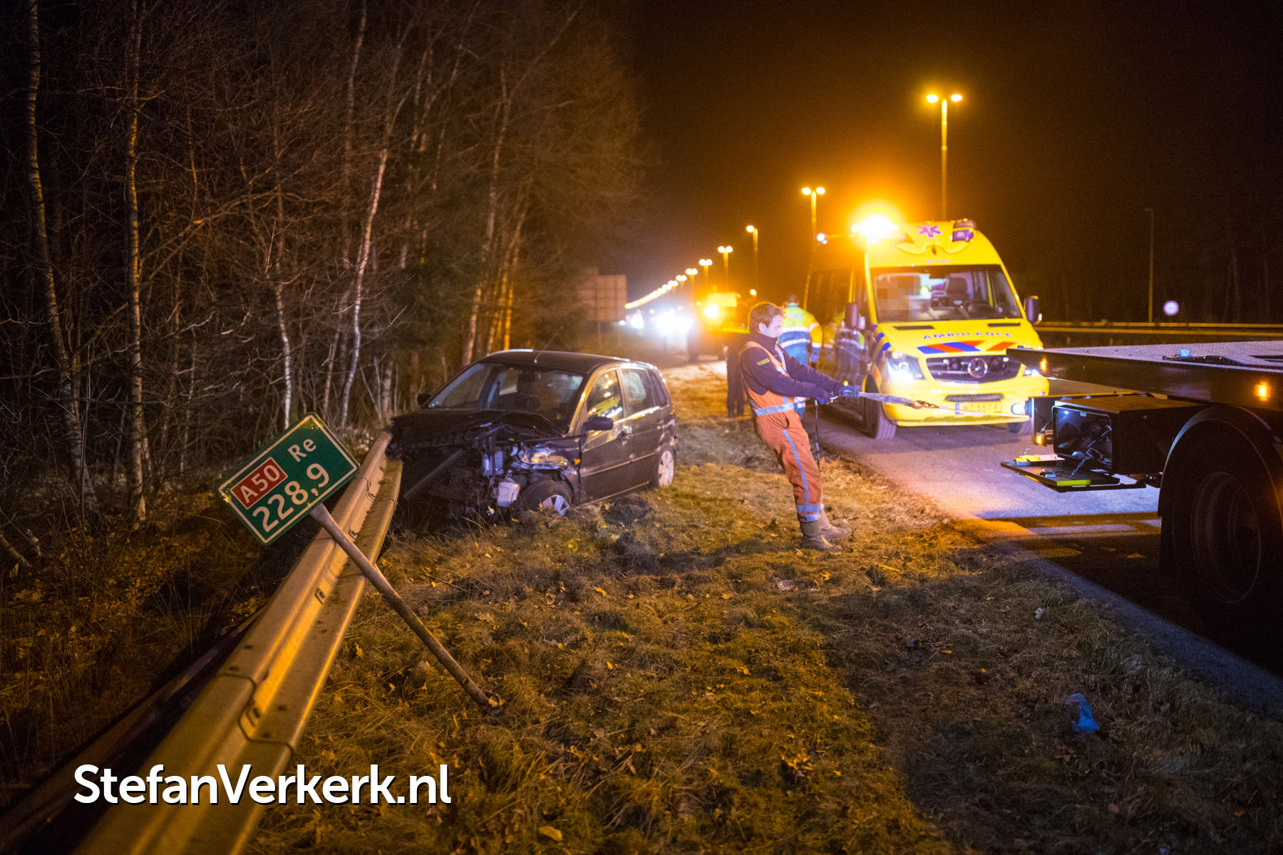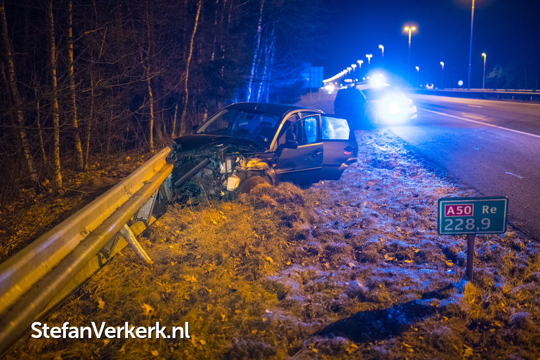 Foto's: Ongeval auto tegen vangrail A50 R 228,9 Heerde