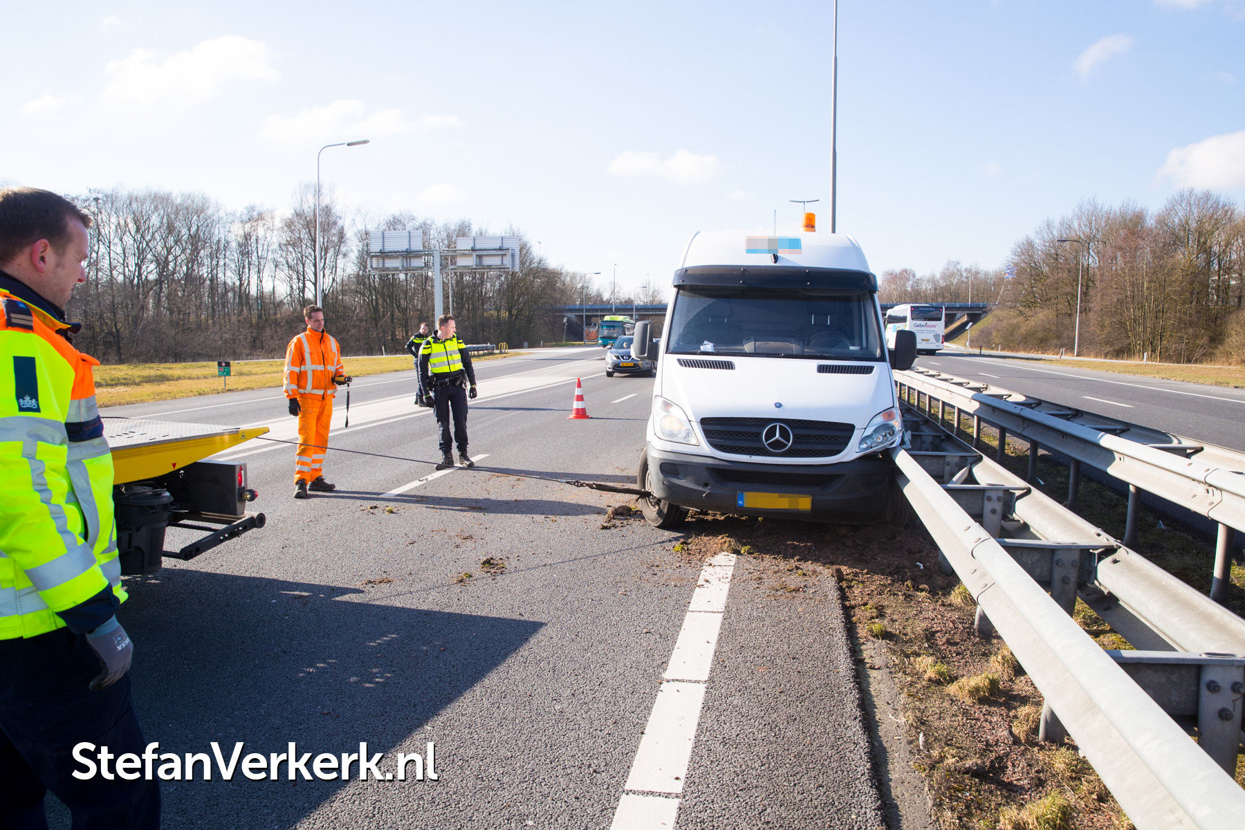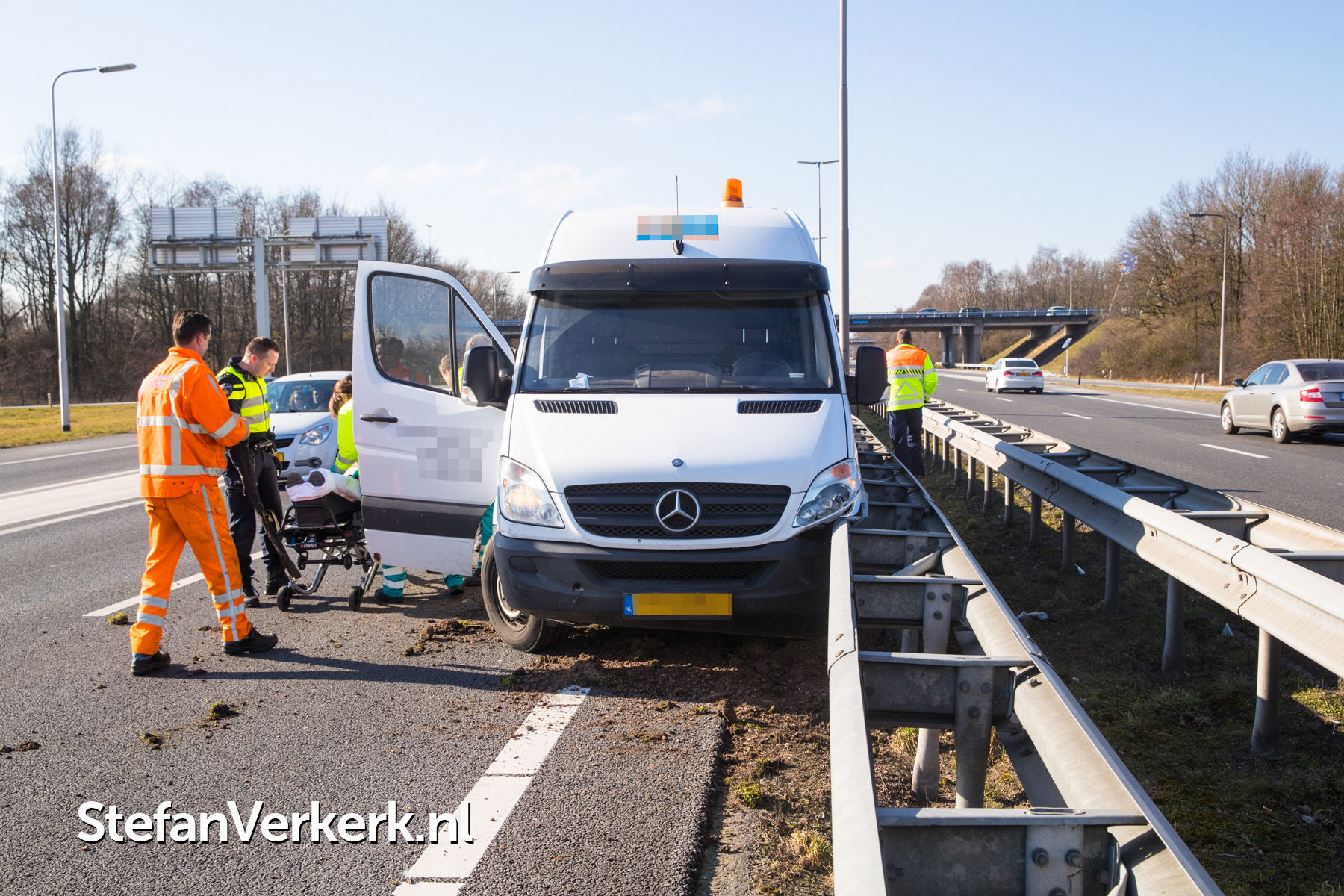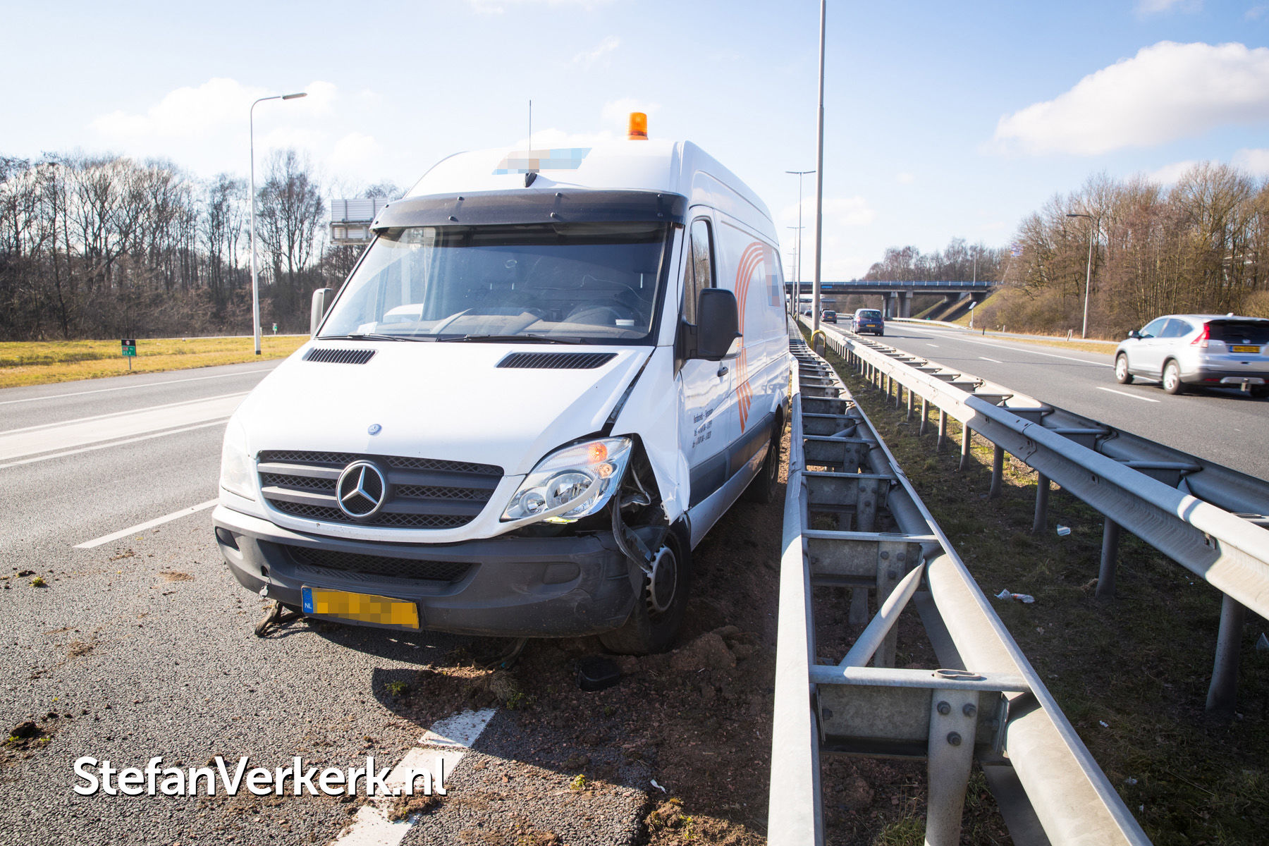 Foto's: Ongeval bestelbus tegen vangrail A28 R 85,5 Hattem