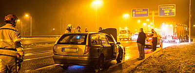 Ongeval auto tegen vangrail A28 R 85,3 m knooppunt Hattemerbroek