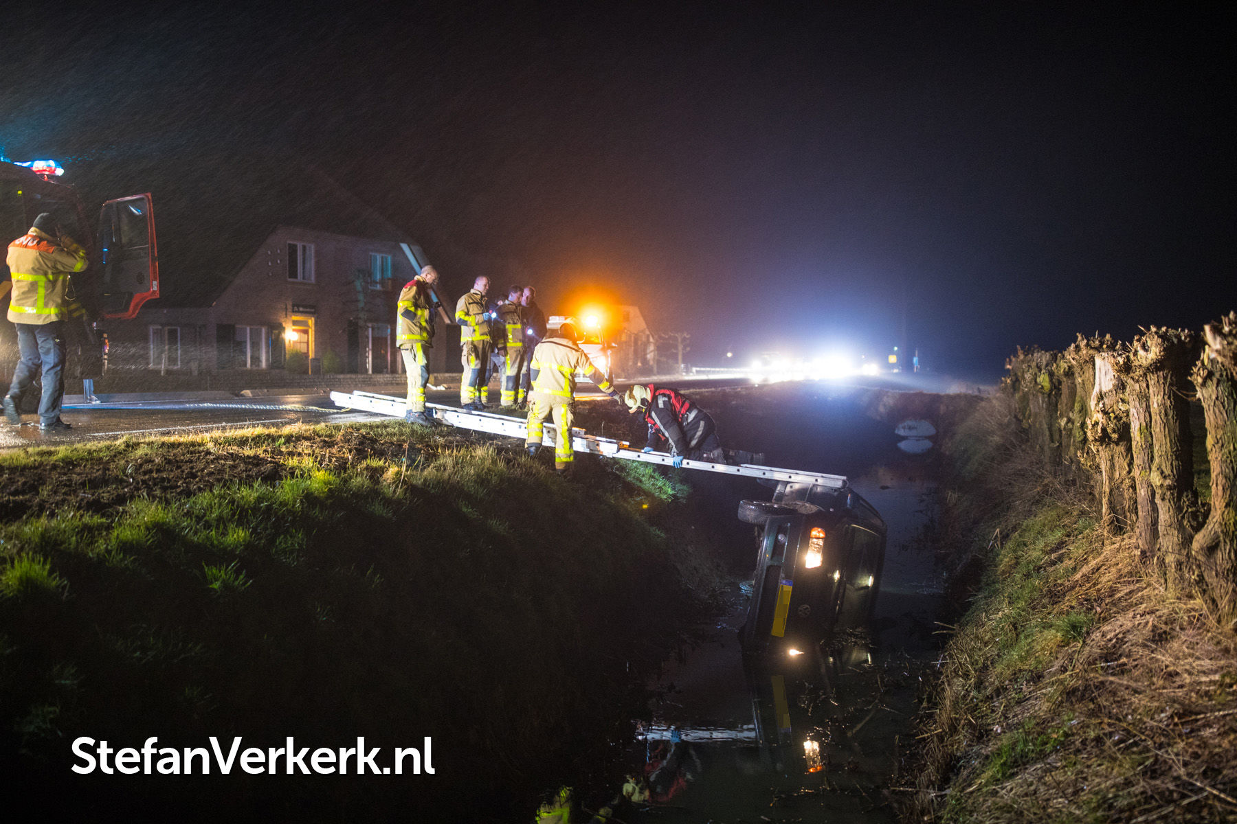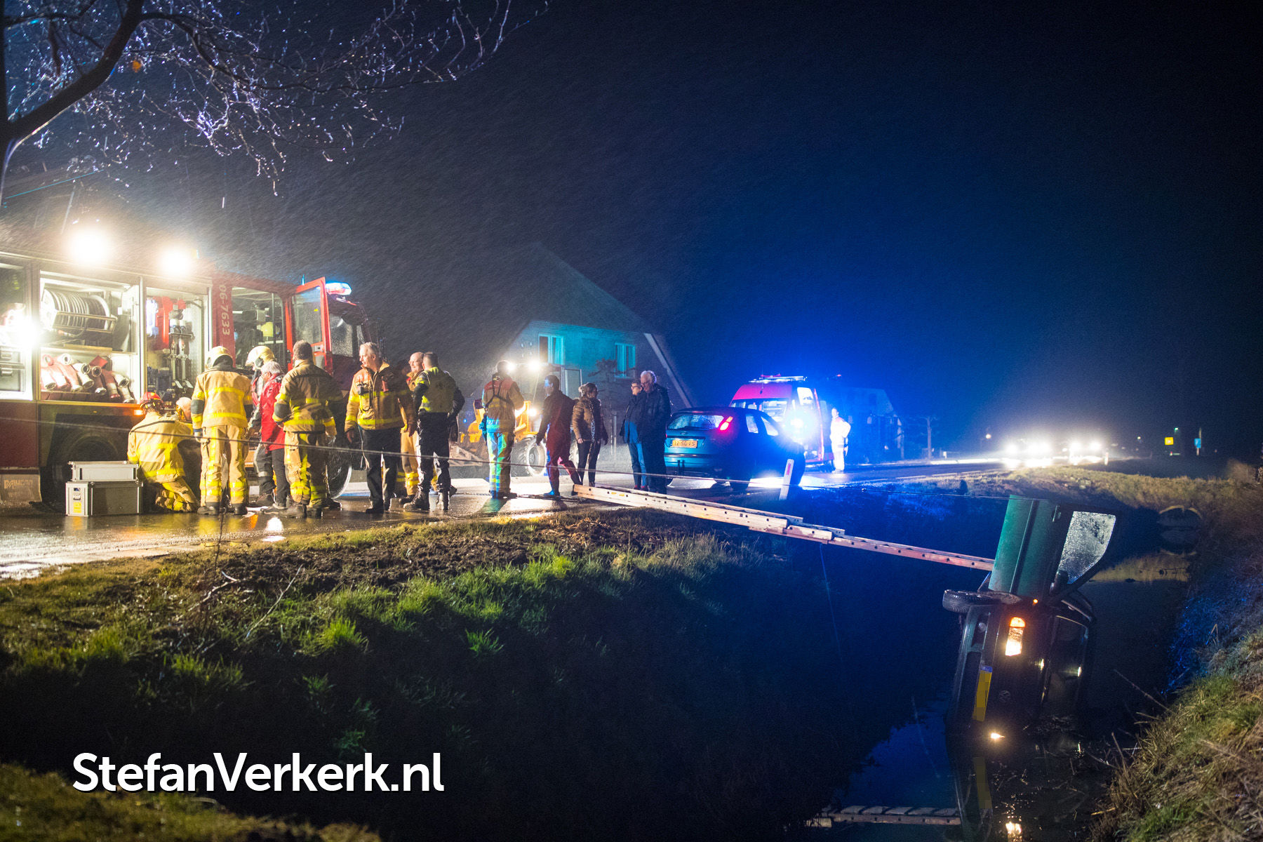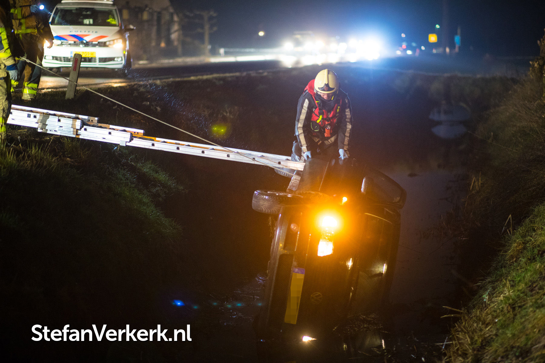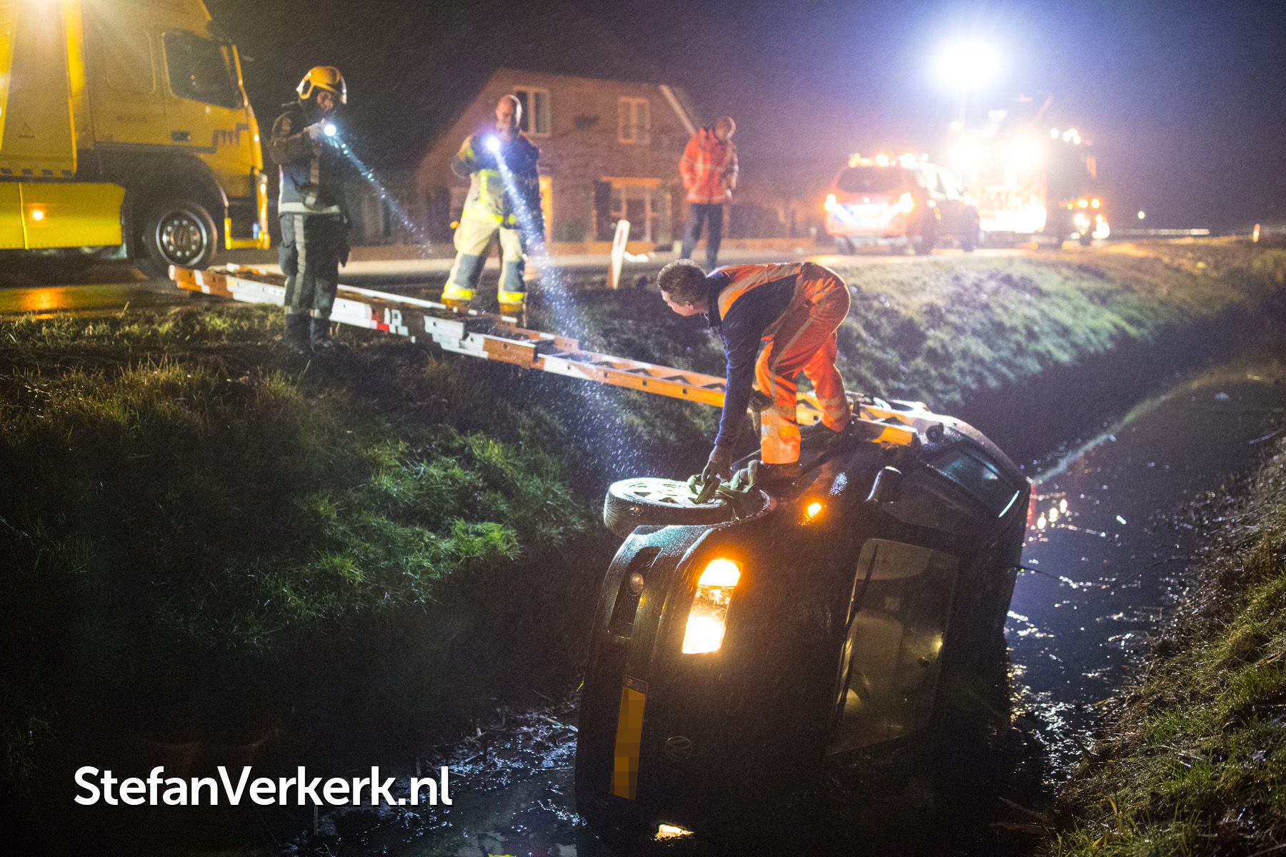 Foto's: Ongeval auto van de weg in sloot Veluwsedijk Nijbroek