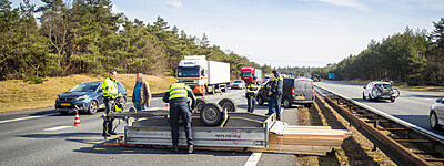 Ongeval aanhanger met planken gekanteld A28 L 62,7 Nunspeet
