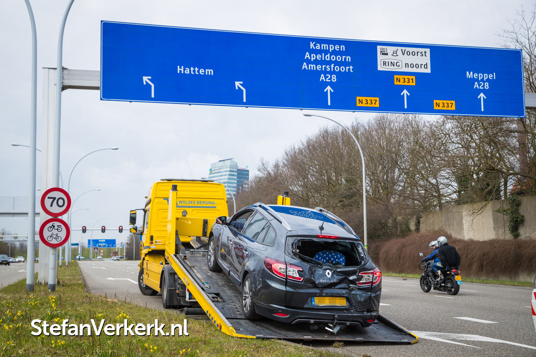 Foto's: Ongeval kopstaart aanrijding vrachtwagen-auto IJsselallee Zwolle