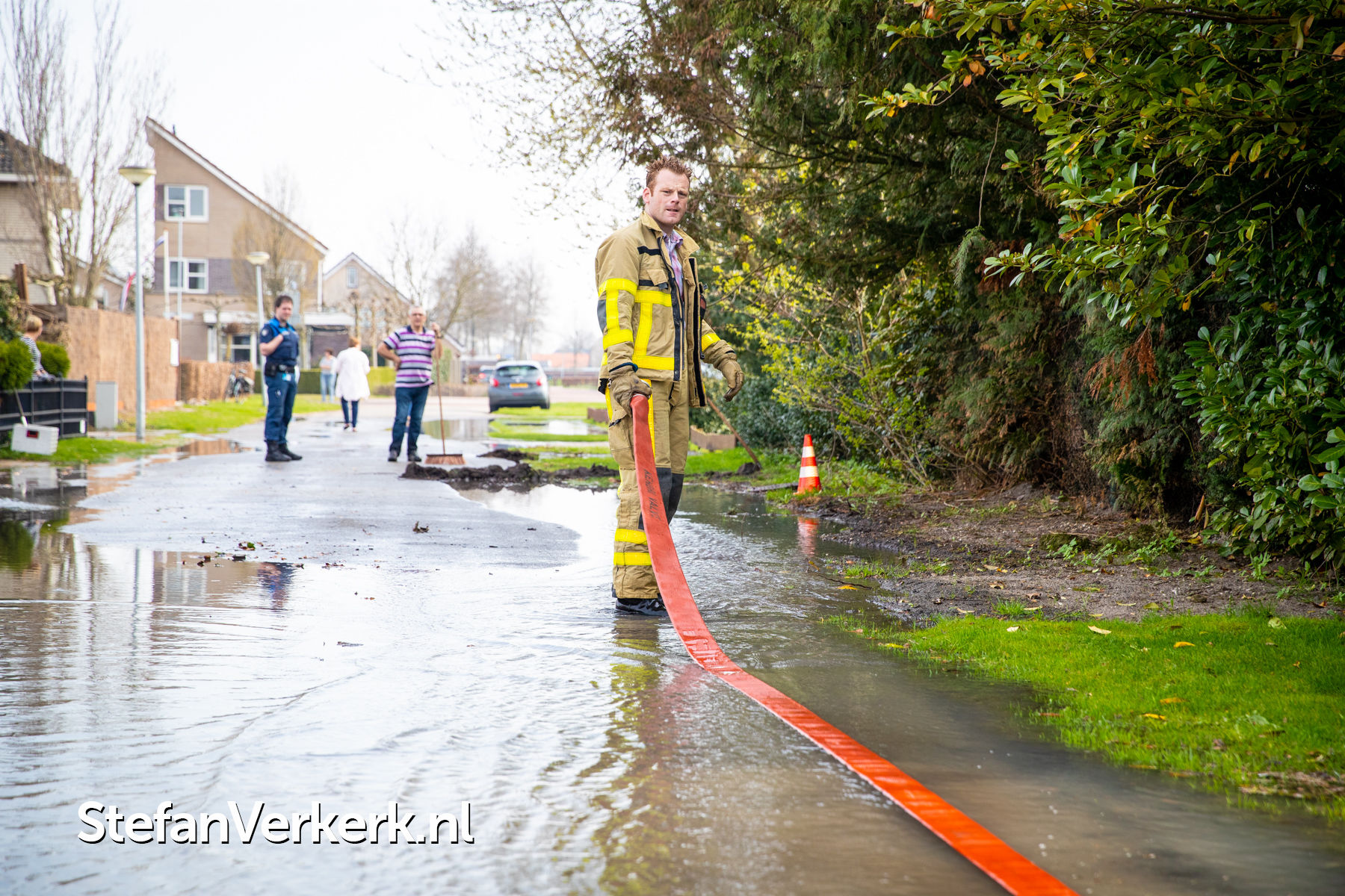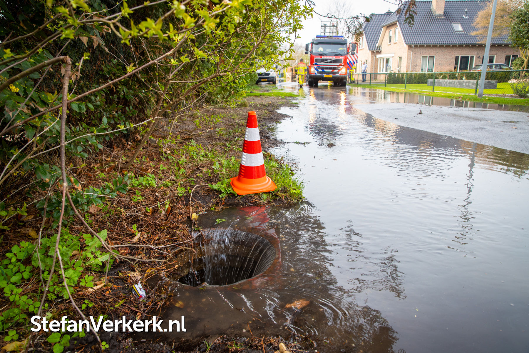 Foto's: Wateroverlast door leidingbreuk Turfhorst Wezep