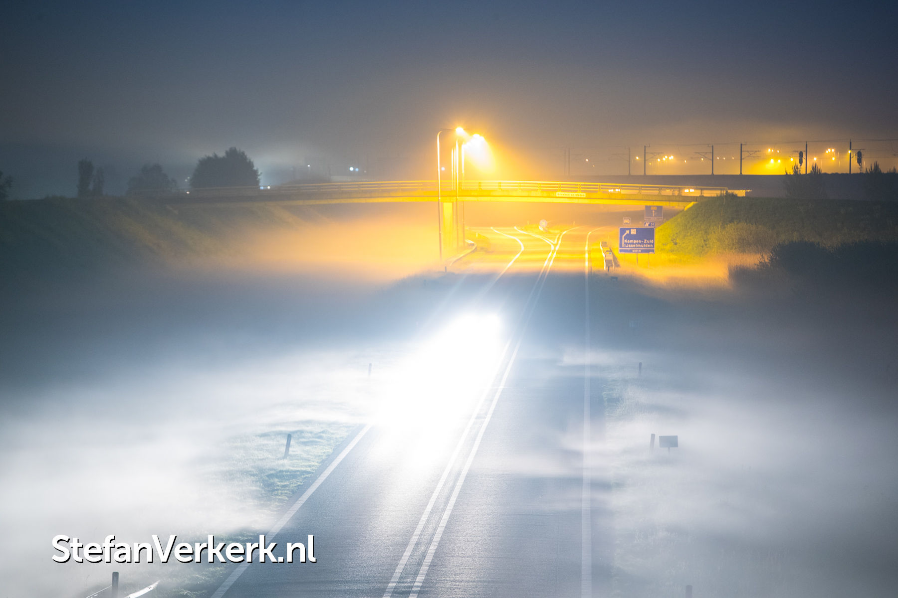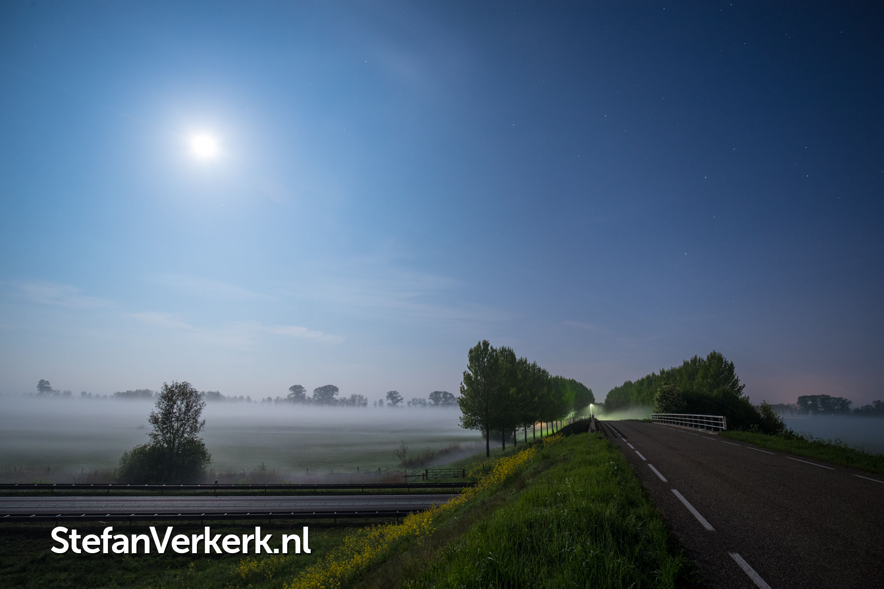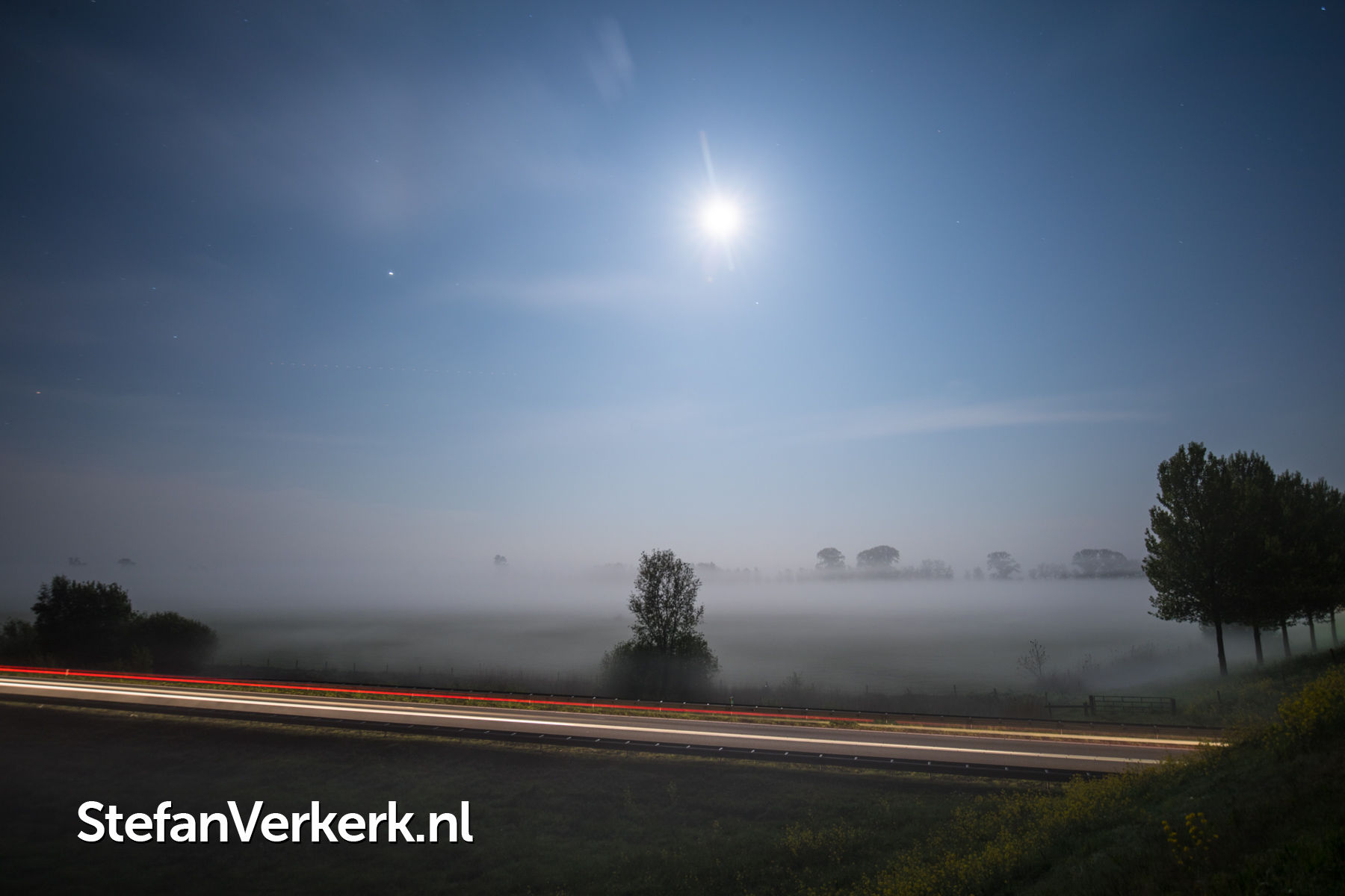 Foto's: Volle maan en mist boven de N50 bij Kampen