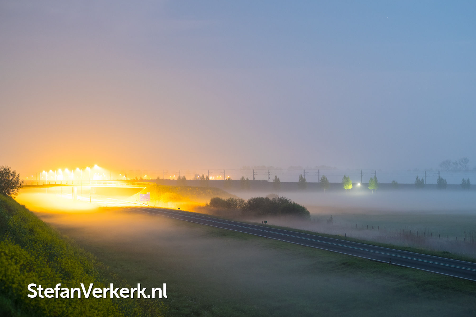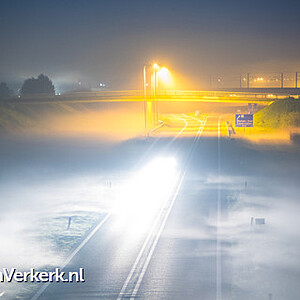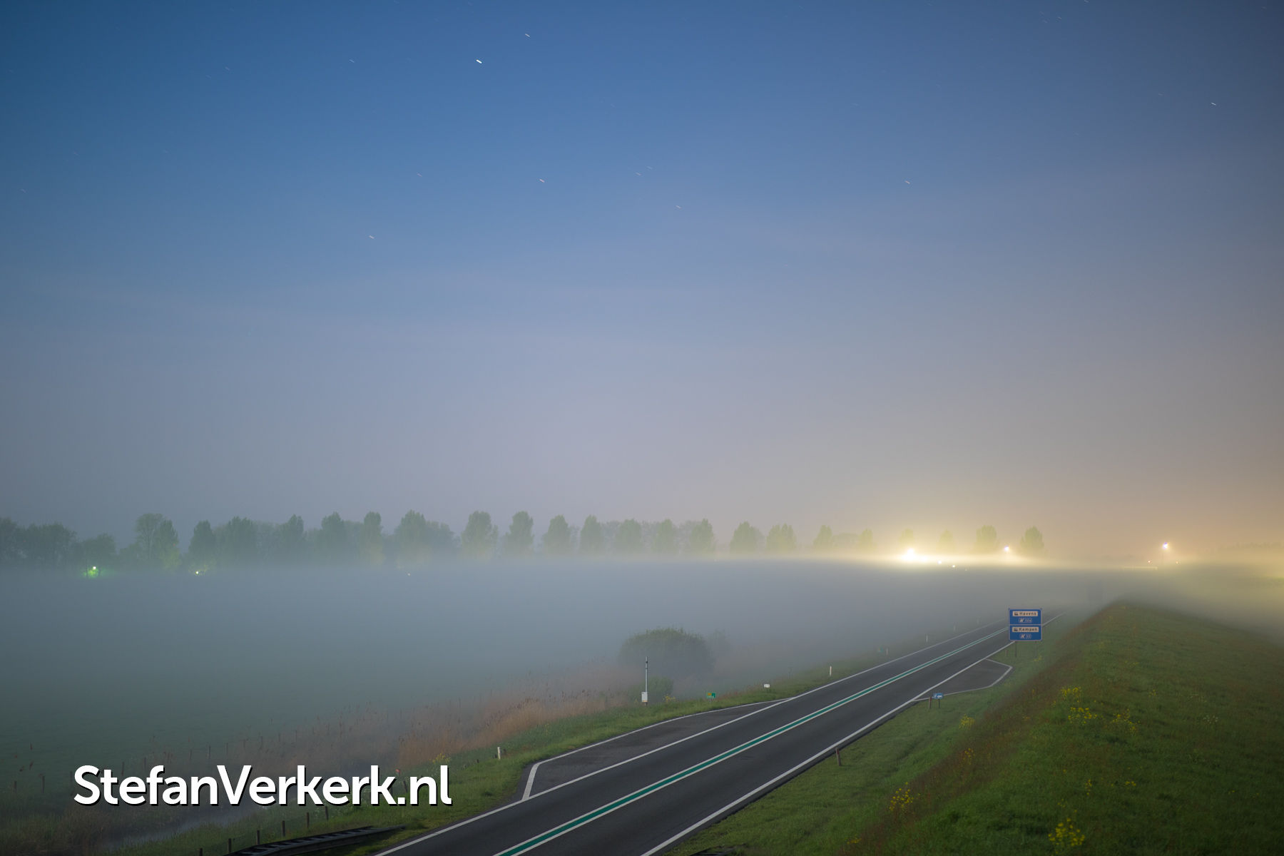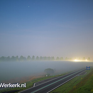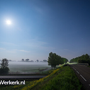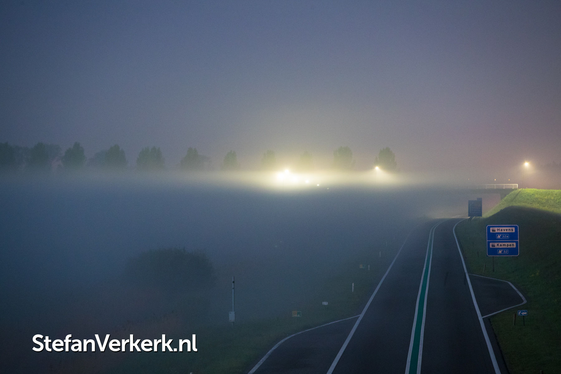 Foto's: Volle maan en mist boven de N50 bij Kampen