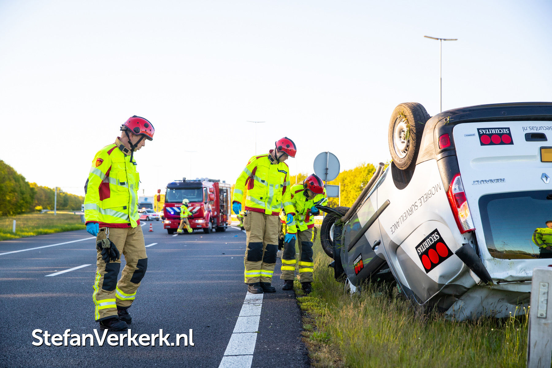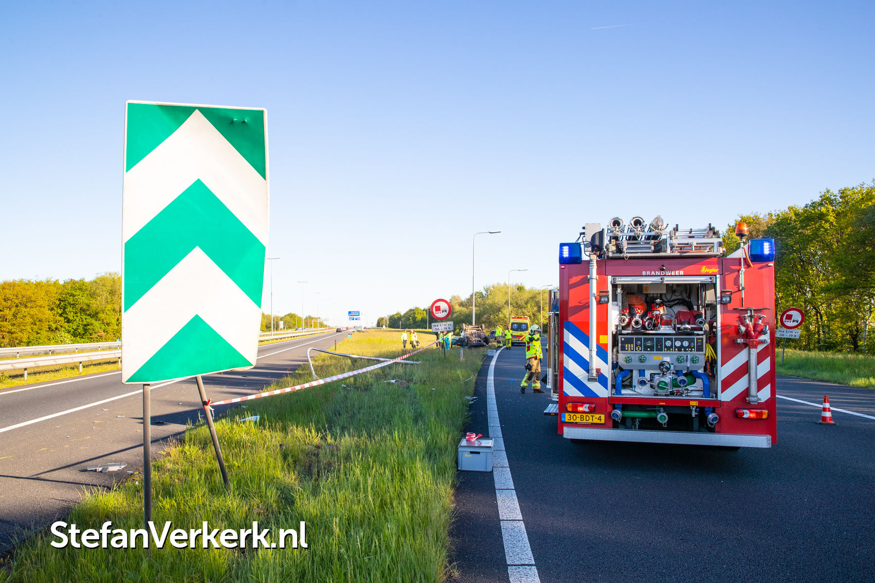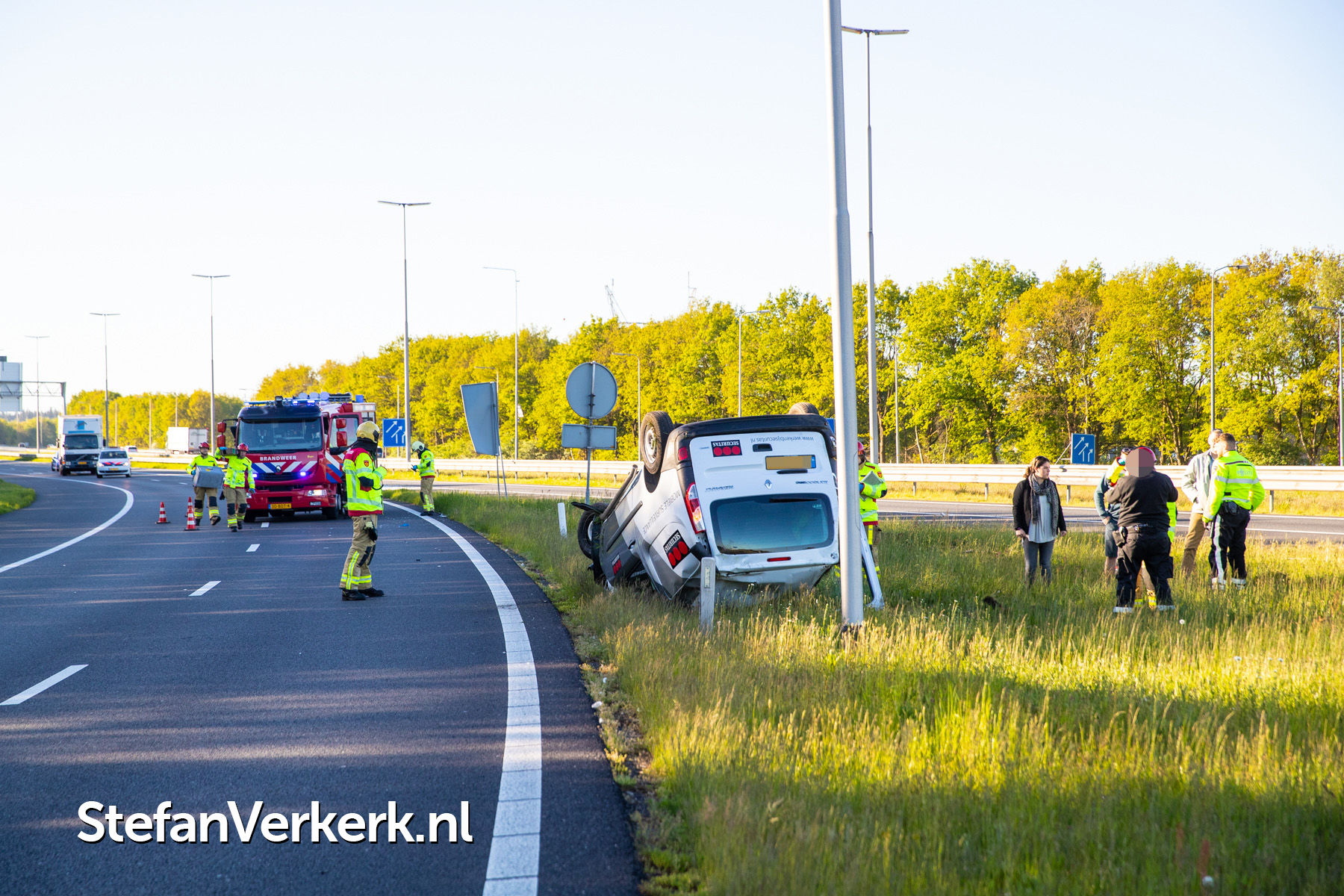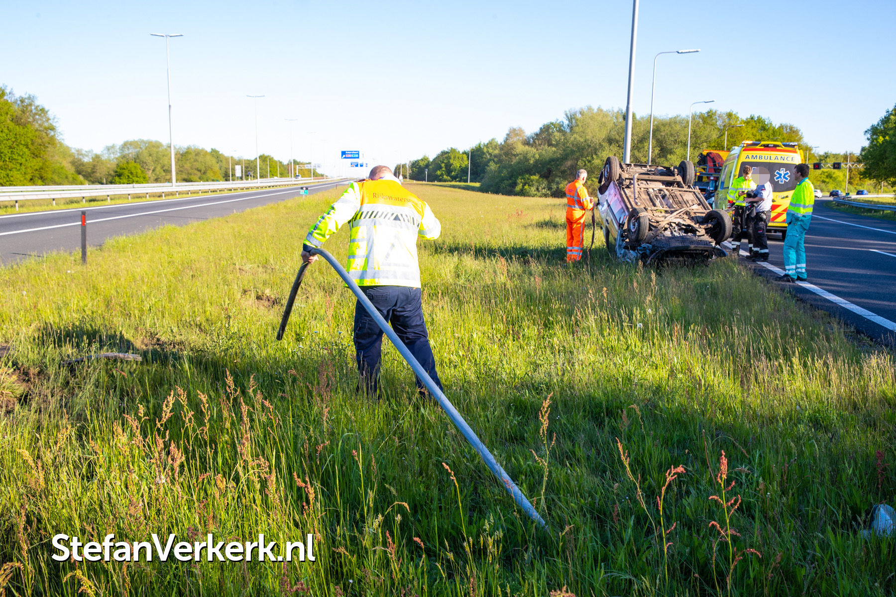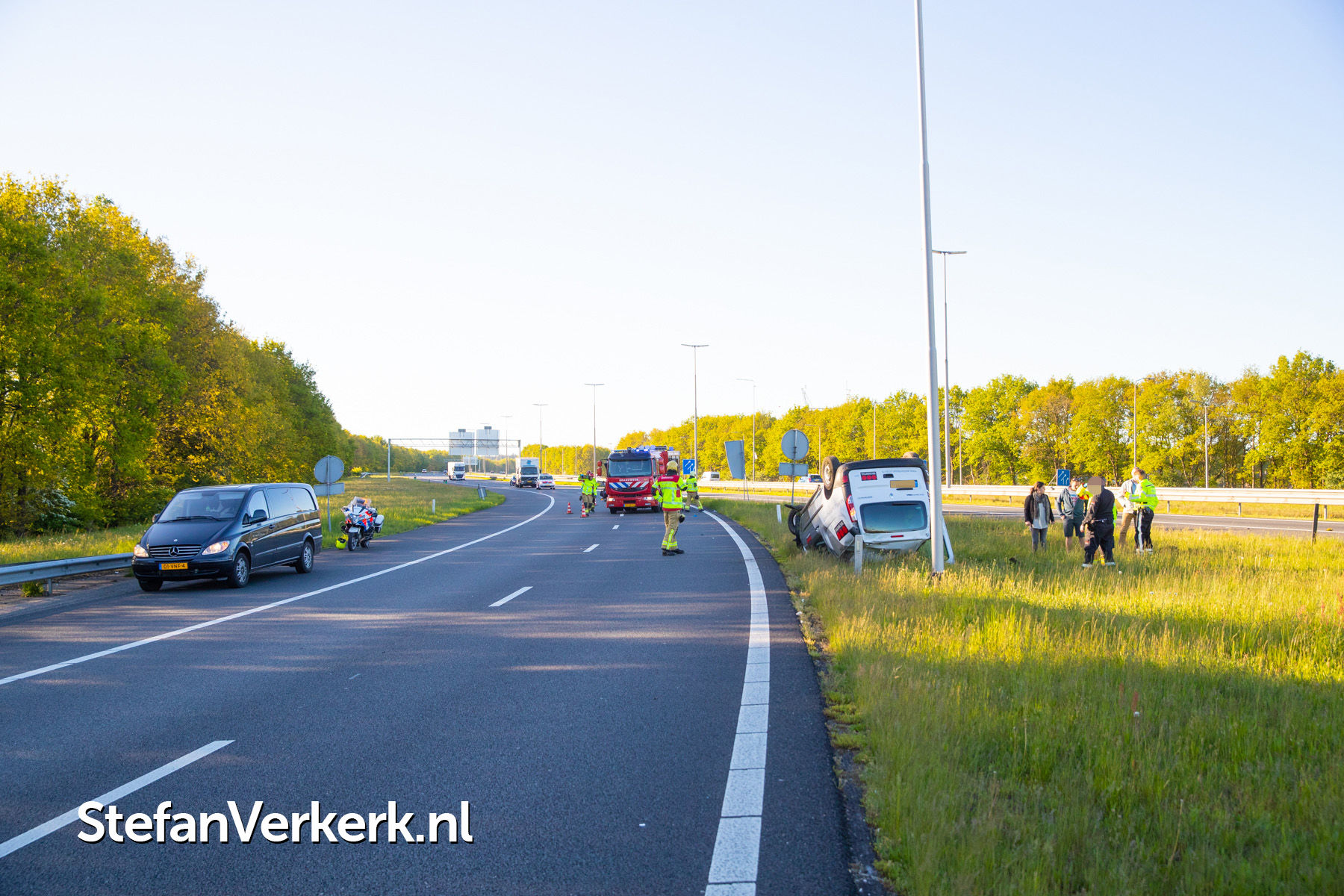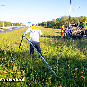 Foto's: Ongeval bedrijfsbus over de kop A50 Re 238,1 r knp. Hattemerbroek