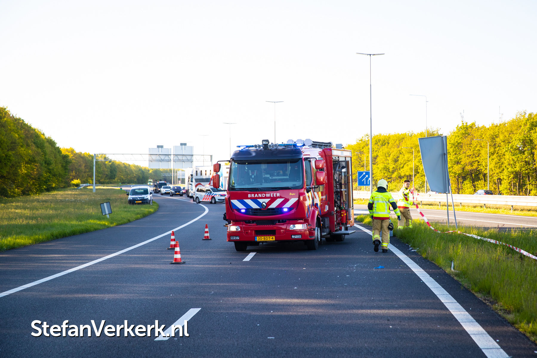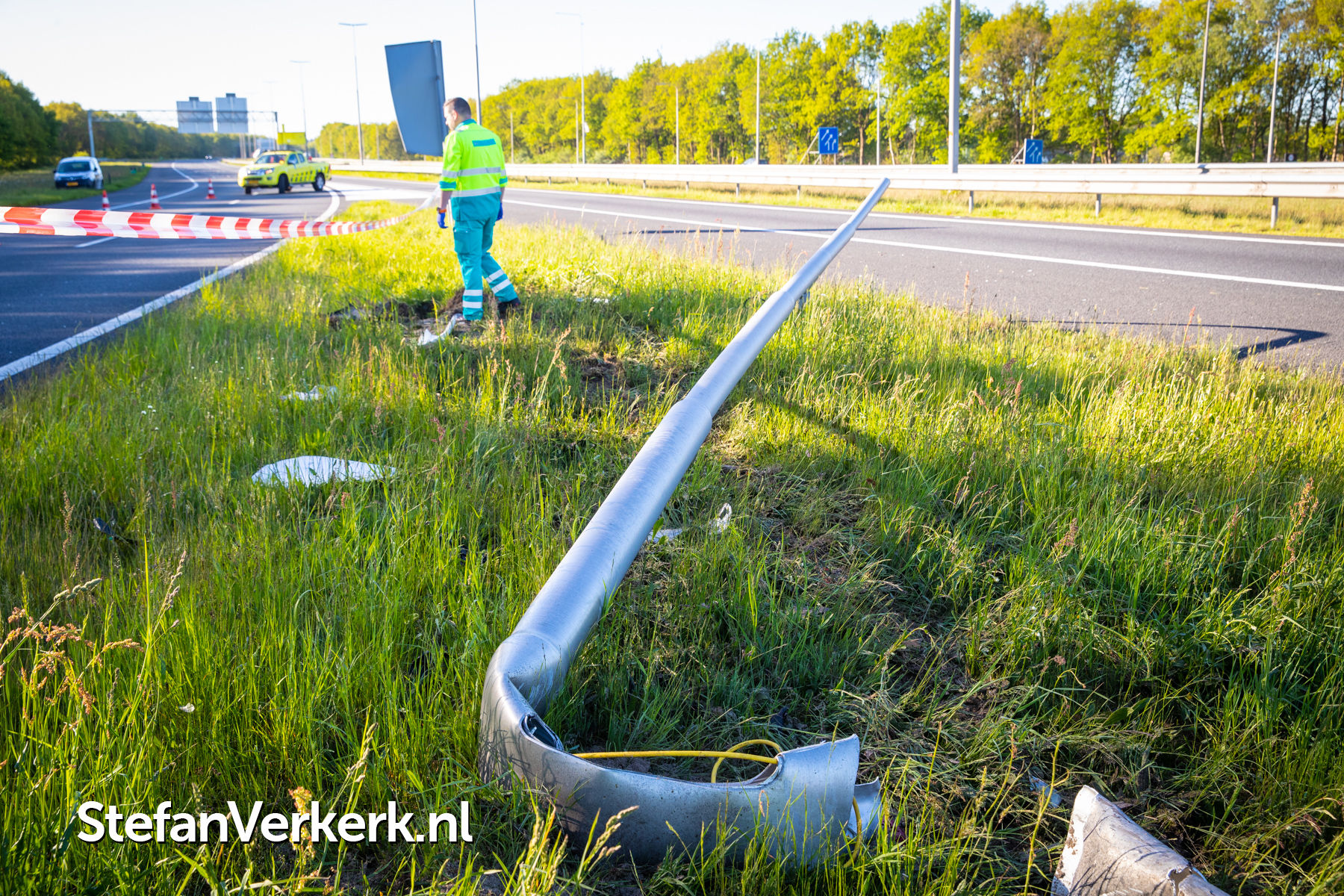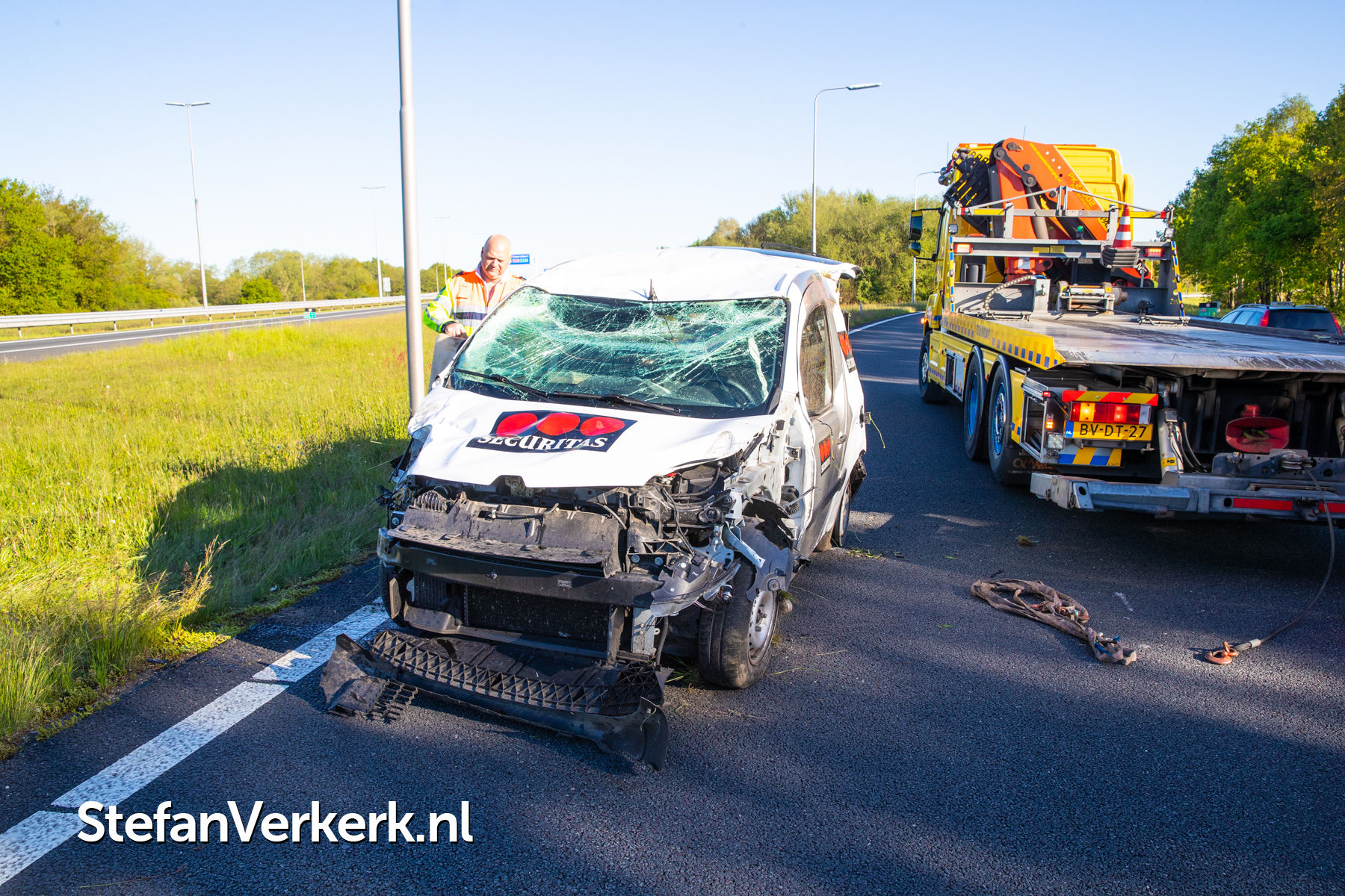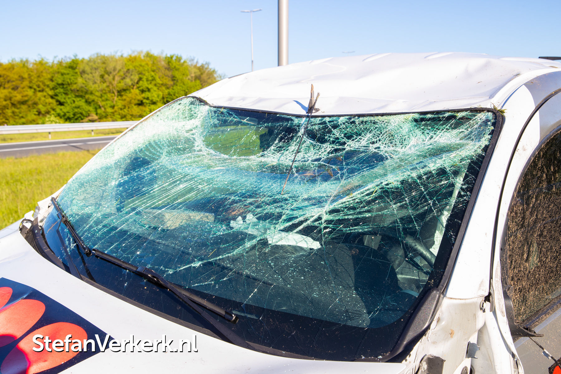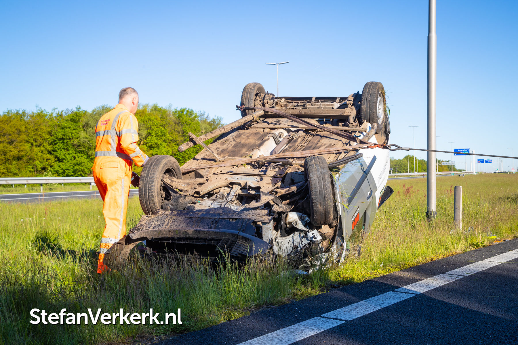 Foto's: Ongeval bedrijfsbus over de kop A50 Re 238,1 r knp. Hattemerbroek