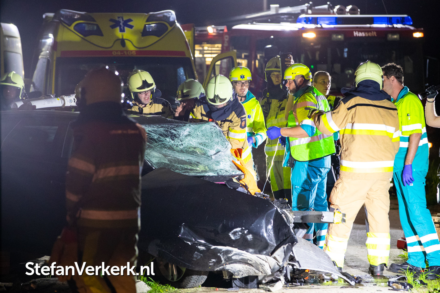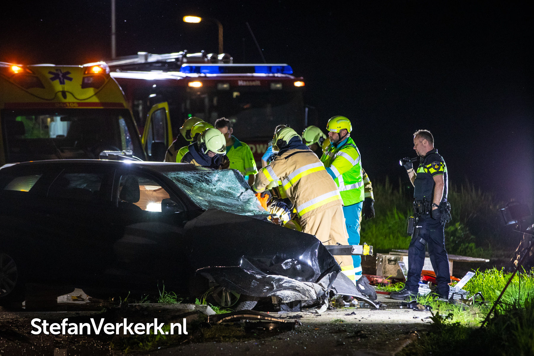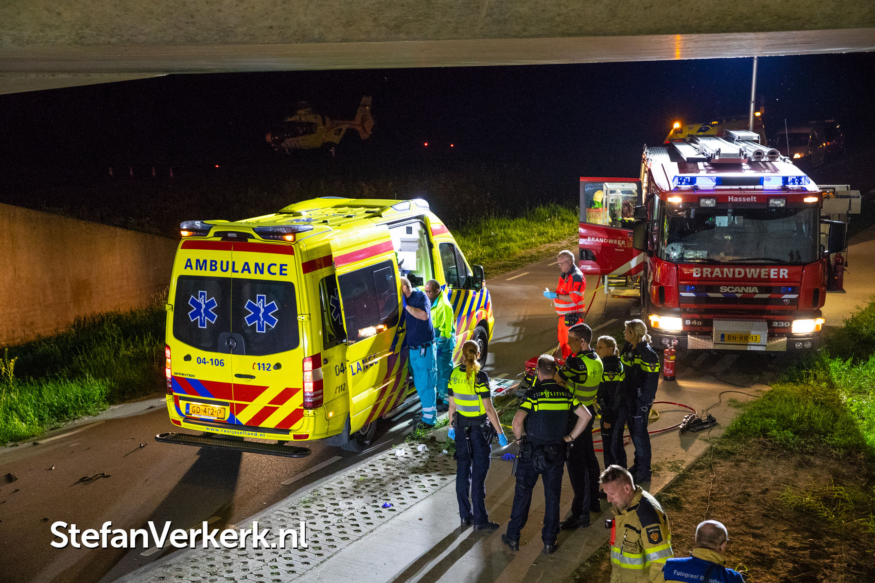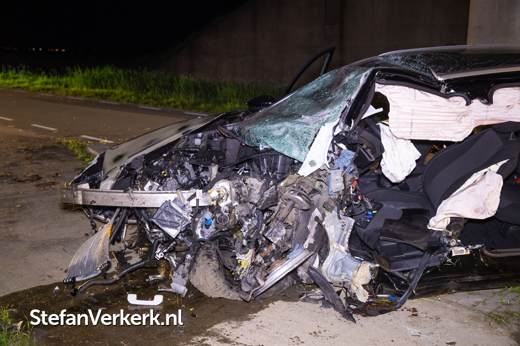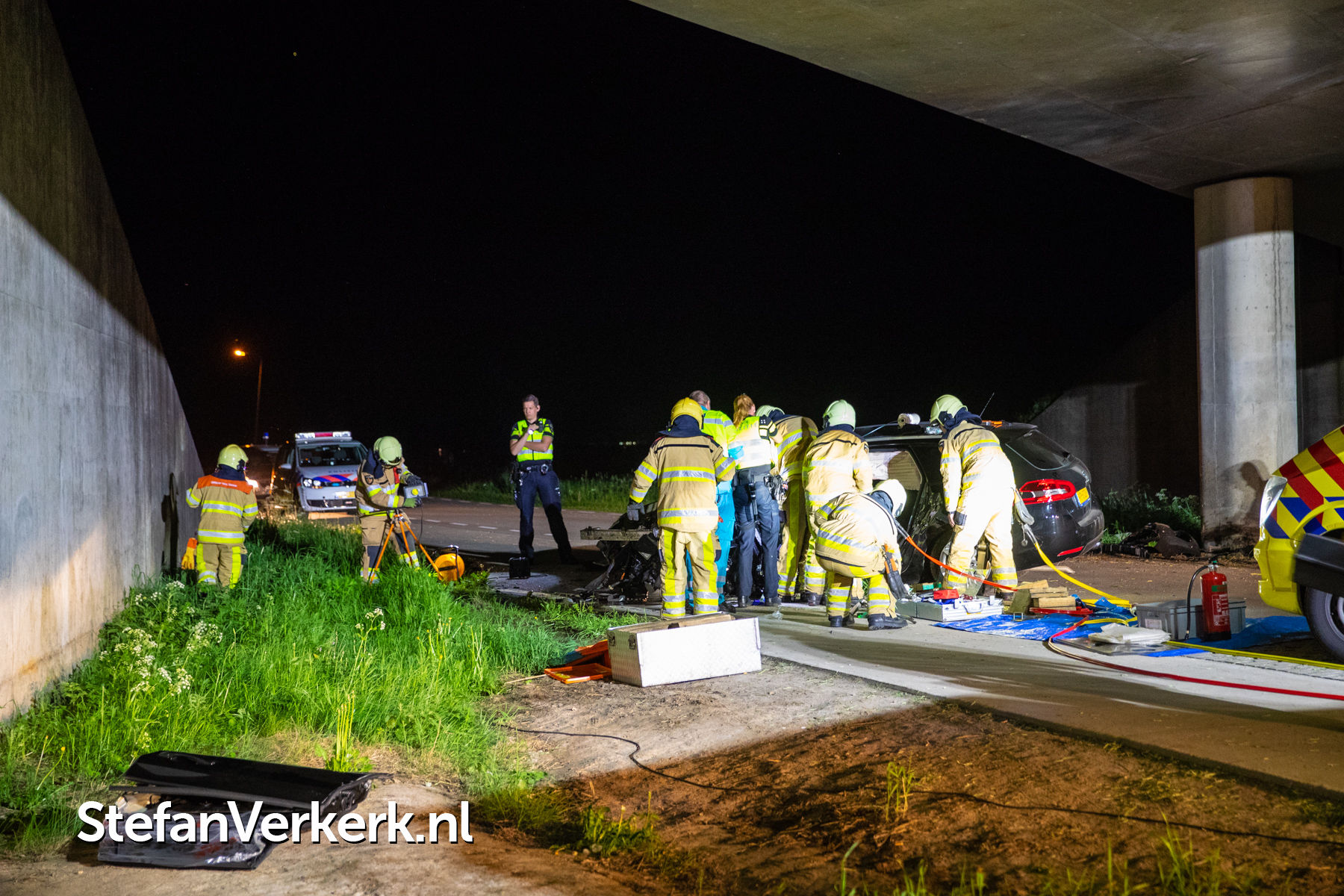 Foto's: Zwaar eenzijdig ongeval auto tegen pijler viaduct Ruimzichtweg Zwolle