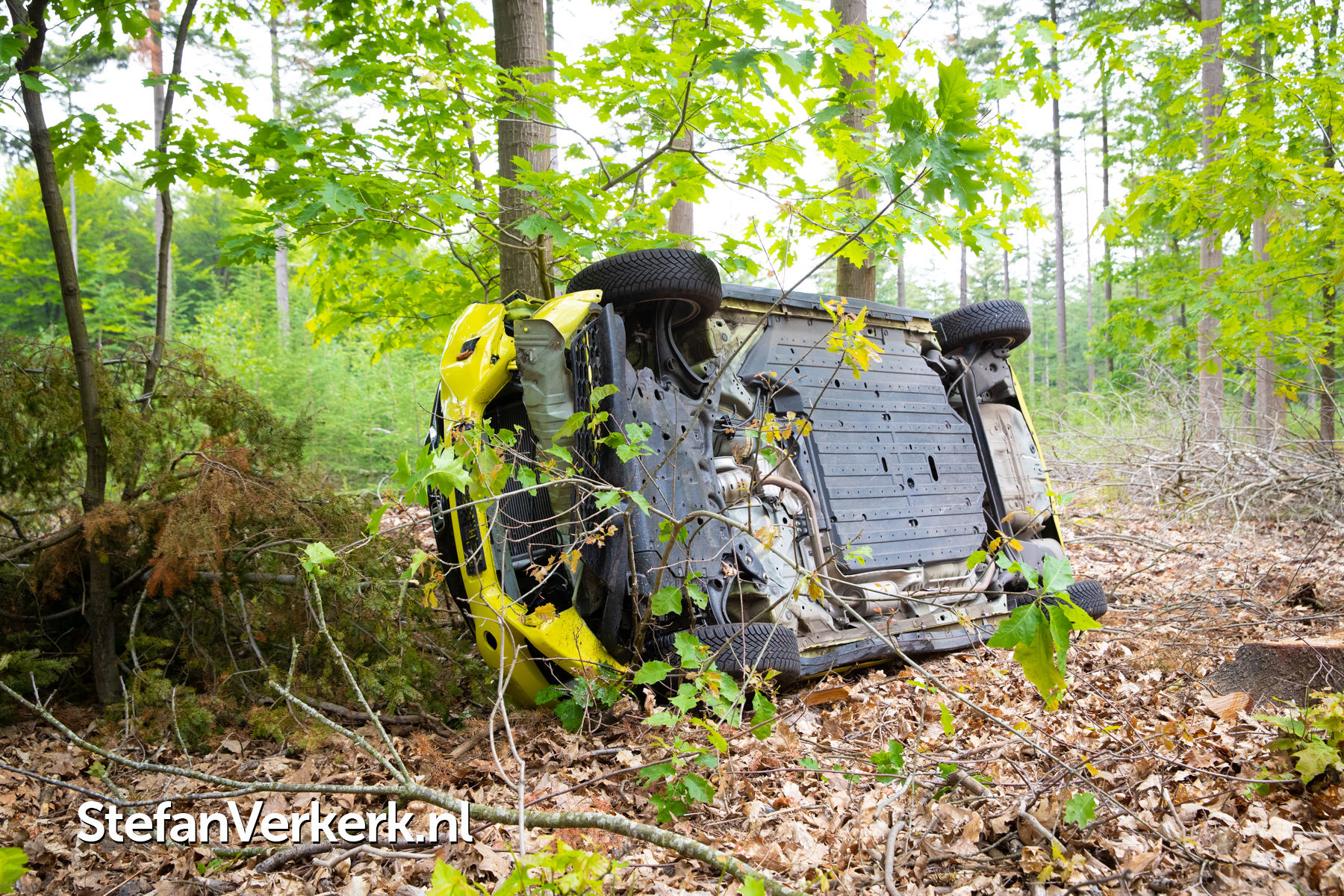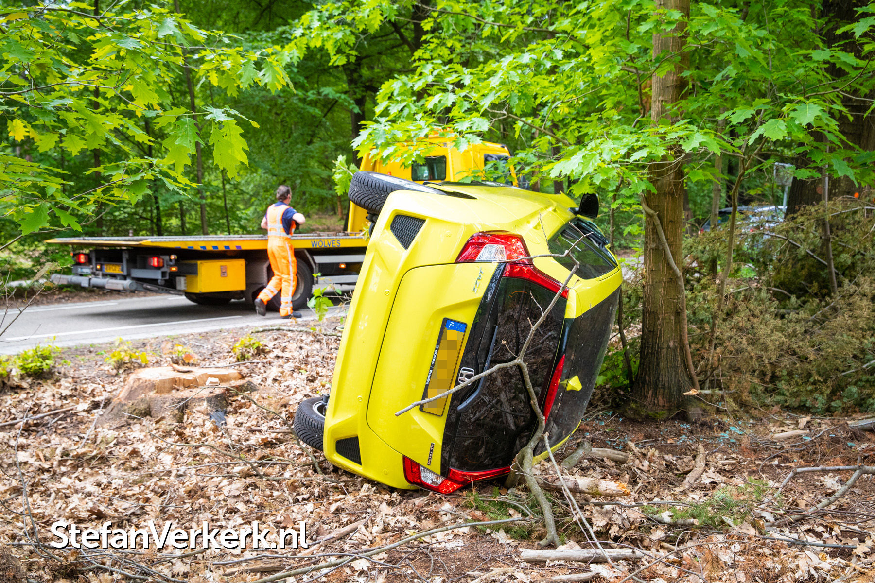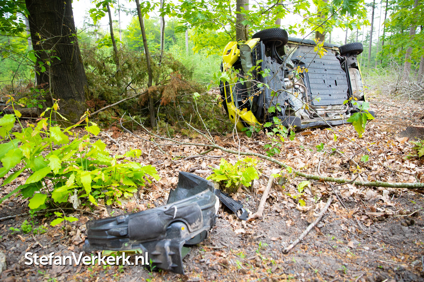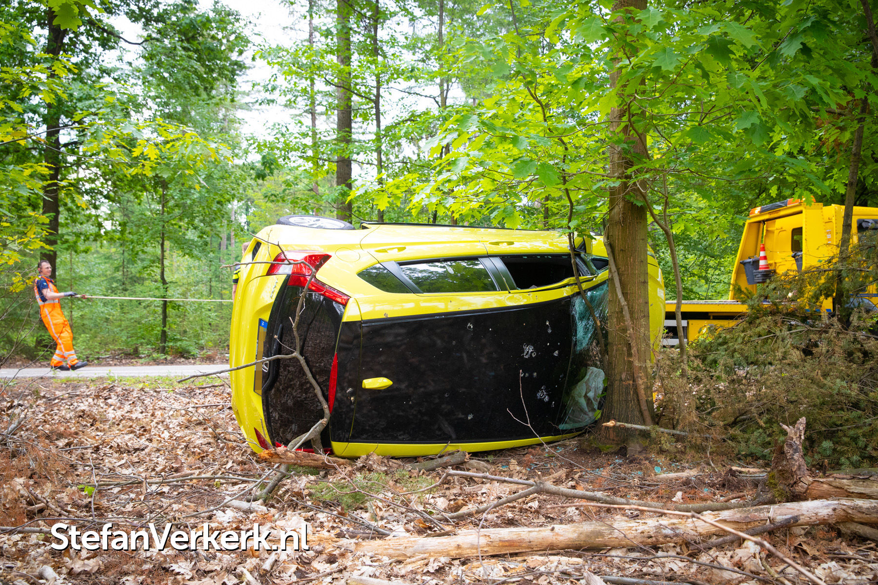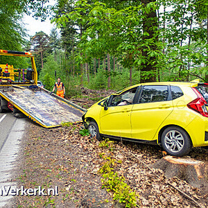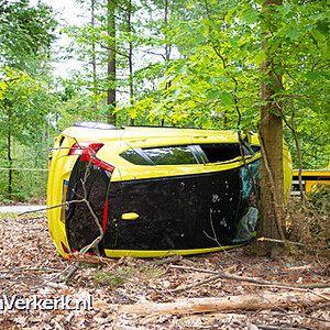 Foto's: Ongeval auto gekanteld tegen boom Nieuwe Zuidweg Heerde