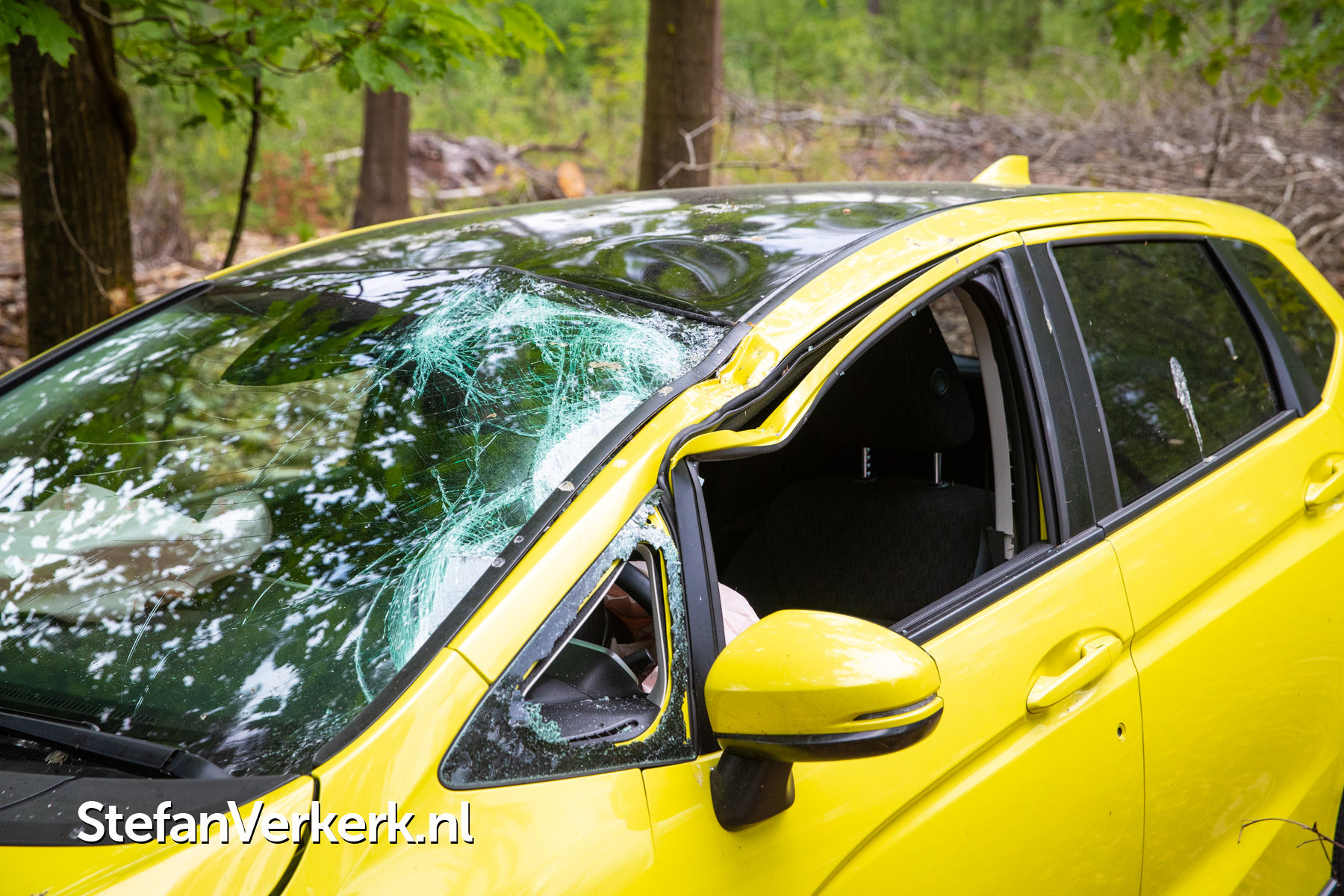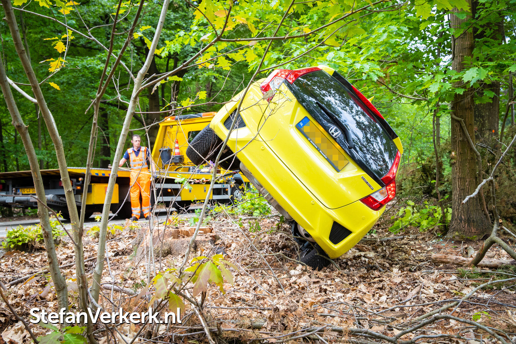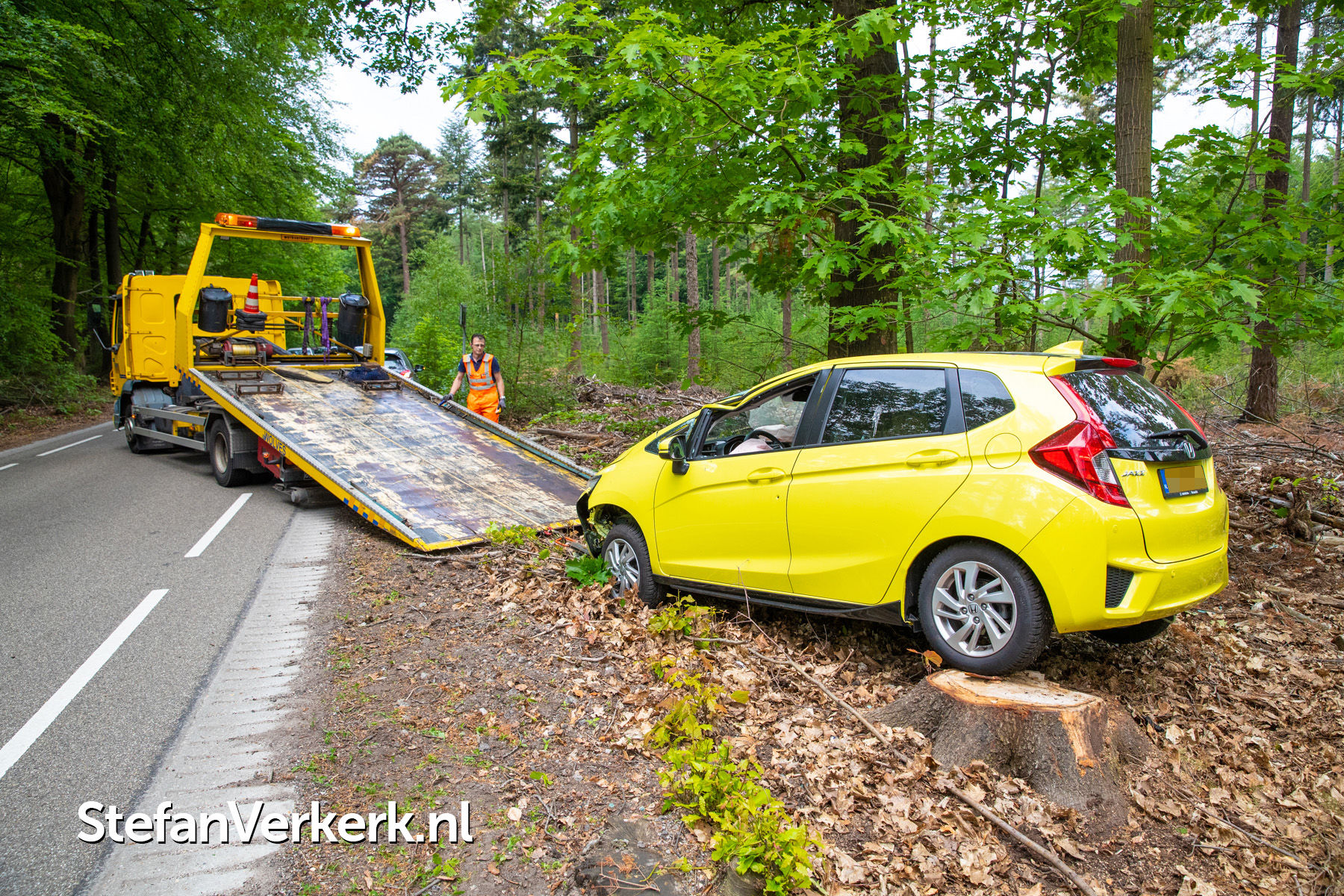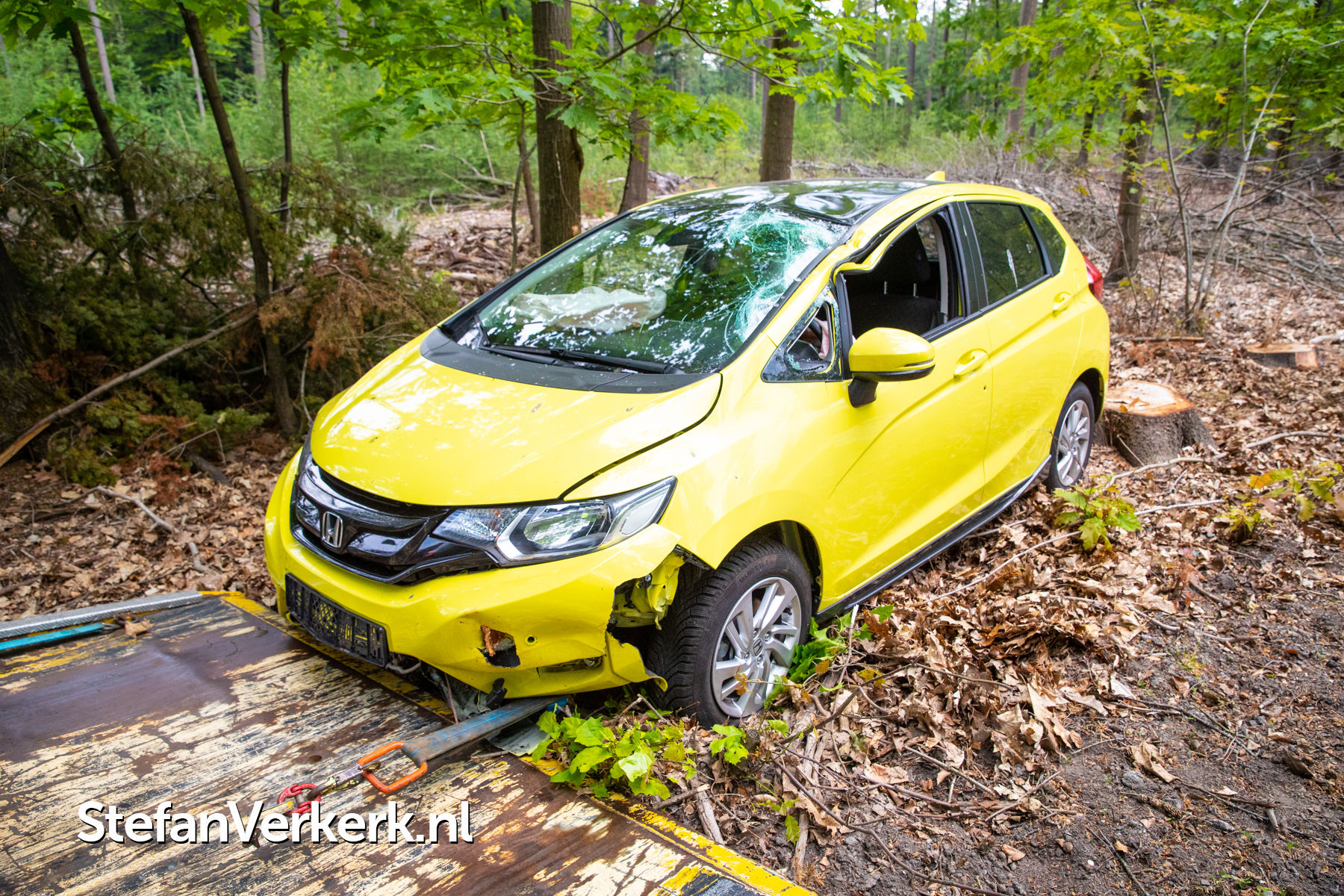 Foto's: Ongeval auto gekanteld tegen boom Nieuwe Zuidweg Heerde