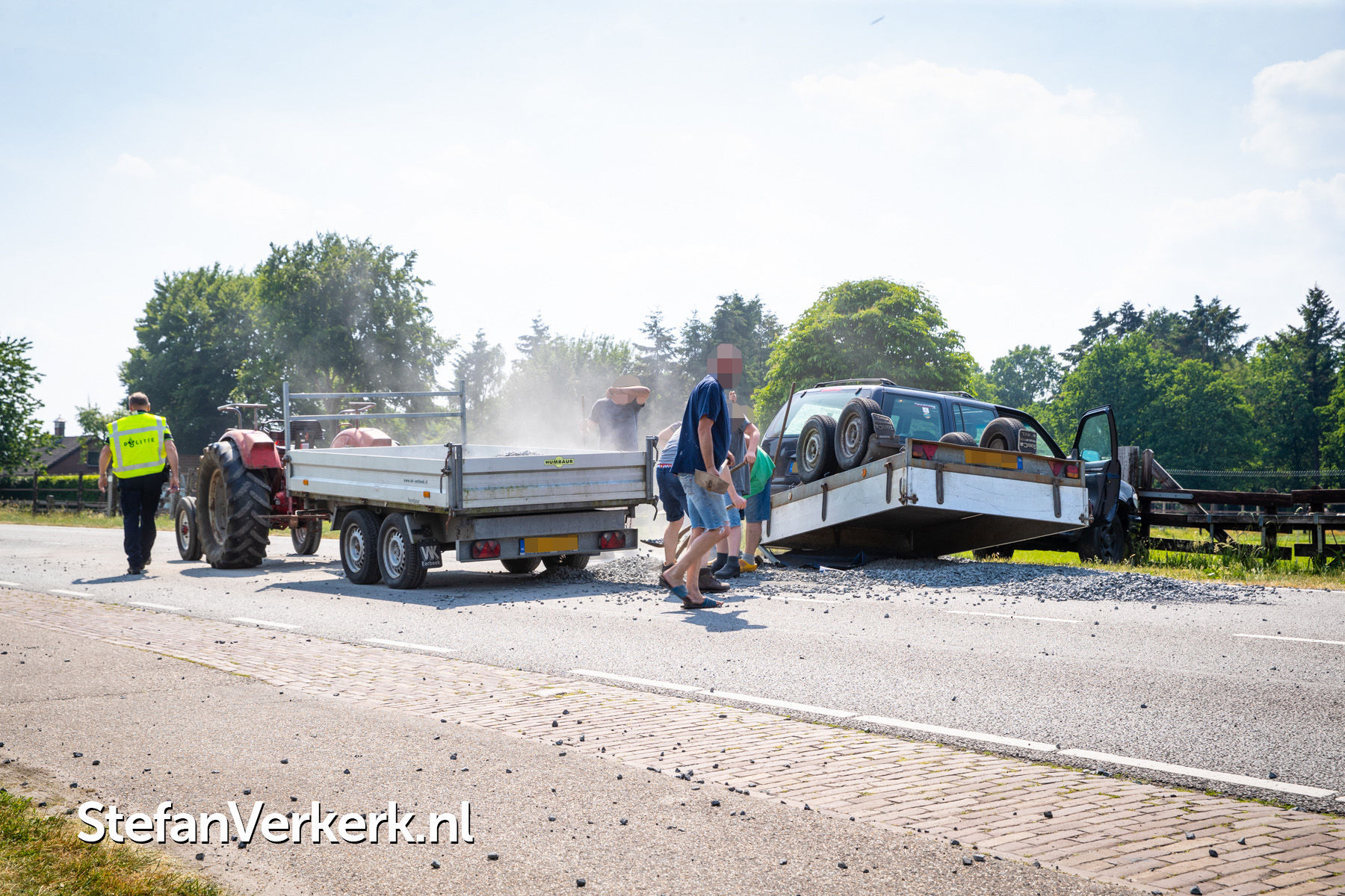 Foto's: Aanhanger met grind over de kop Zwolseweg Heerde