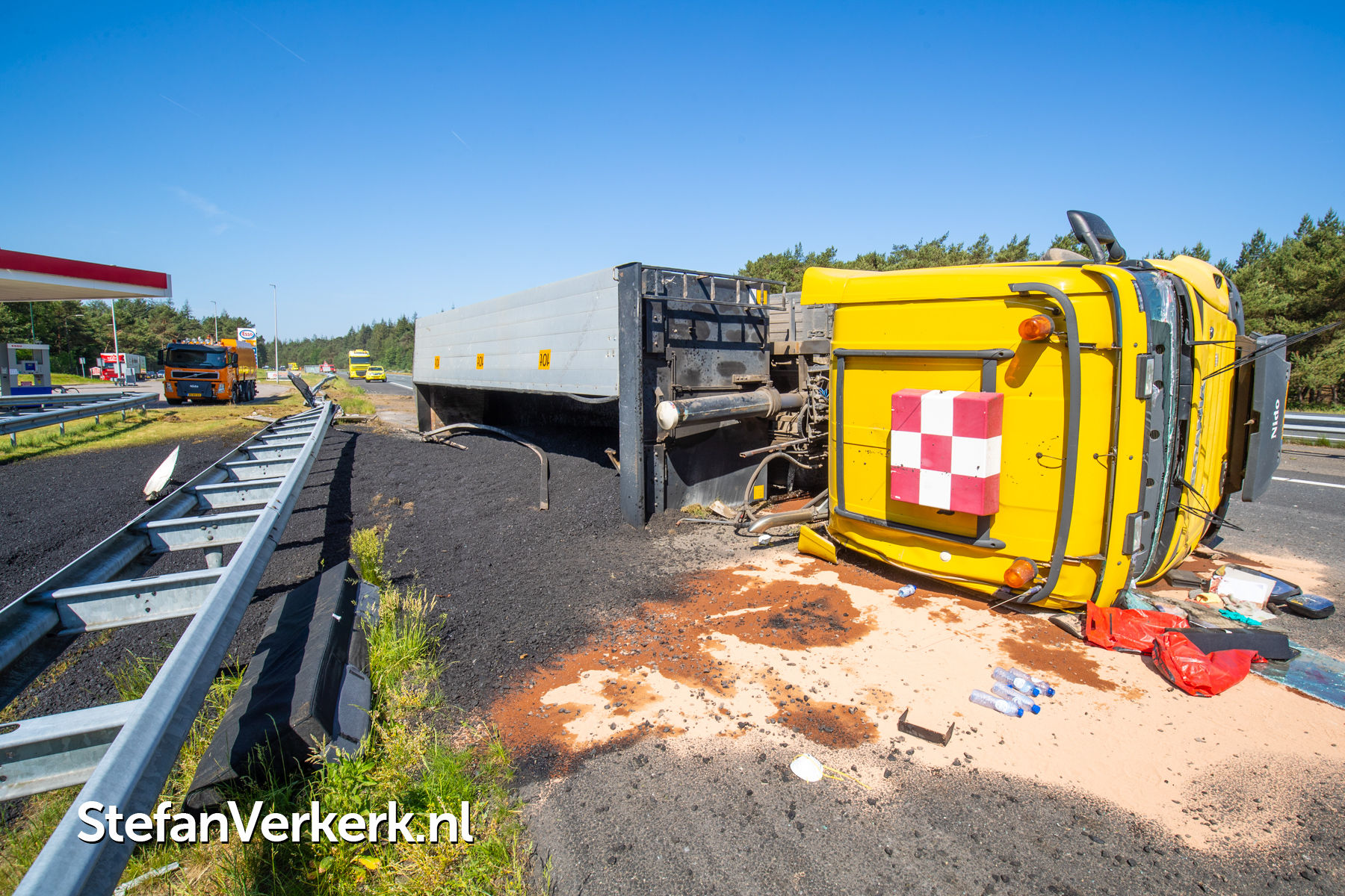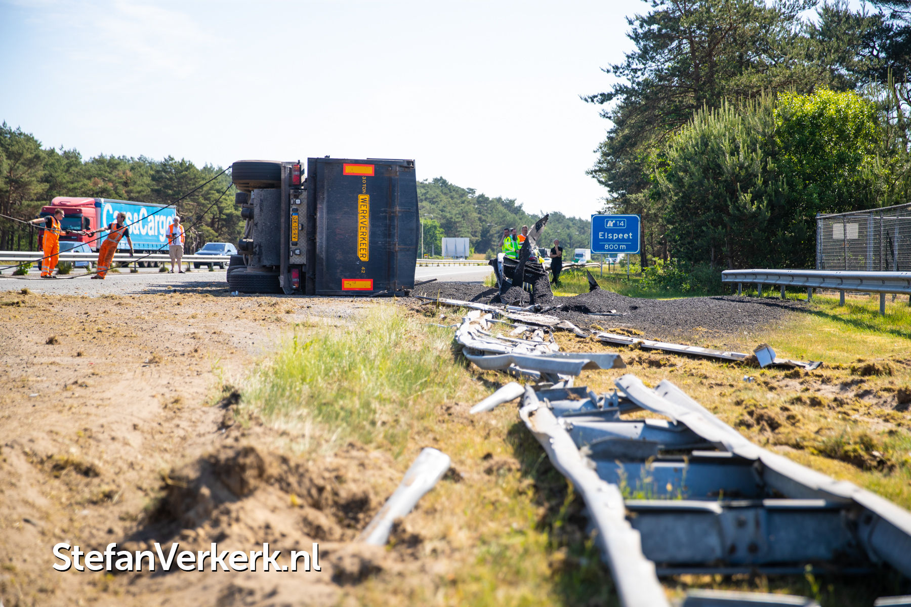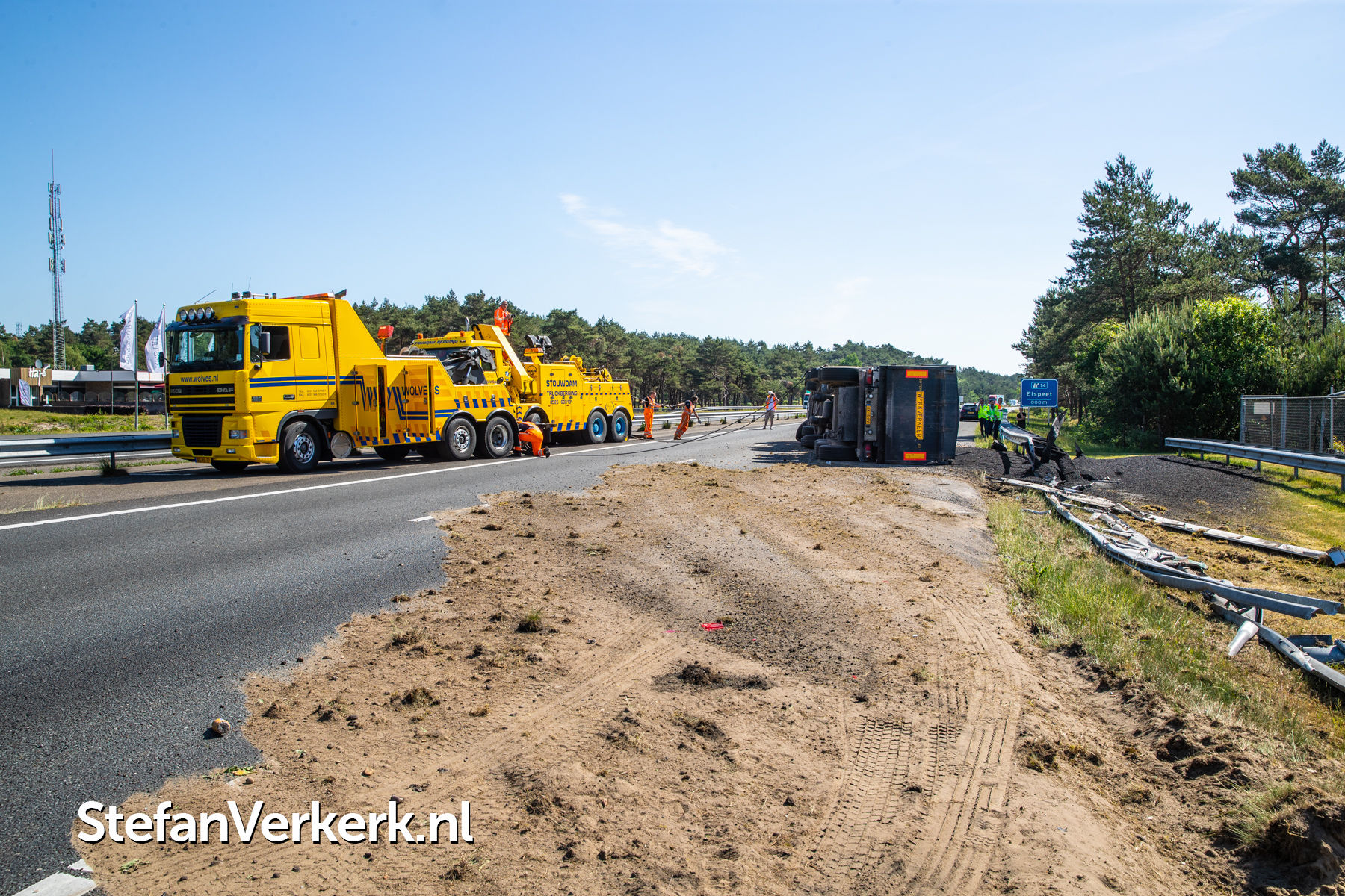 Foto's: Vrachtwagen met warm asfalt gekanteld A28 R 62,0 Nunspeet