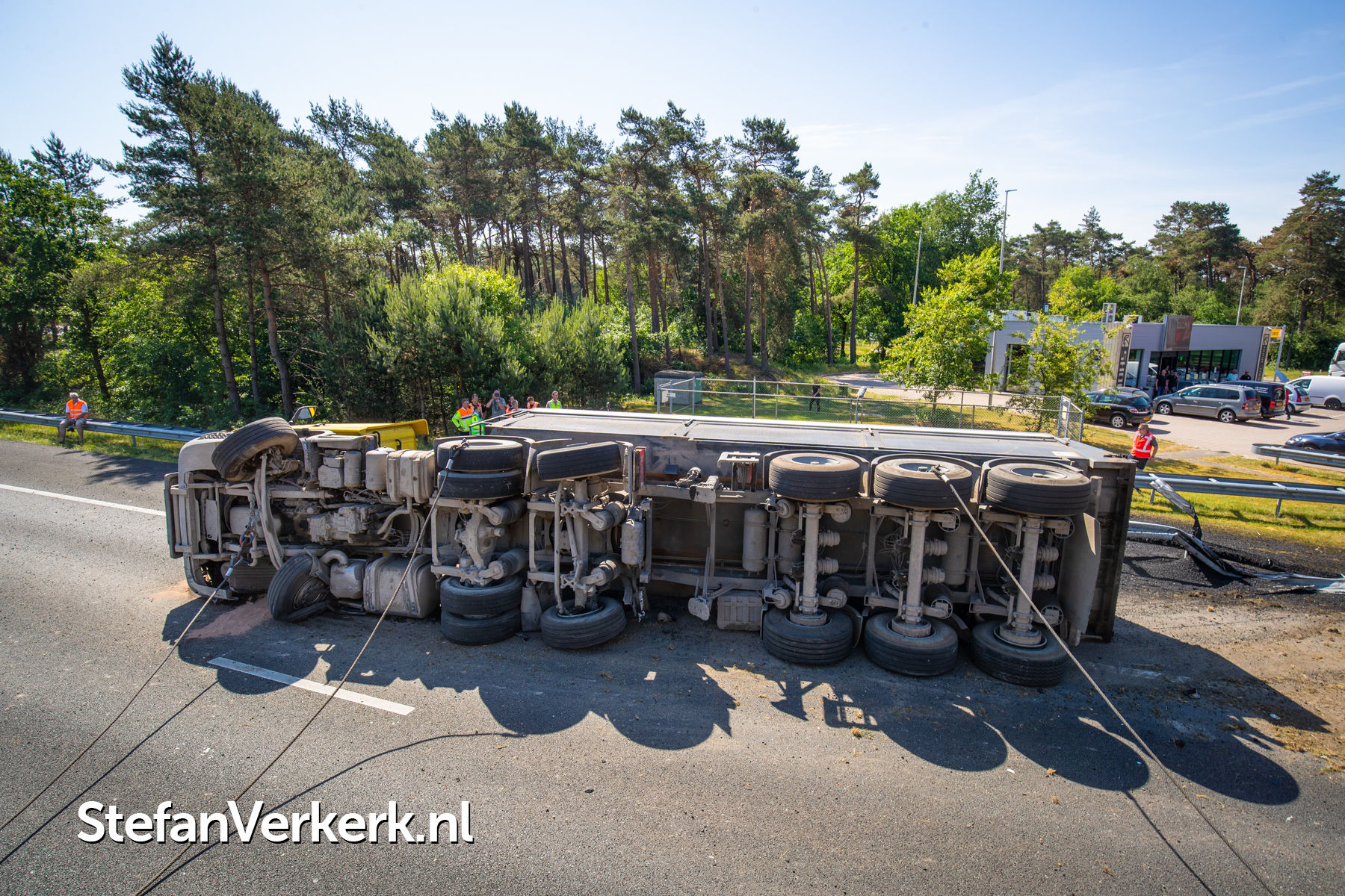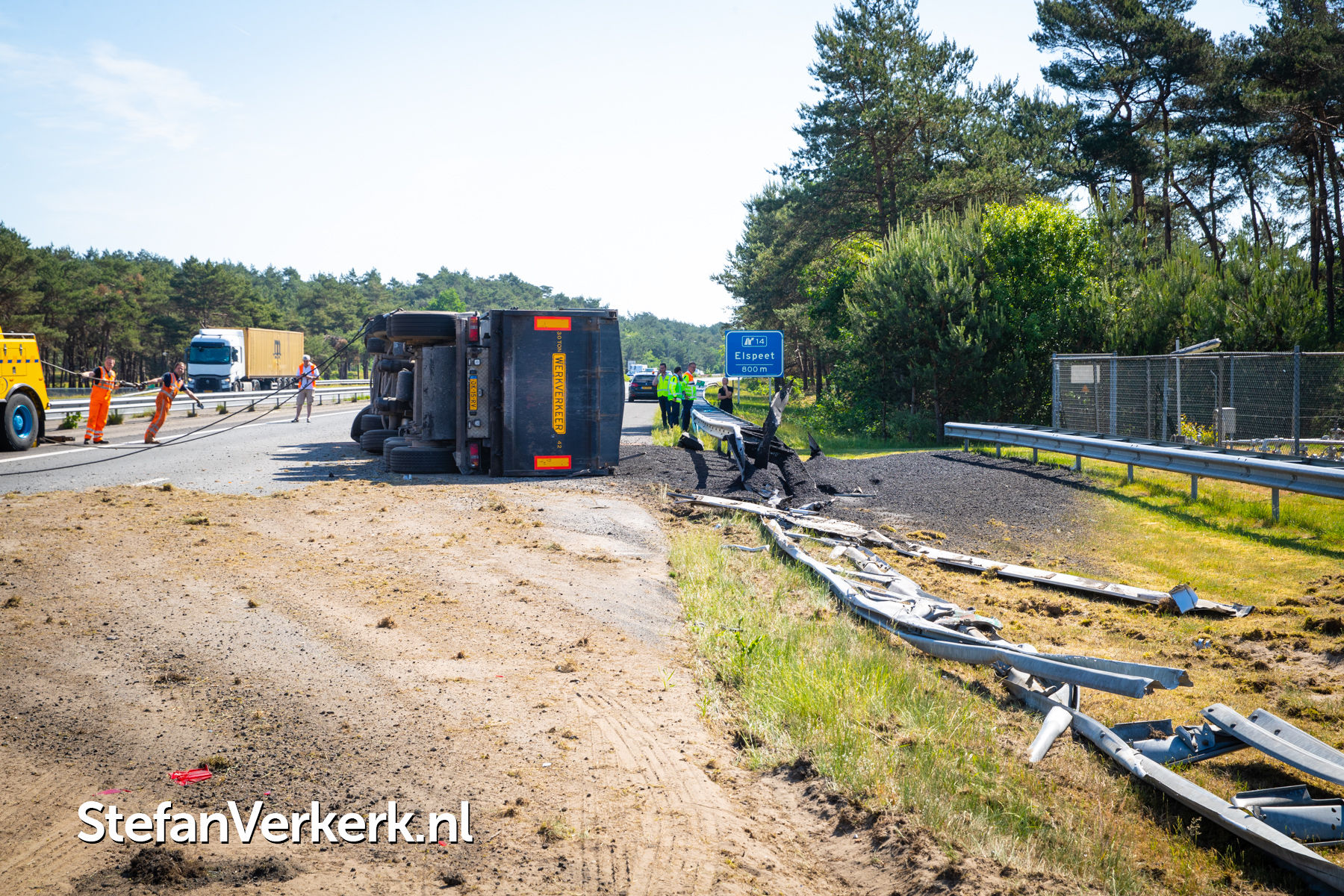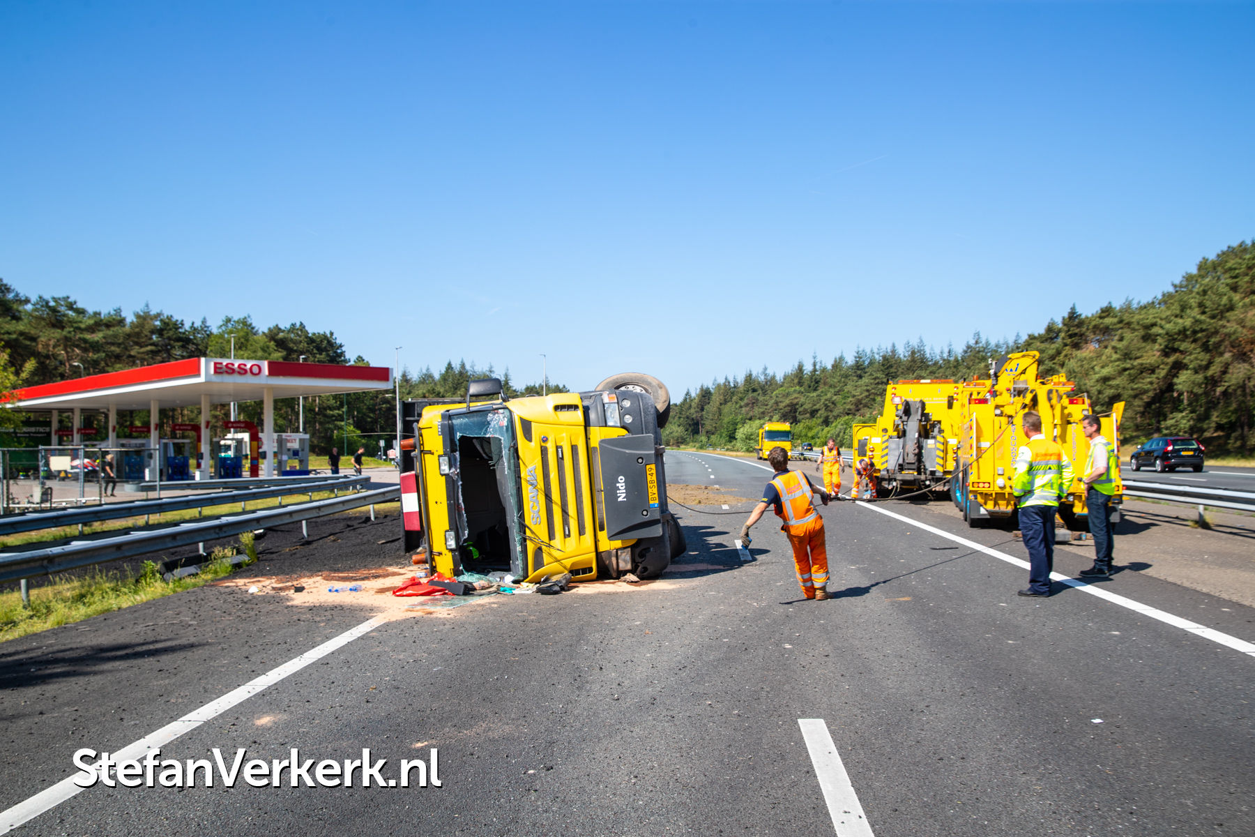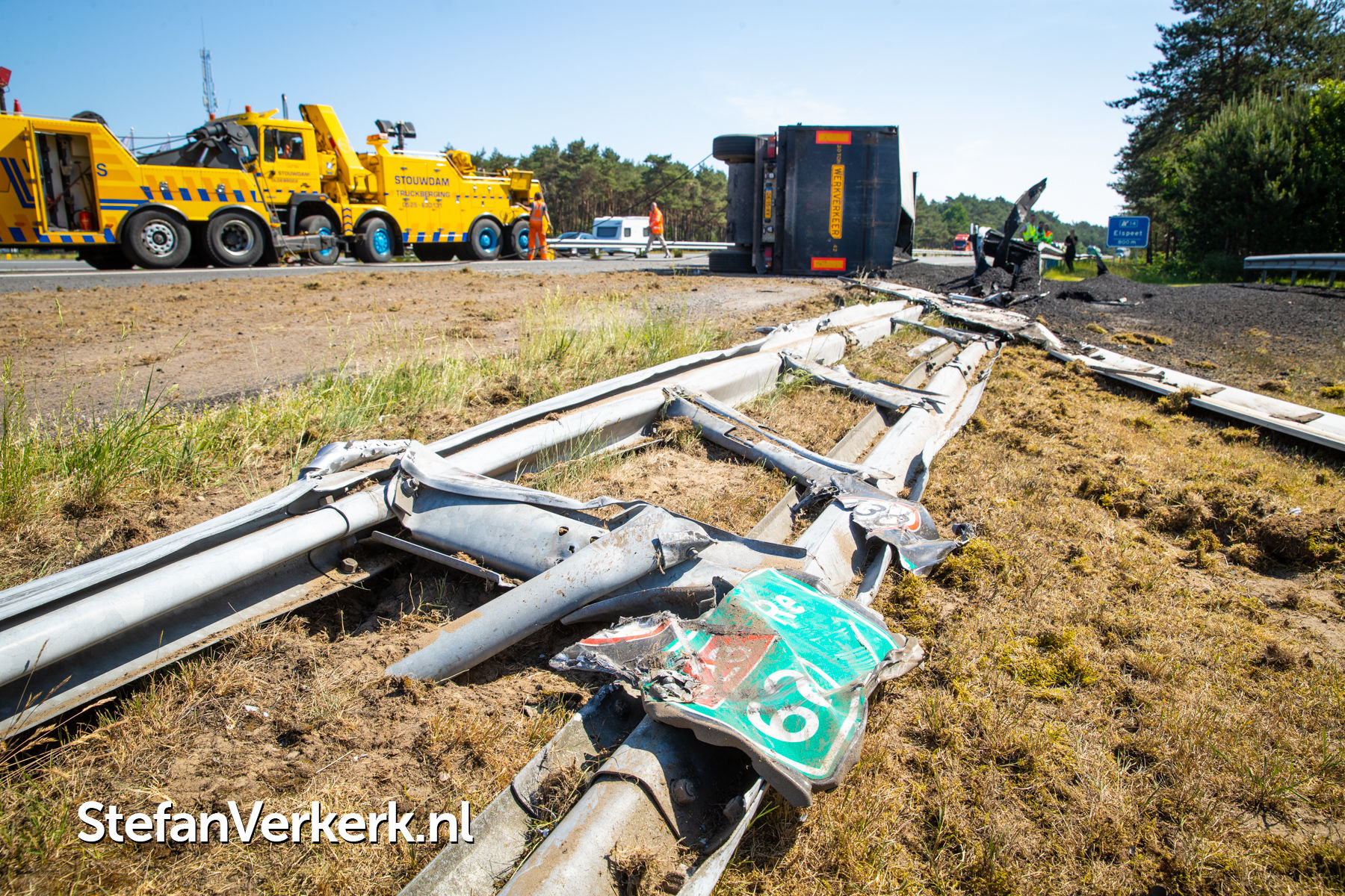 Foto's: Vrachtwagen met warm asfalt gekanteld A28 R 62,0 Nunspeet