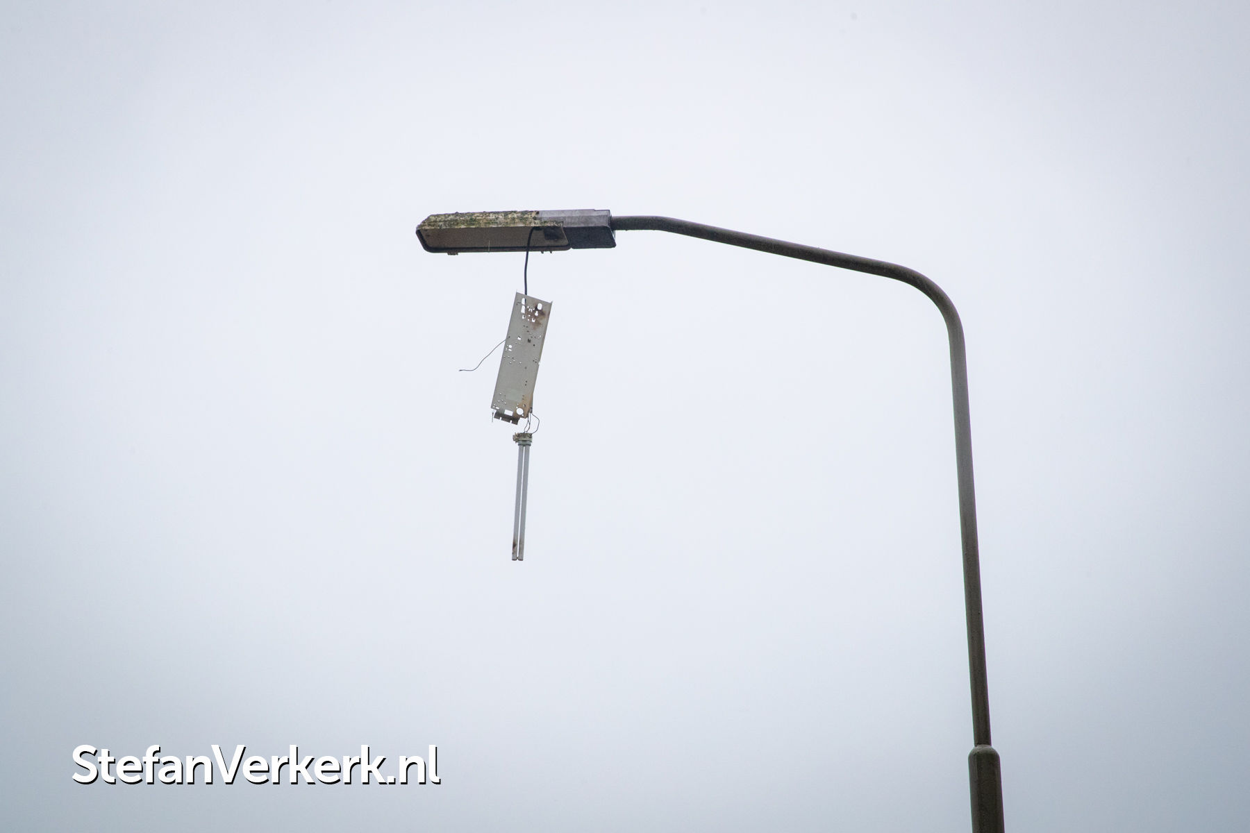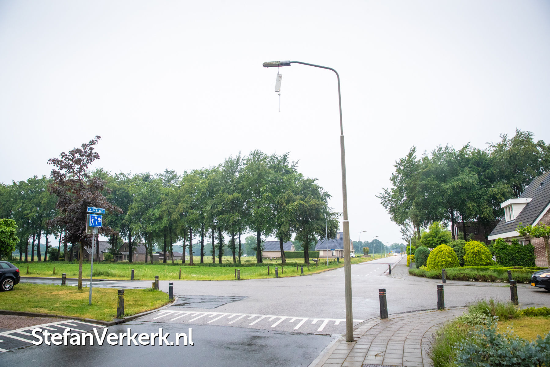Foto's: Bliksem slaat in op lantaarnpaal Klocklaan Oldebroek