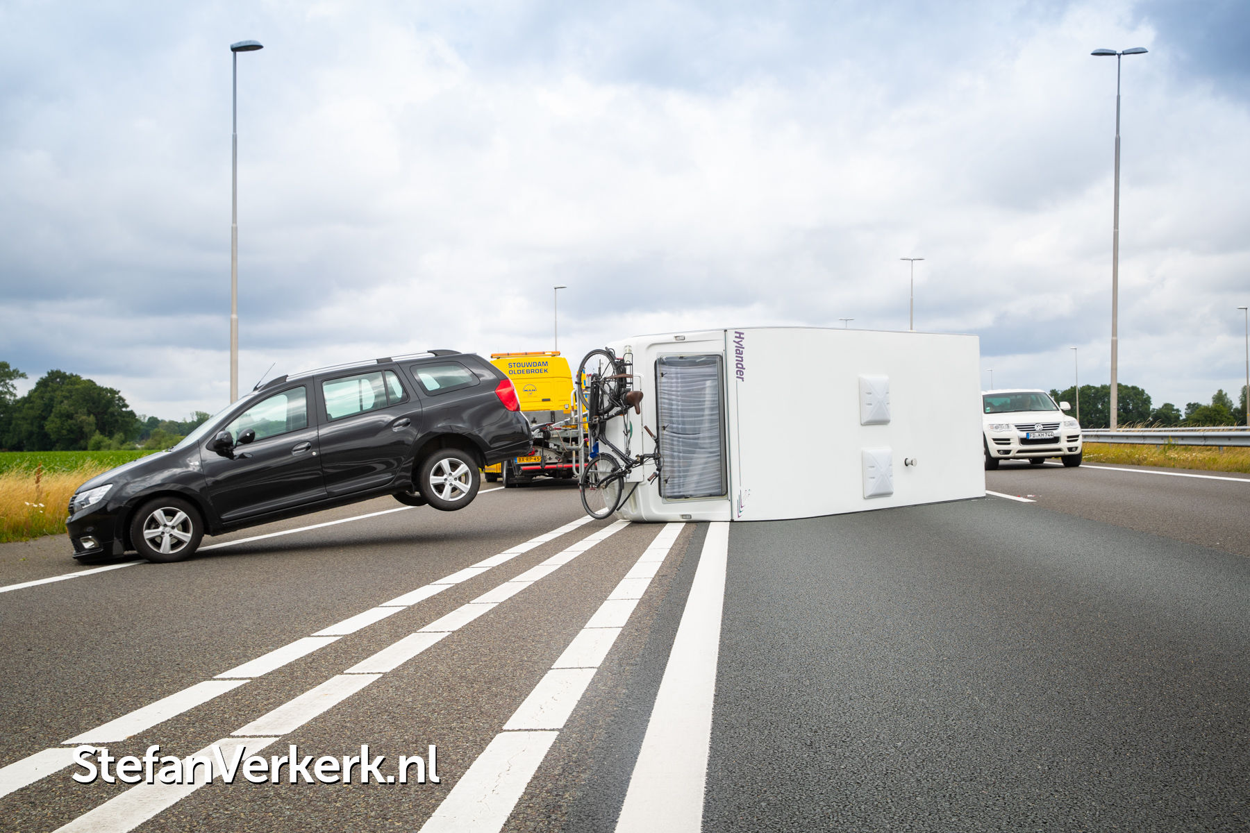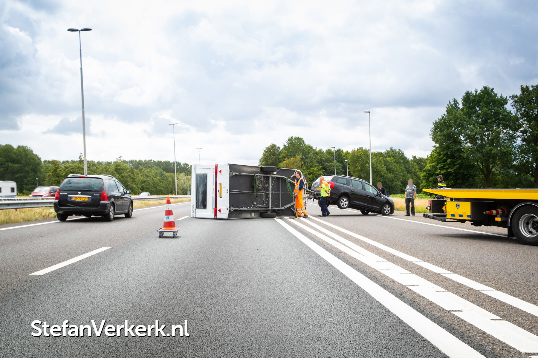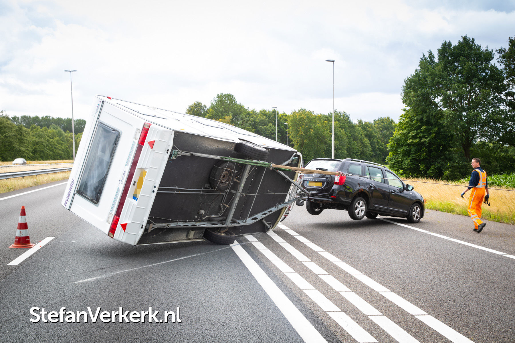 Foto's: Ongeval caravan gekanteld A50 L 216,3 Vaassen