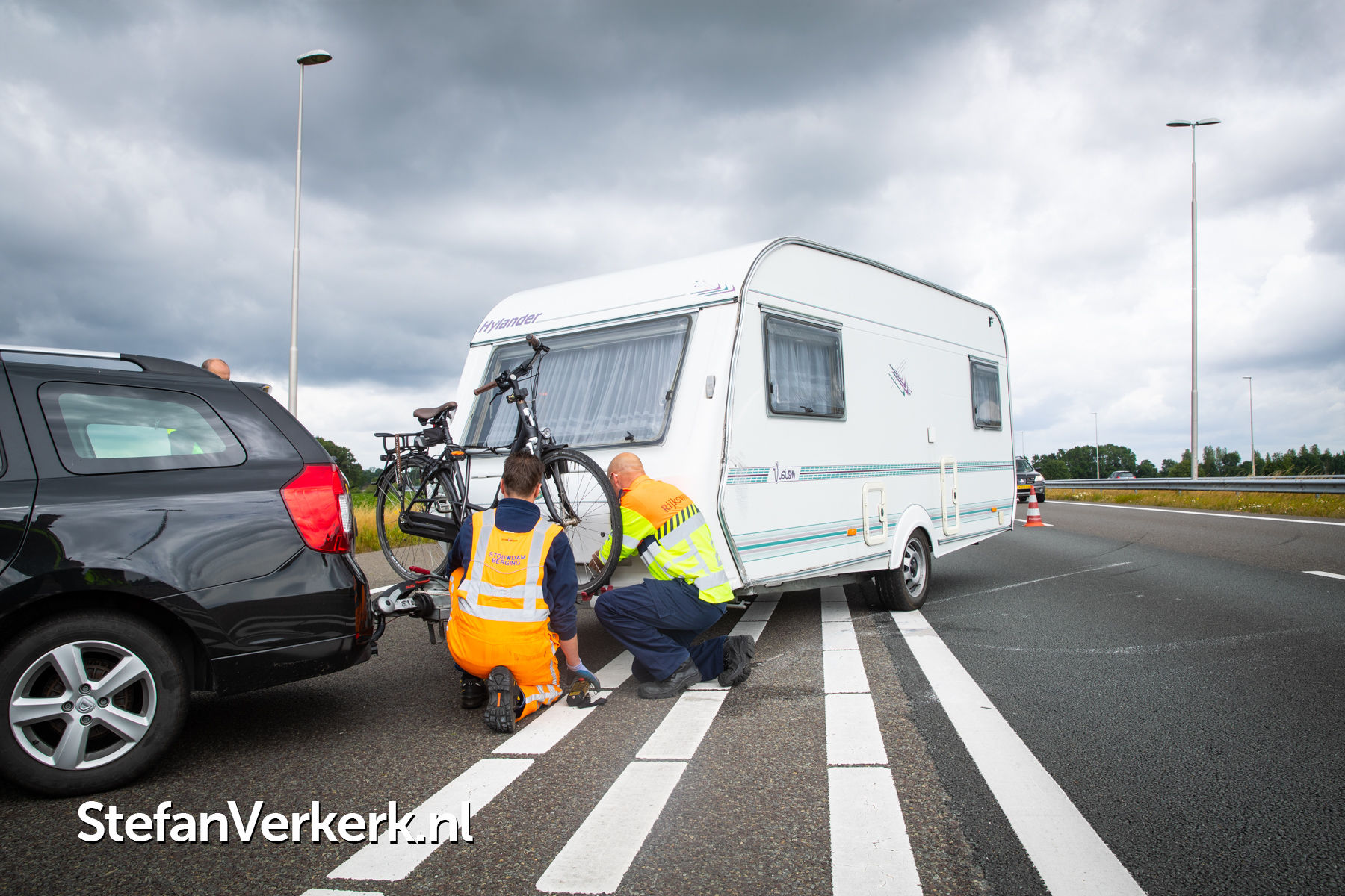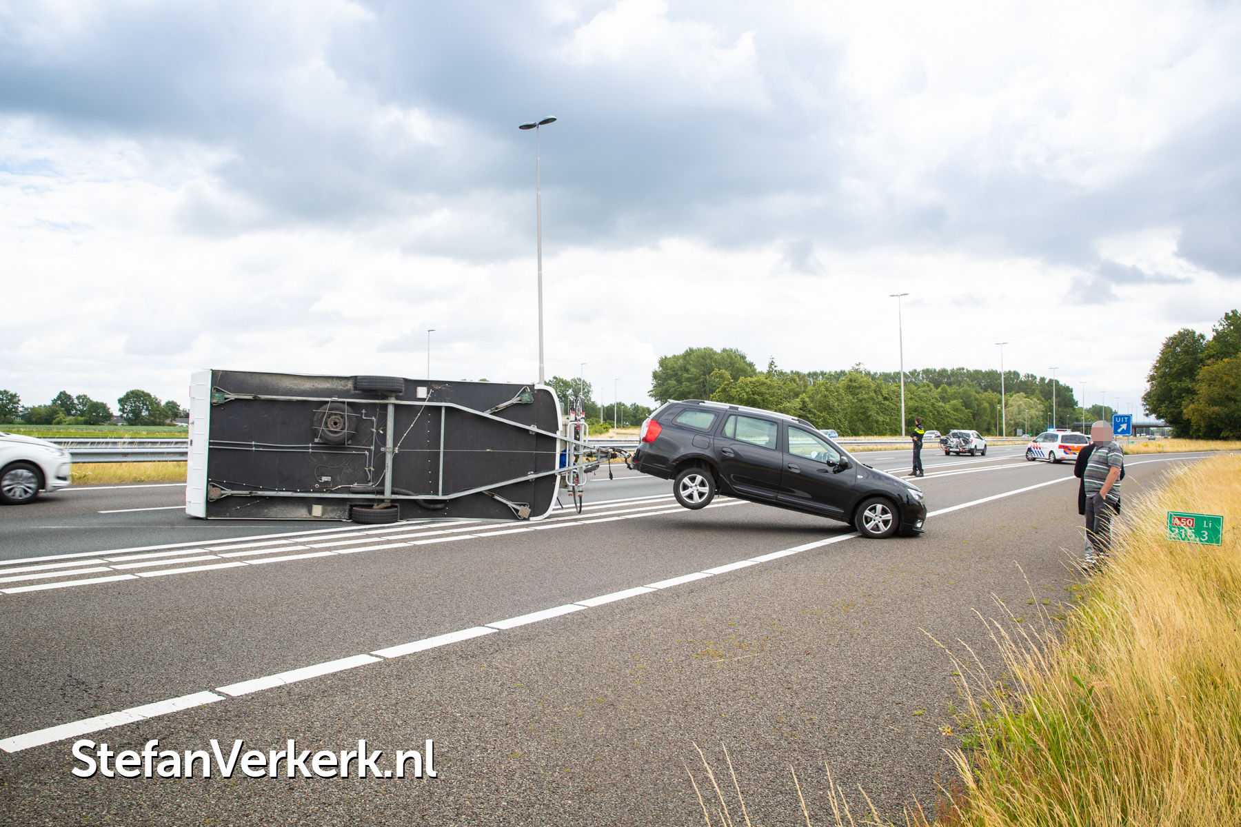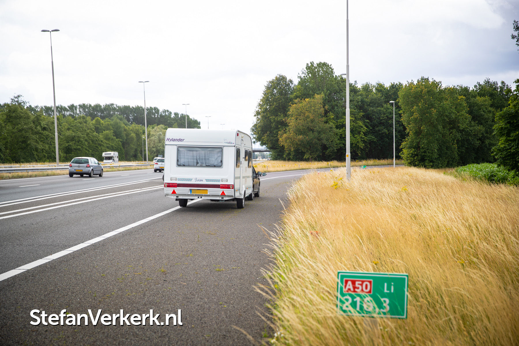 Foto's: Ongeval caravan gekanteld A50 L 216,3 Vaassen