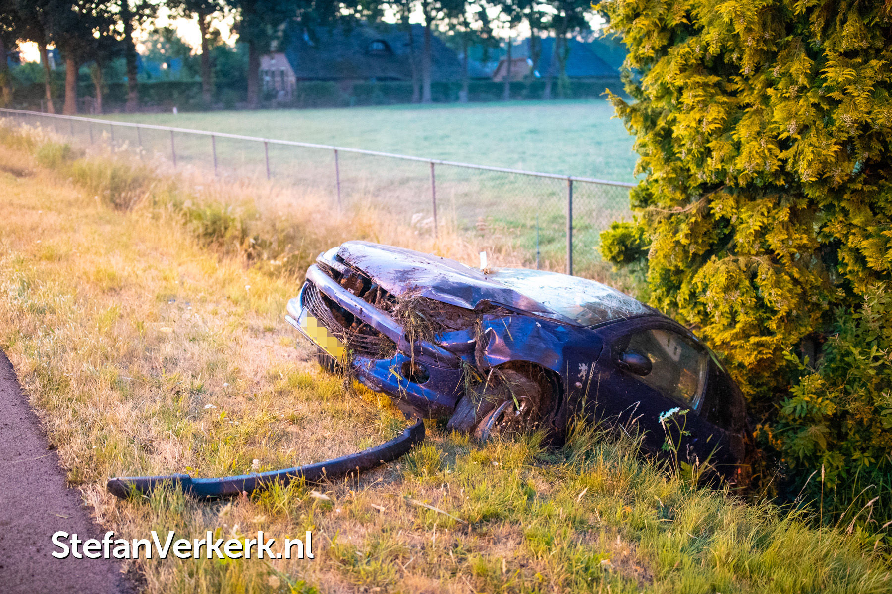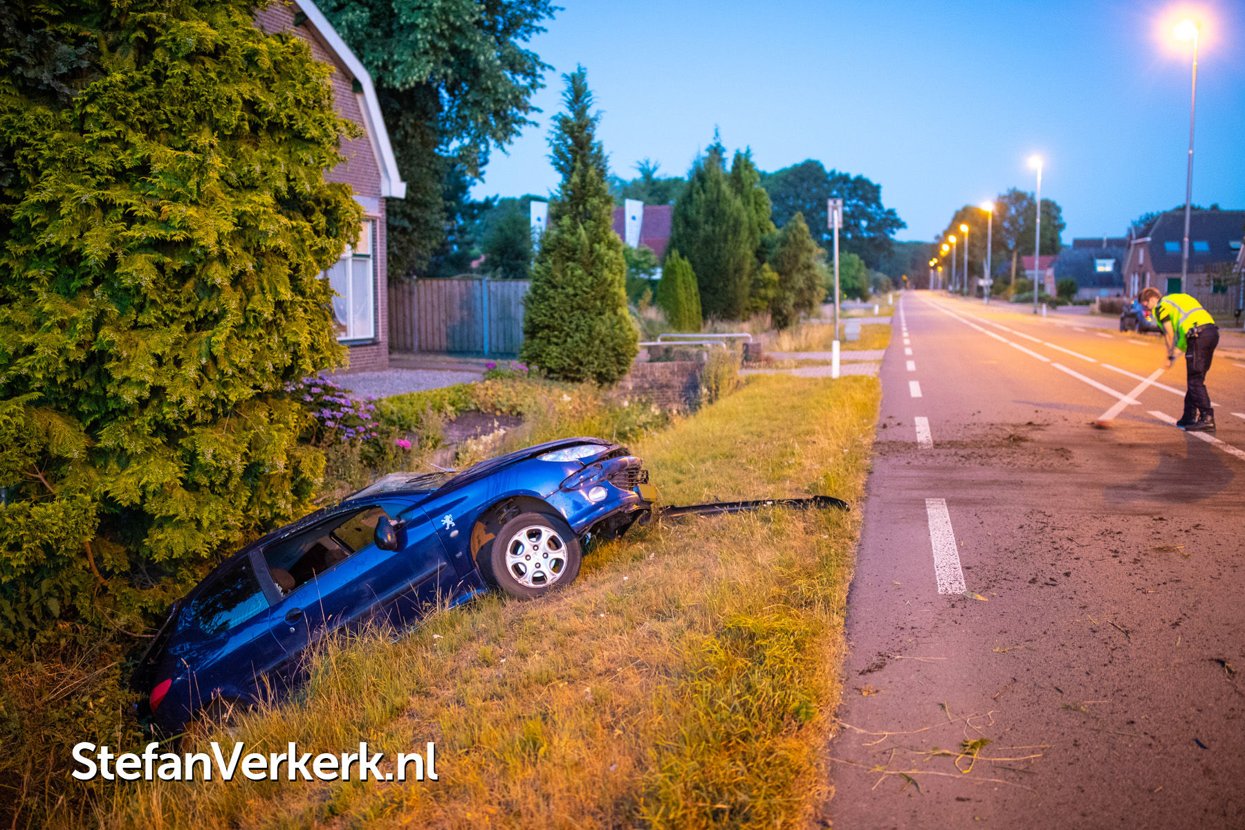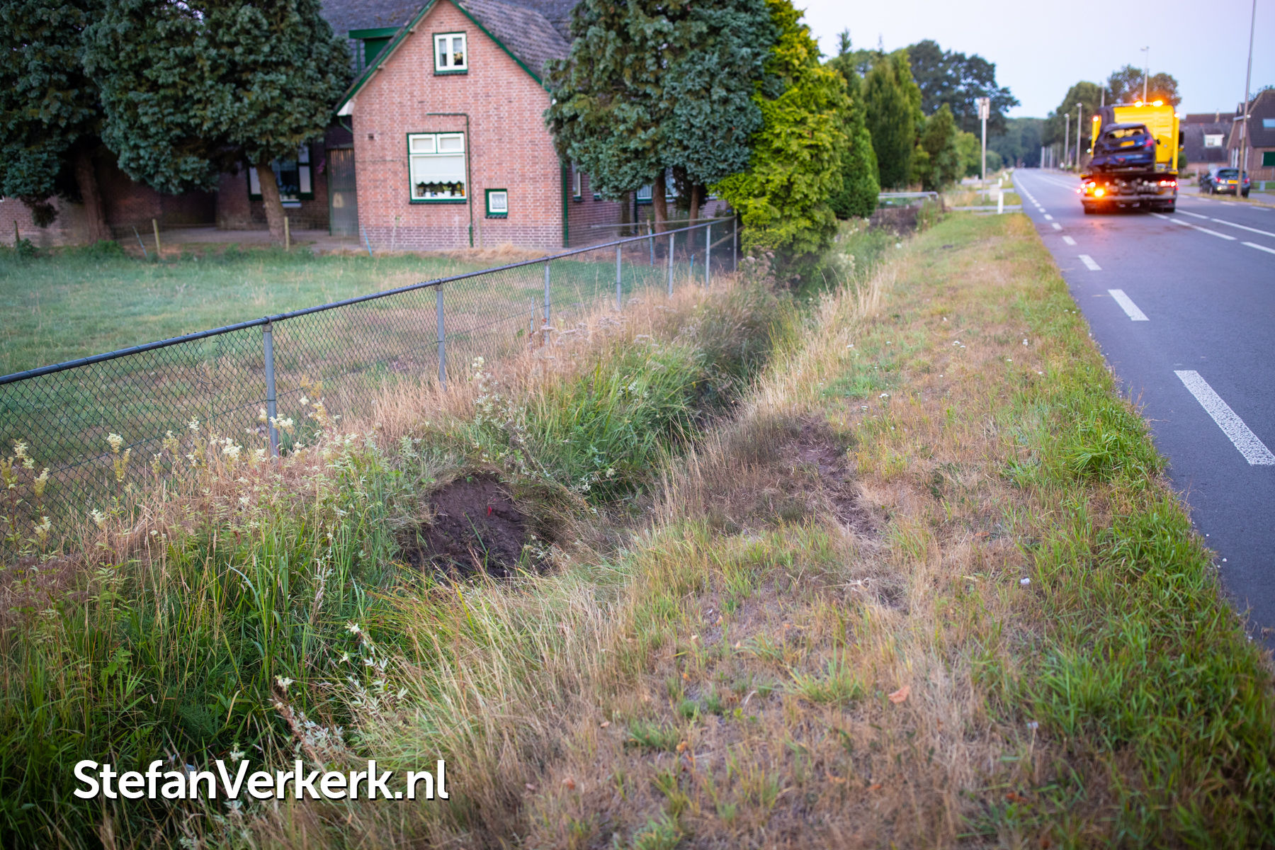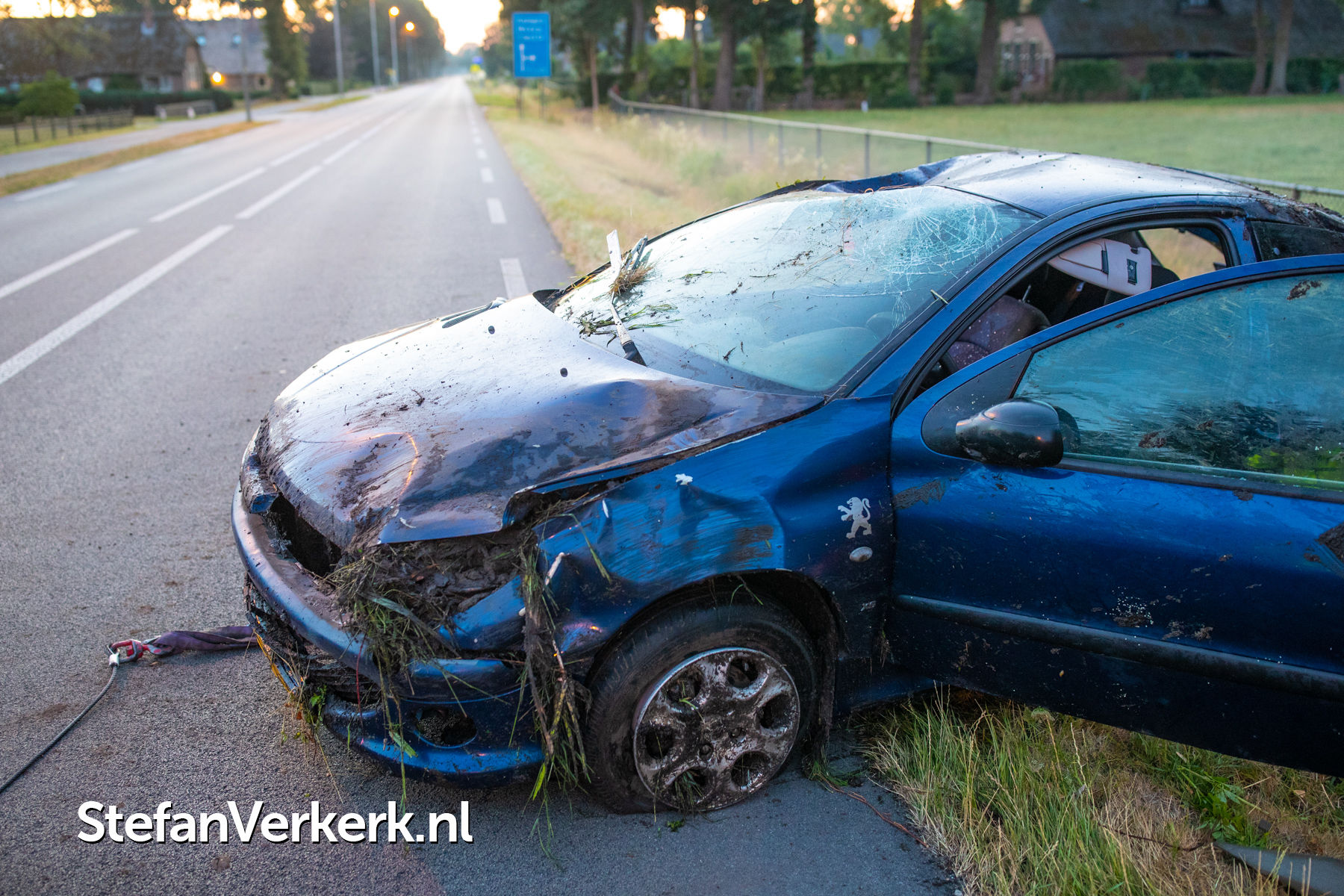 Foto's: Ongeval eenzijdig auto over de kop in de greppel Zuiderzeestraatweg Oldebroek