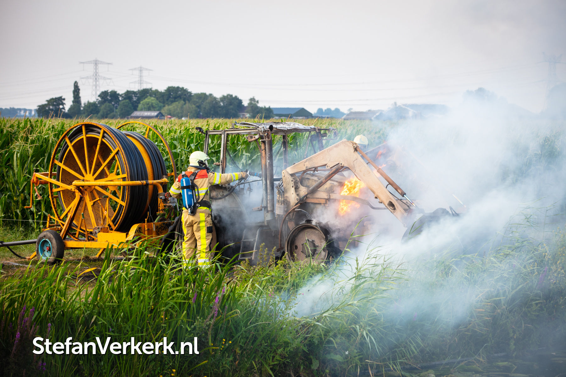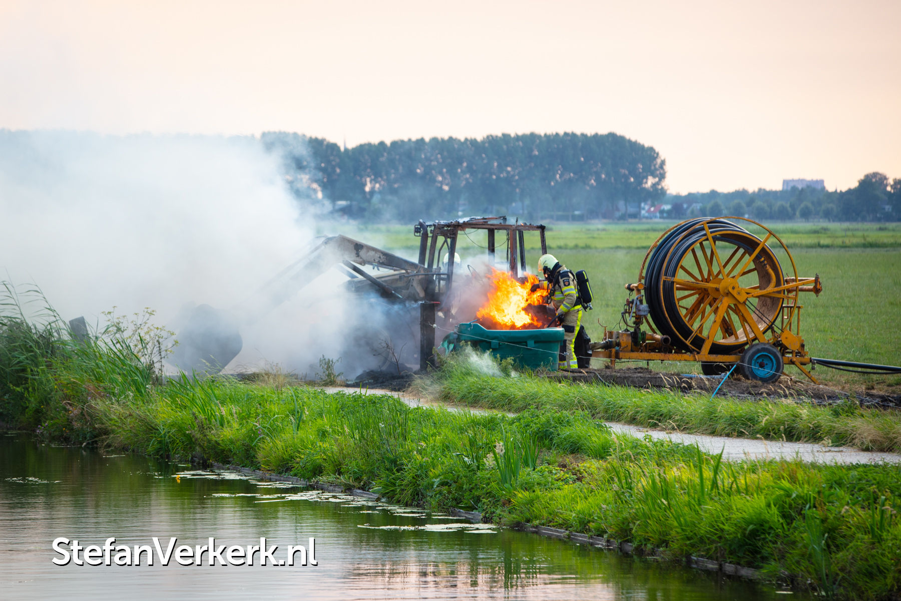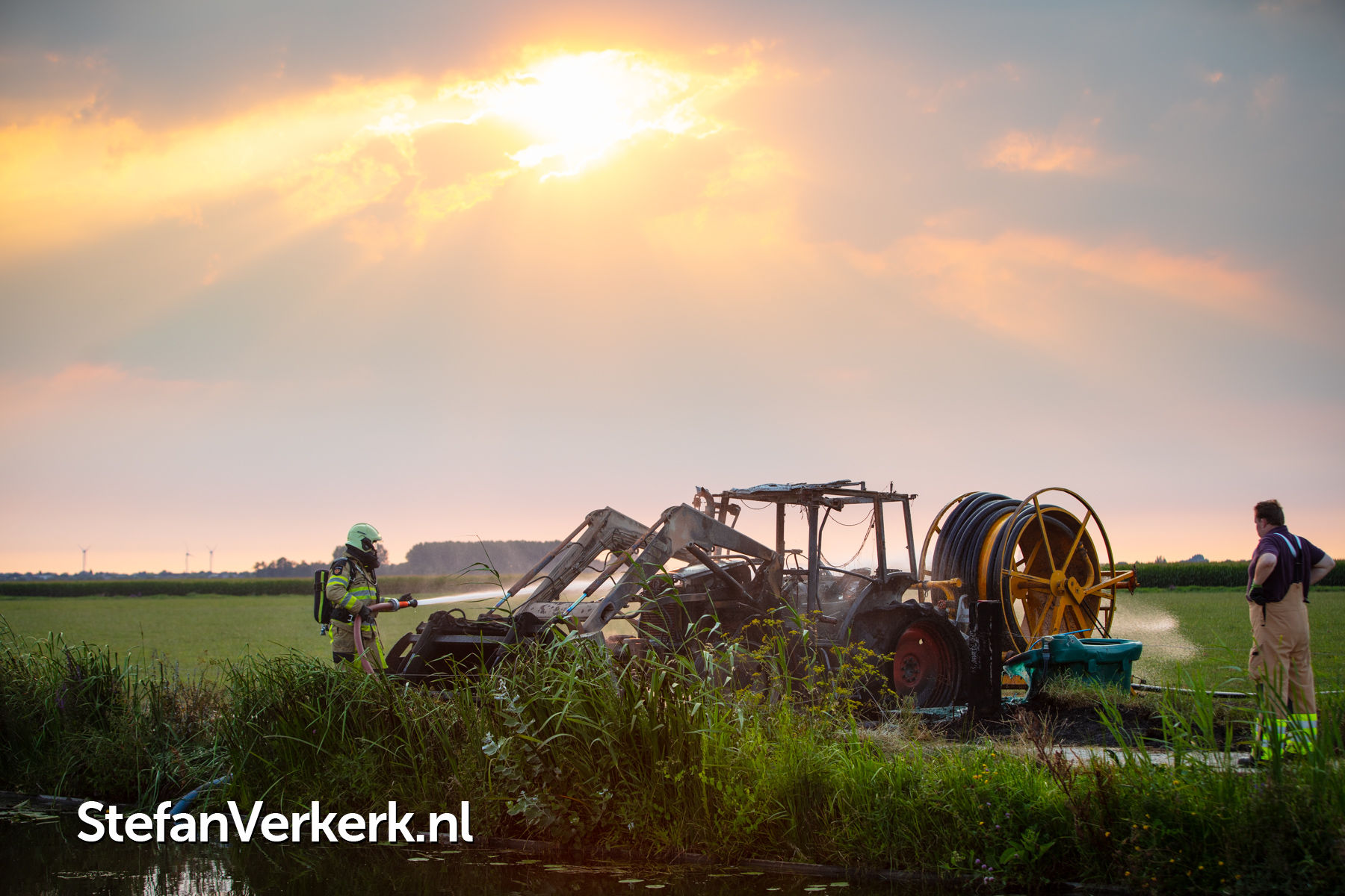 Foto's: Trekker voor beregening uitgebrand Kamper Wetering Mastenbroek