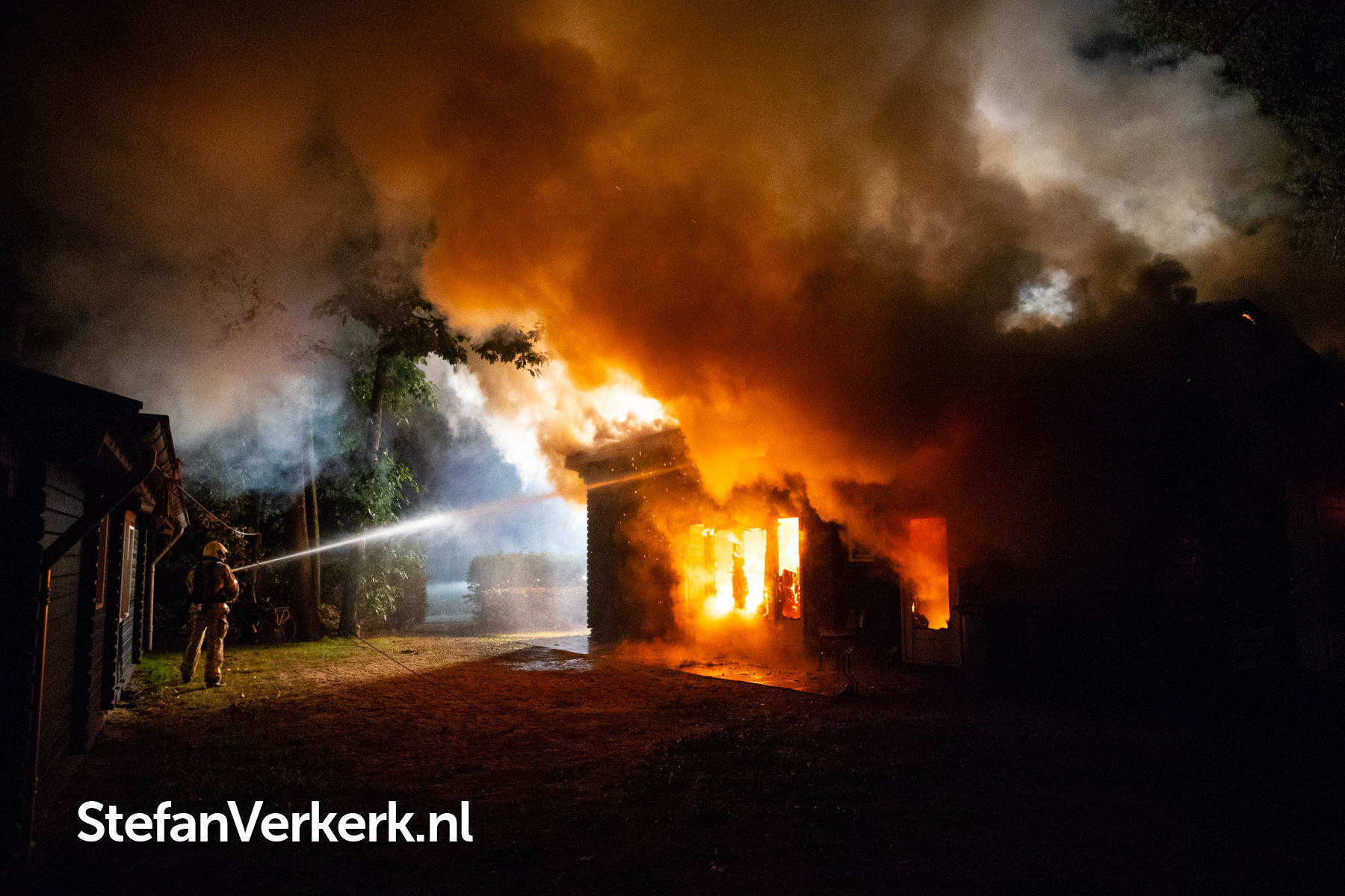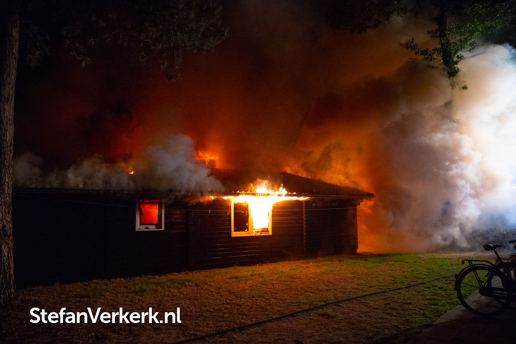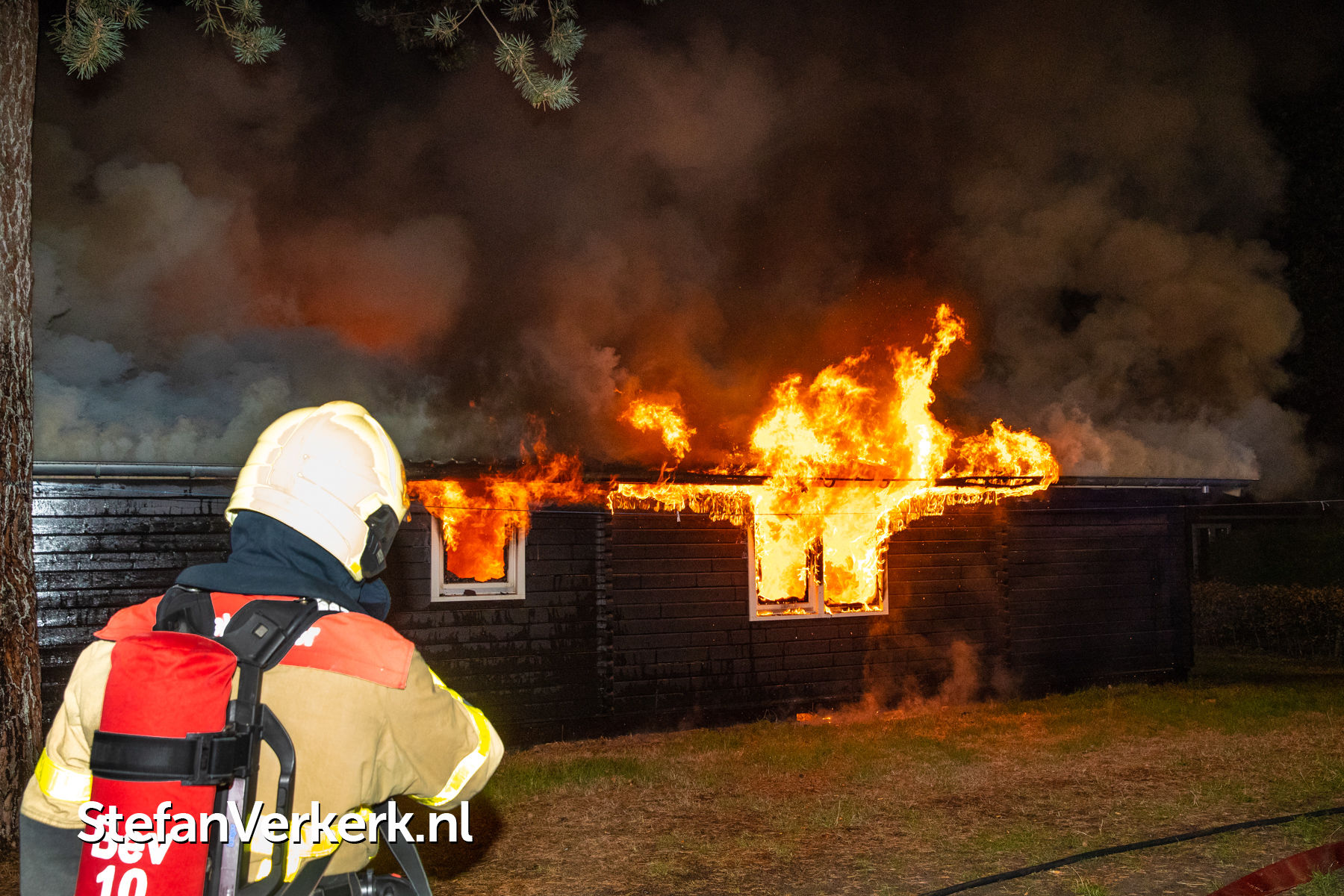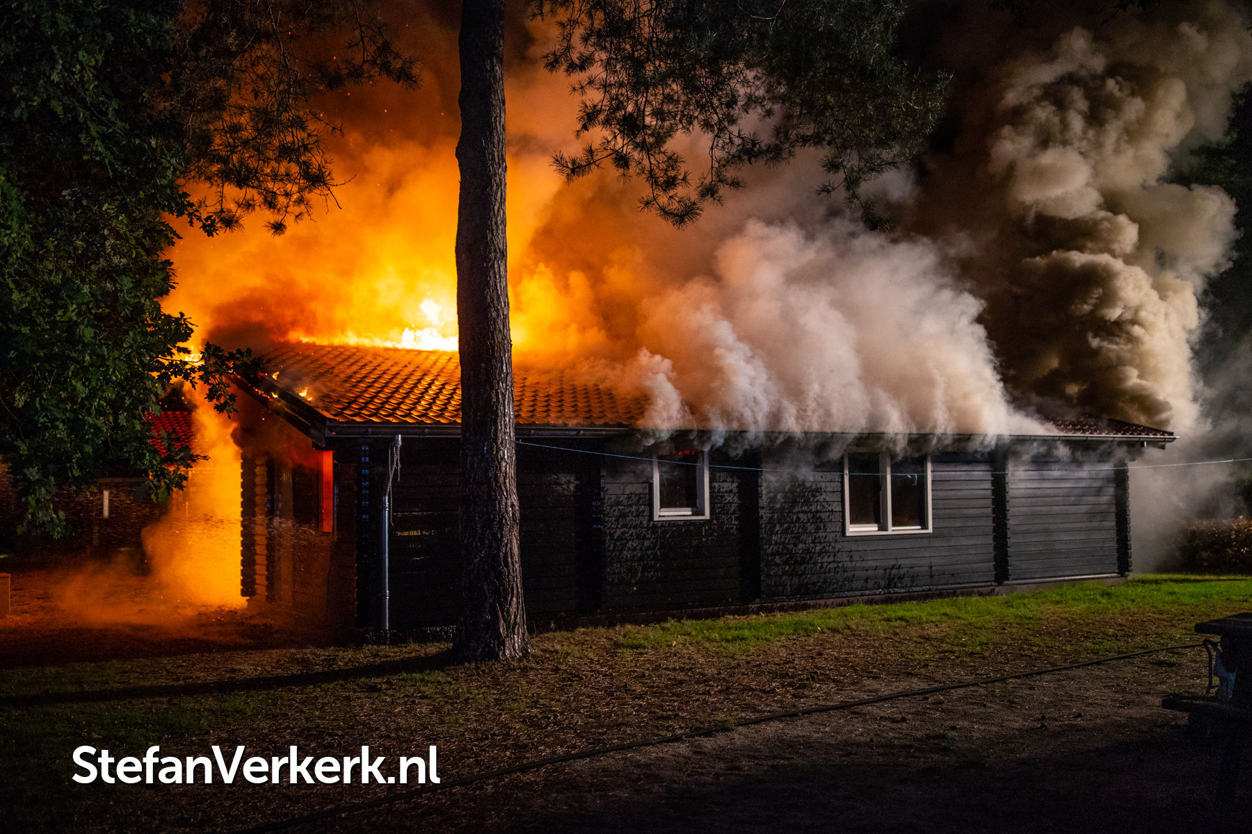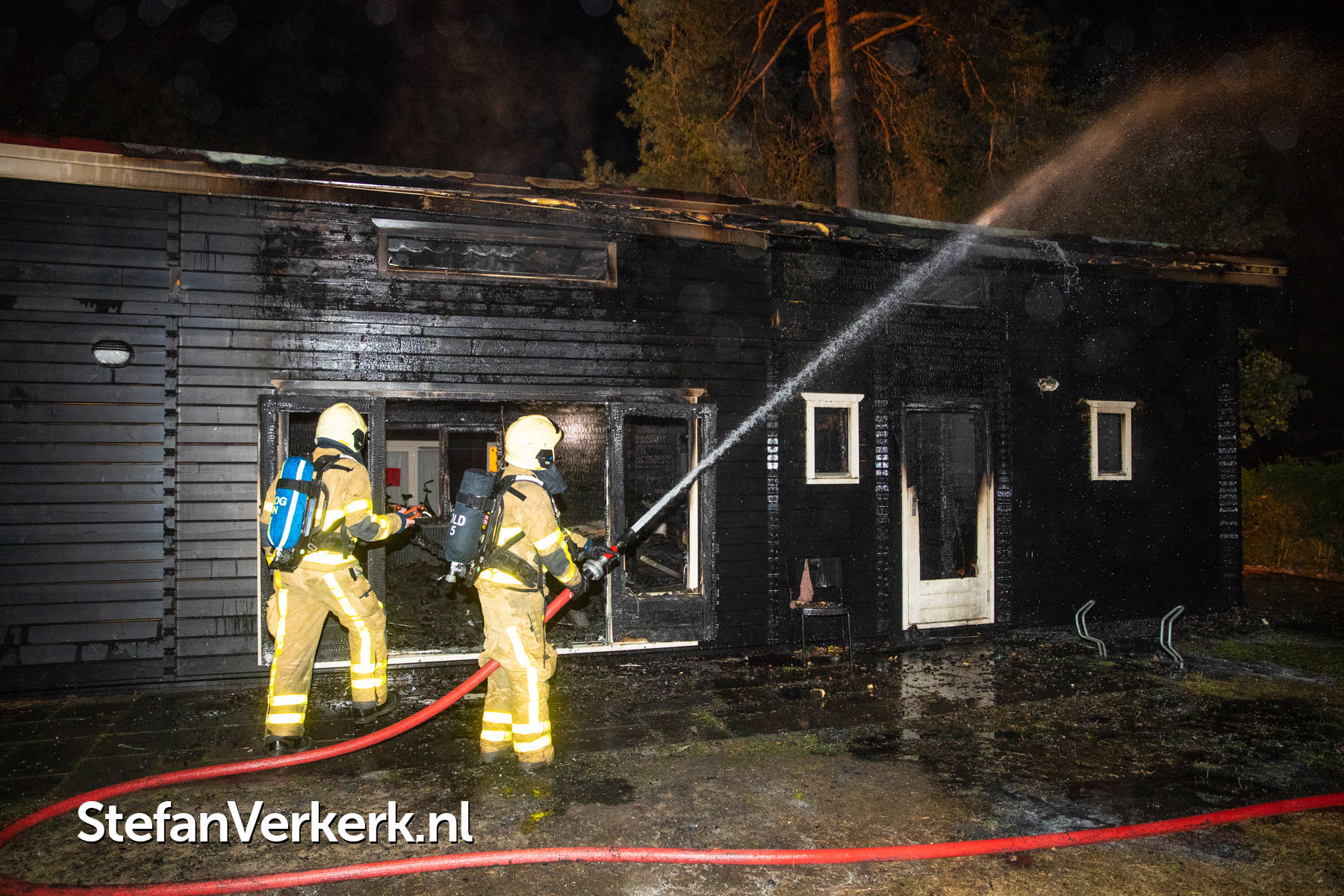 Foto's: Woningbrand houten chalet Heidehoeksweg Wezep