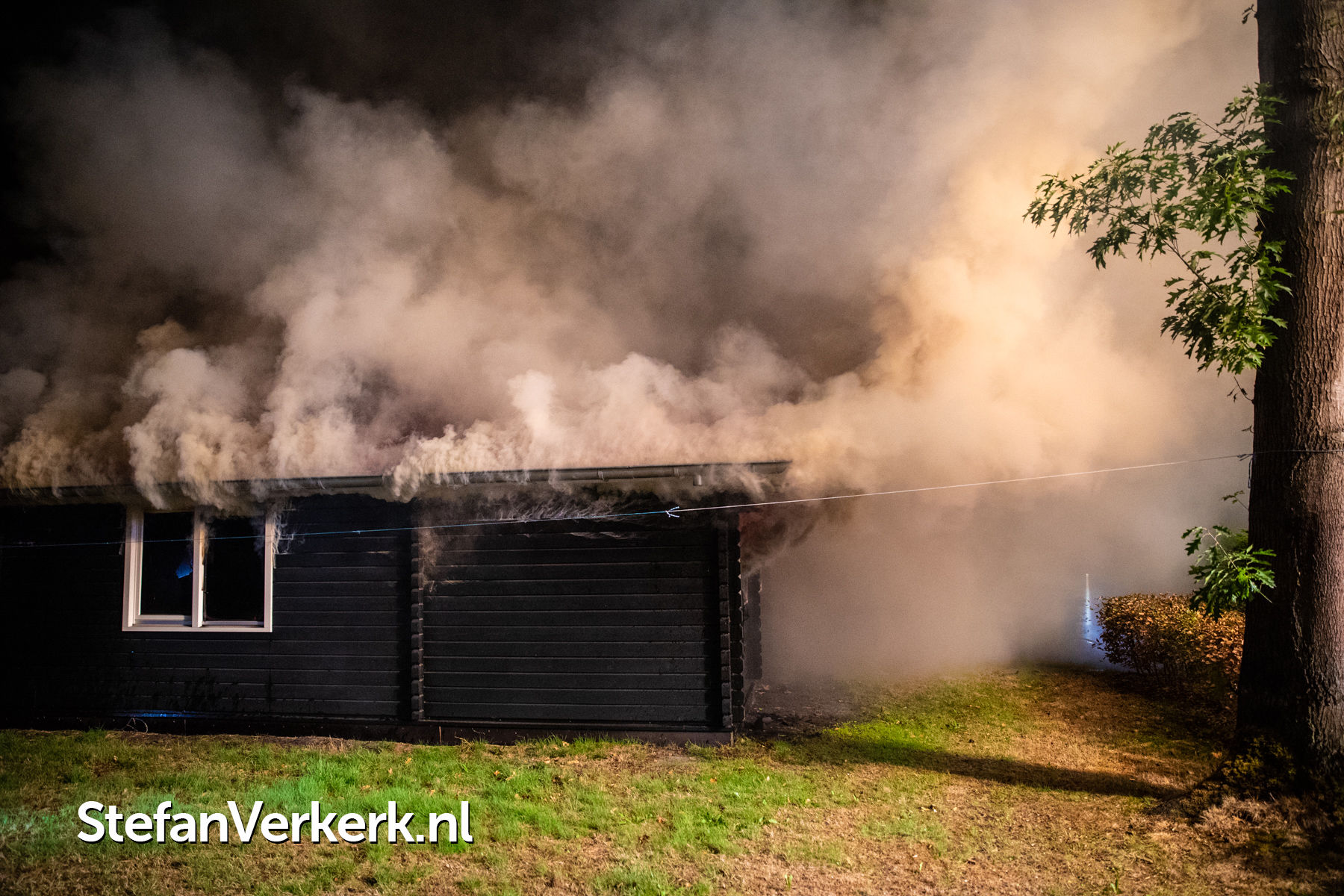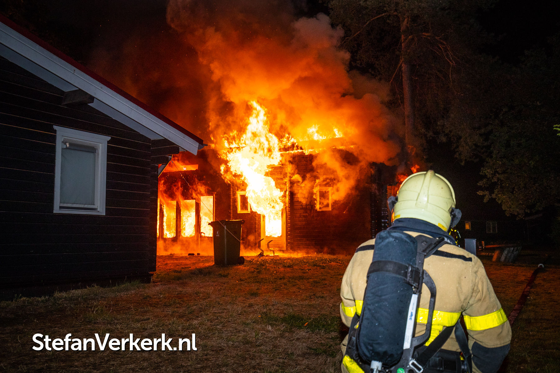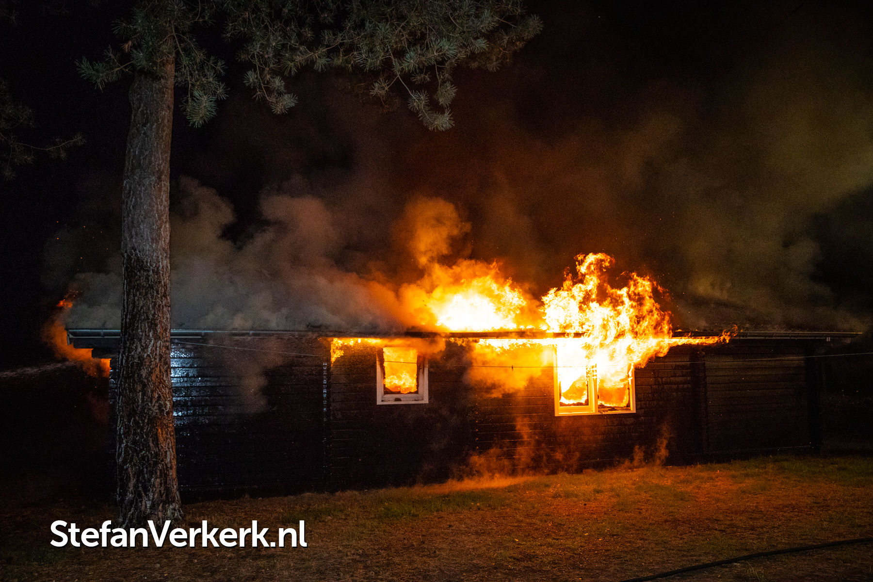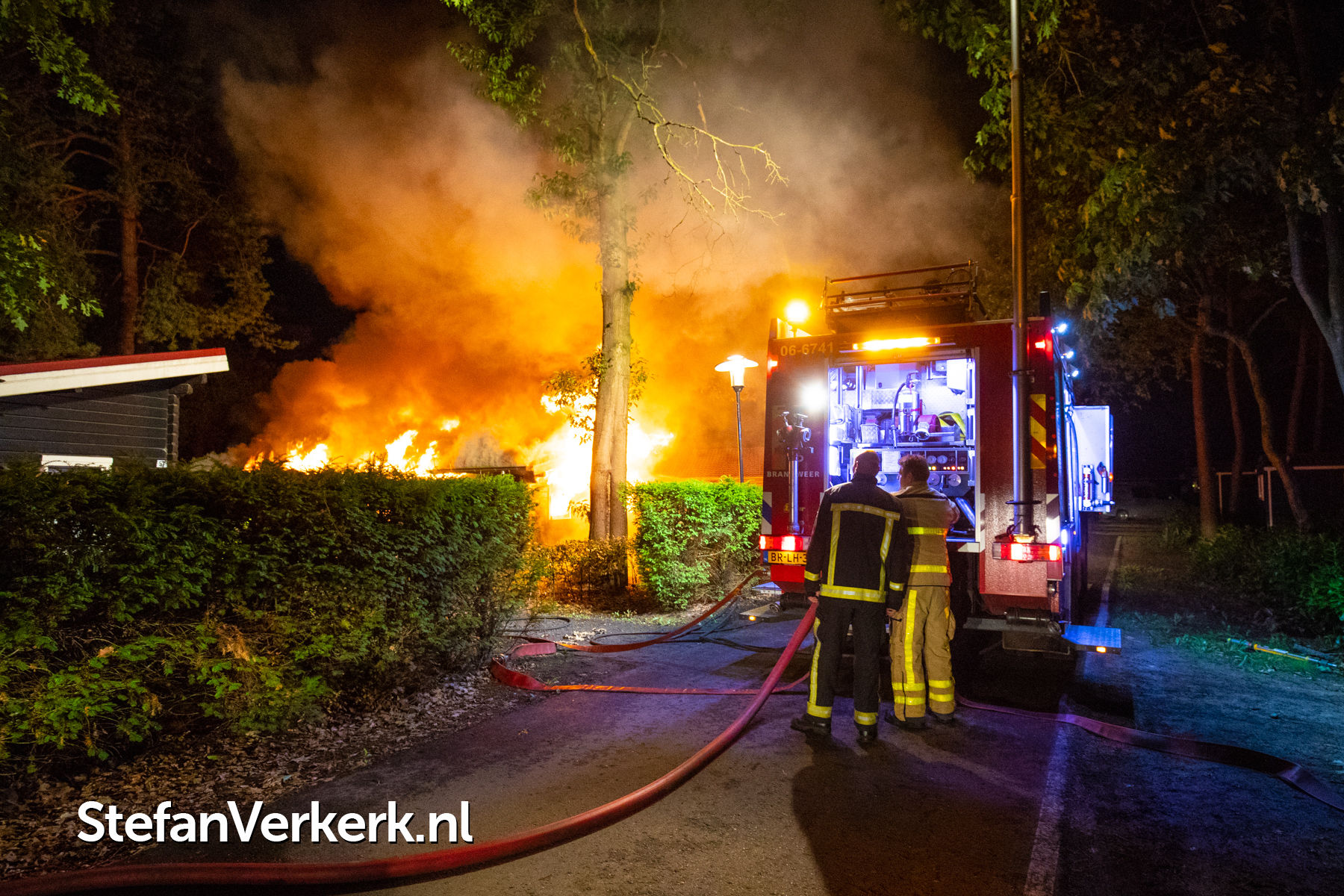 Foto's: Woningbrand houten chalet Heidehoeksweg Wezep