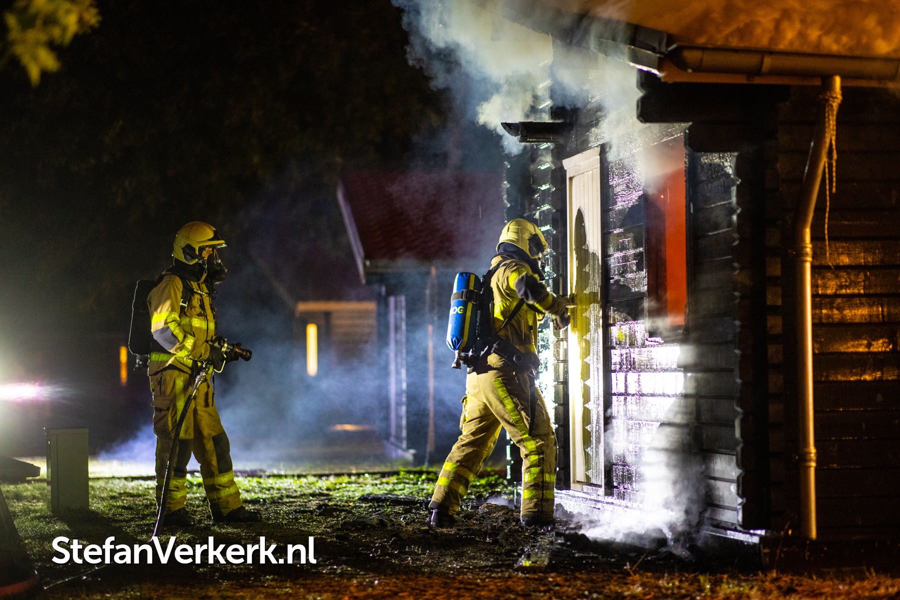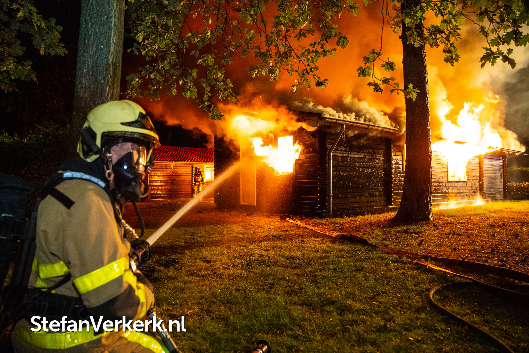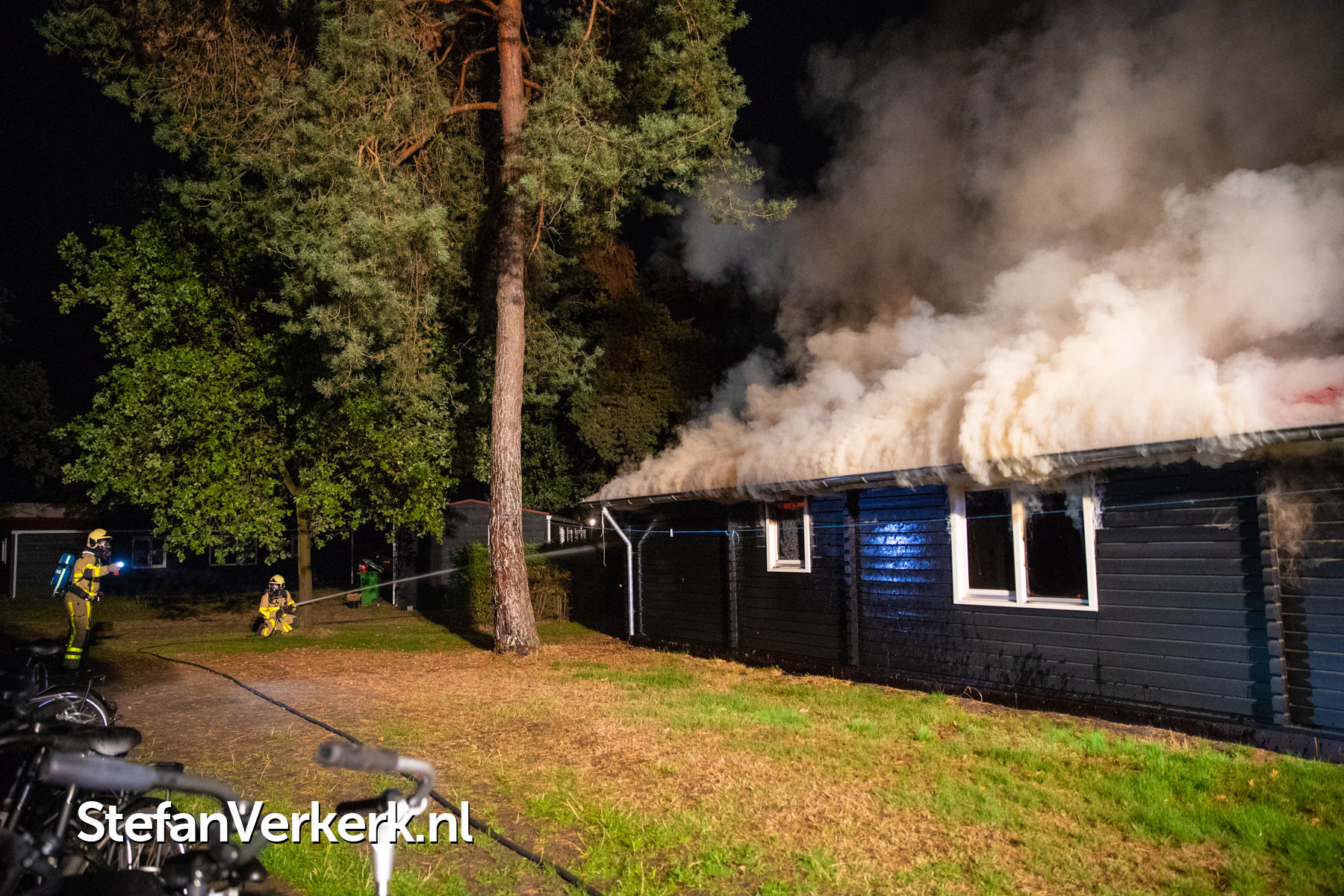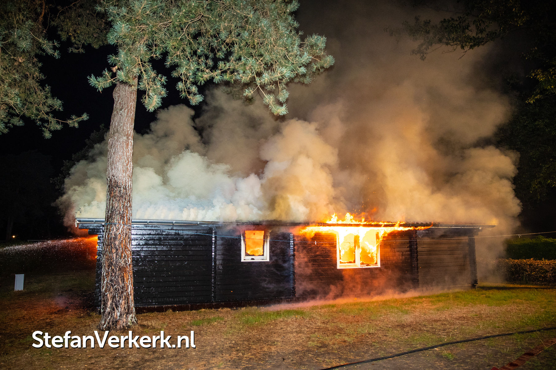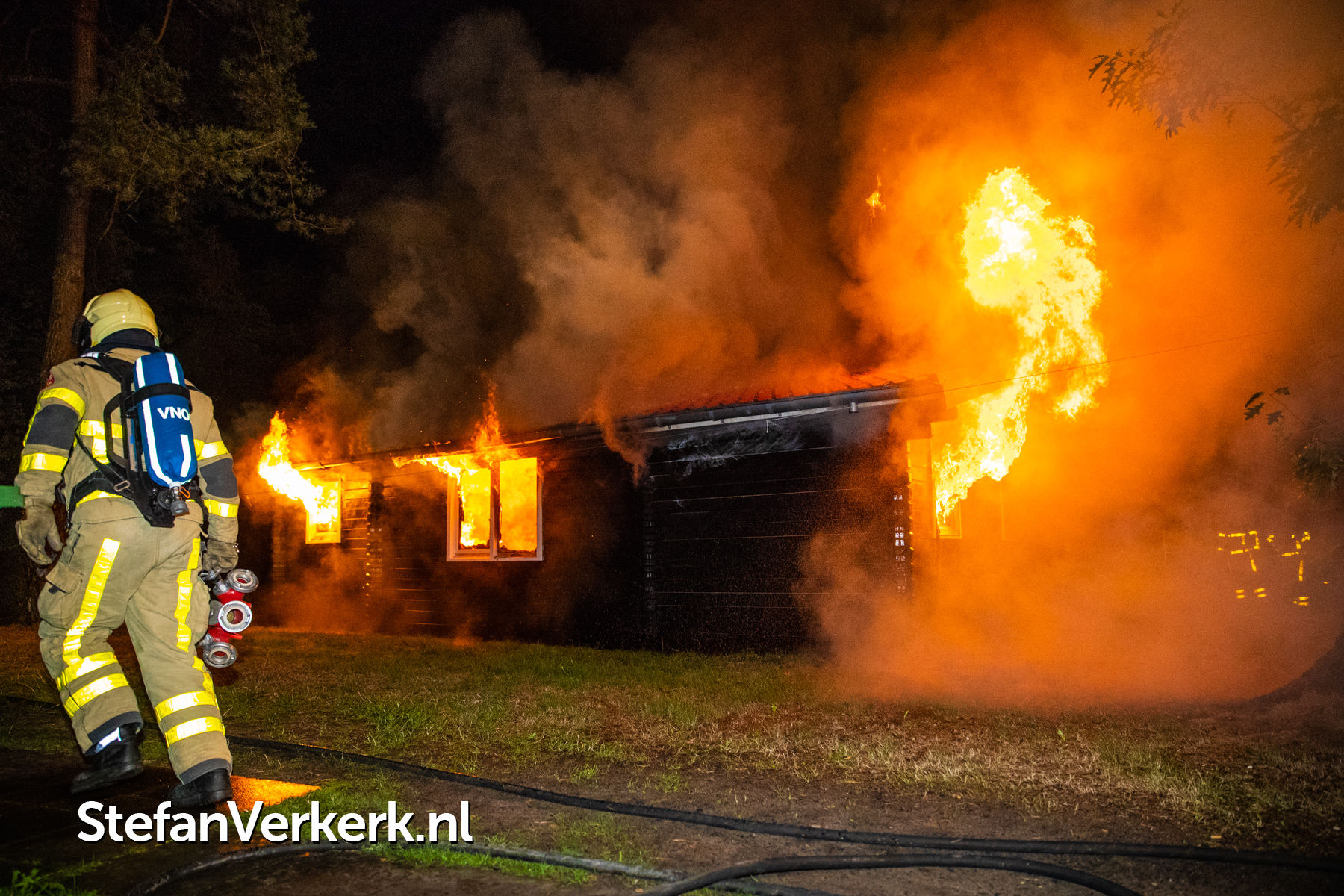Foto's: Woningbrand houten chalet Heidehoeksweg Wezep