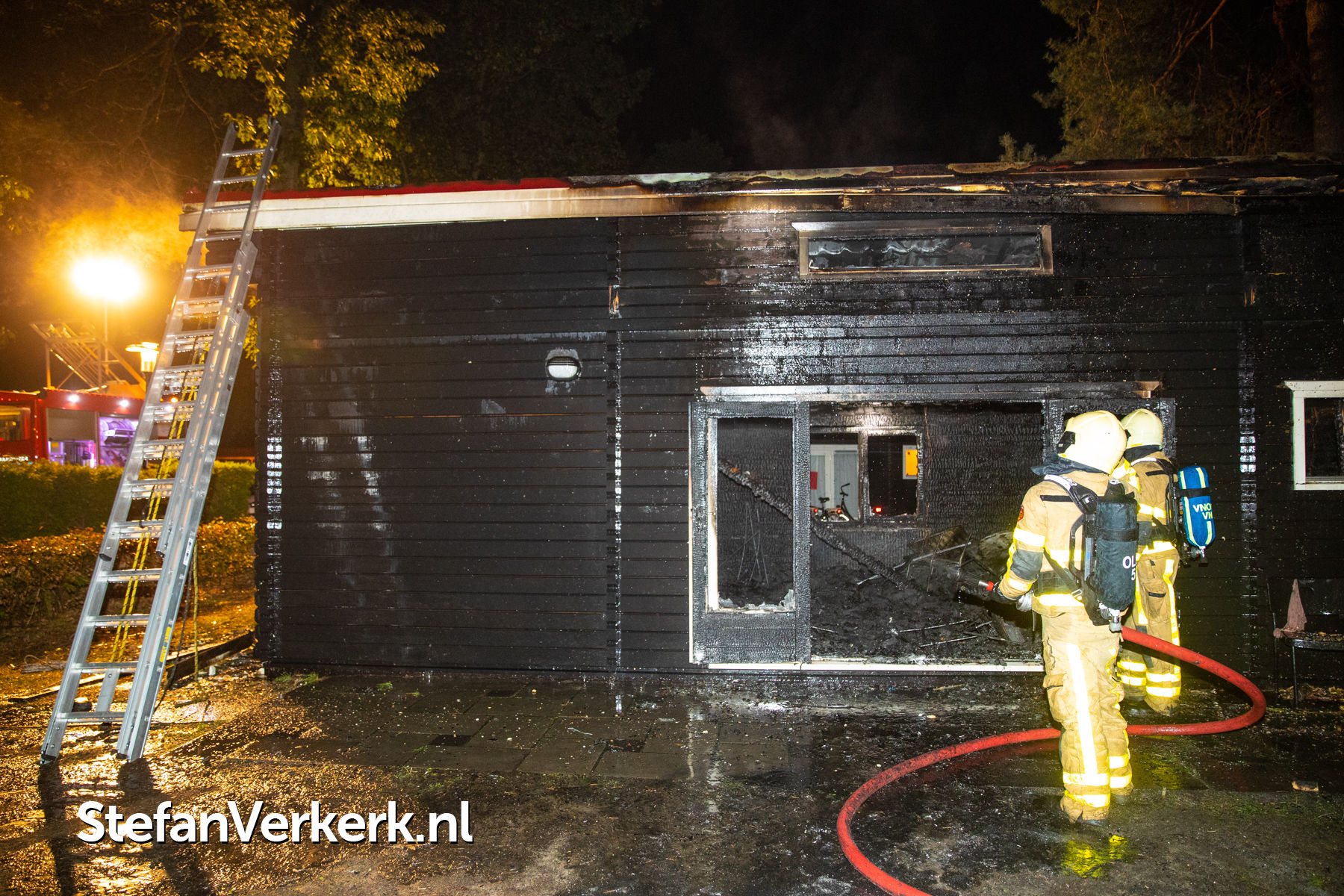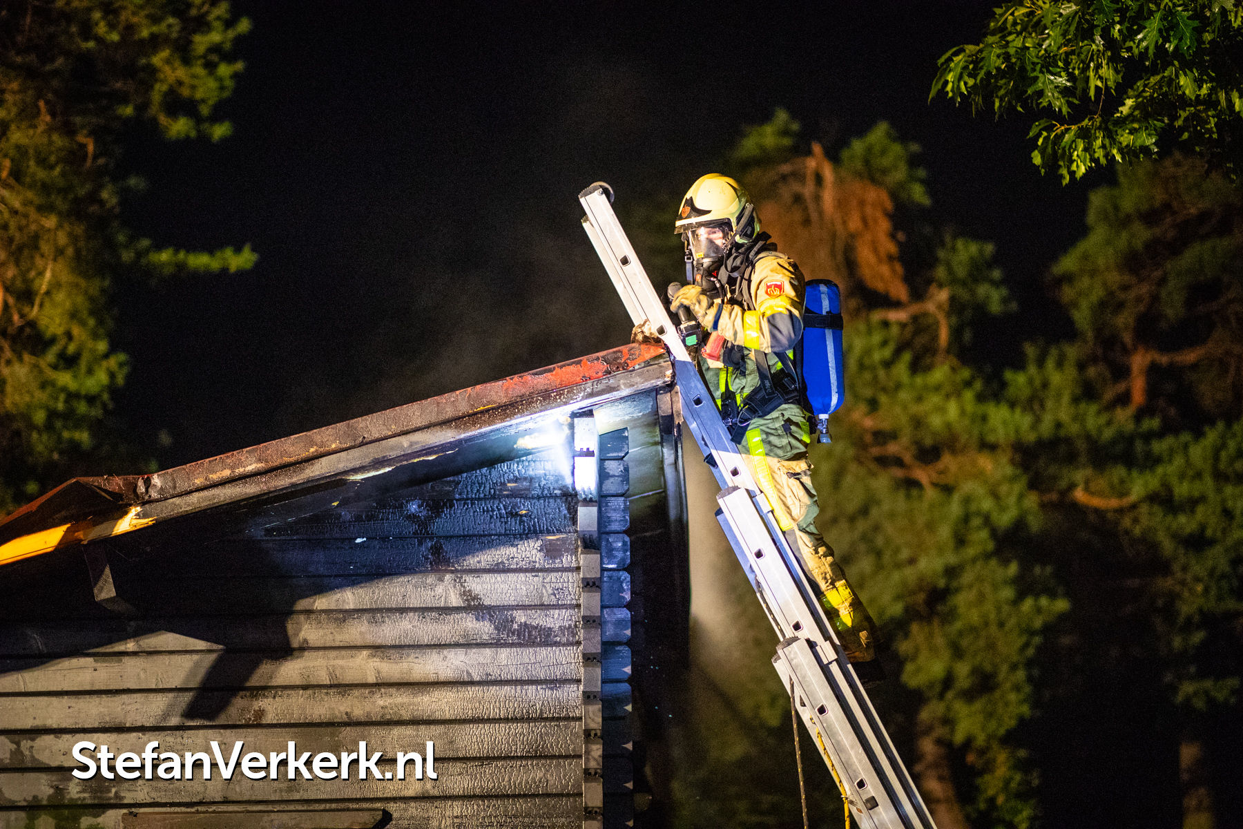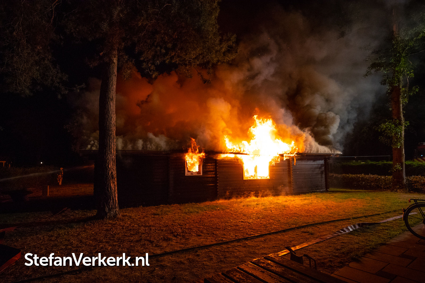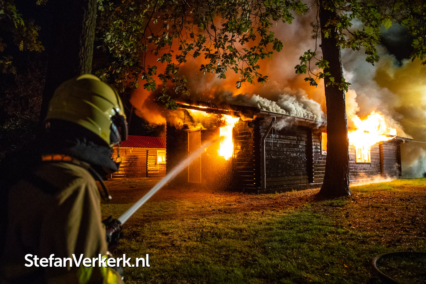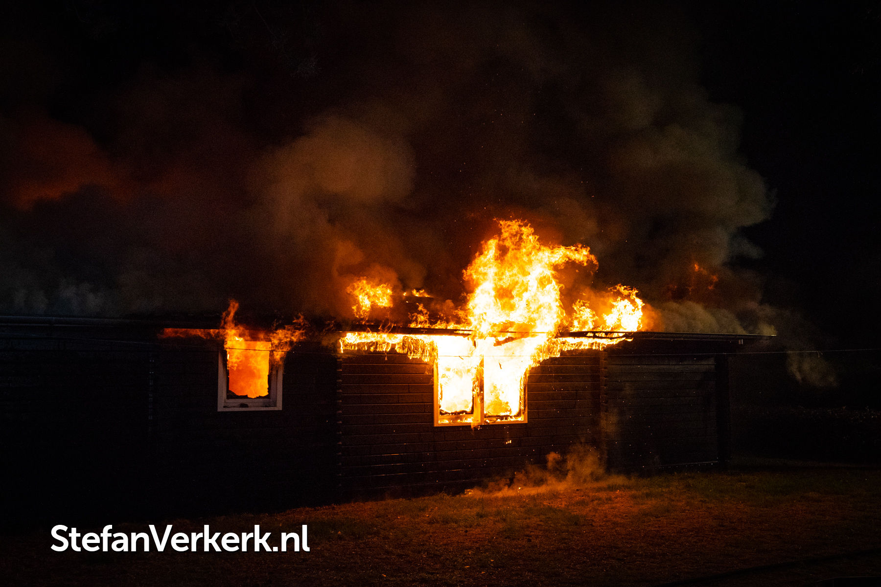 Foto's: Woningbrand houten chalet Heidehoeksweg Wezep