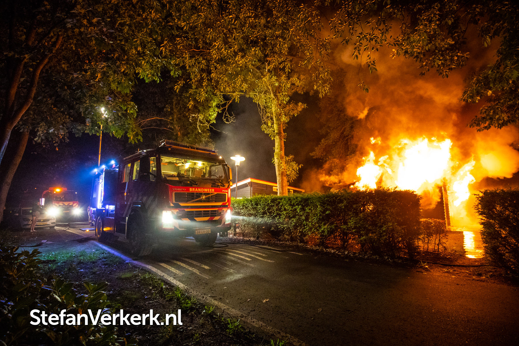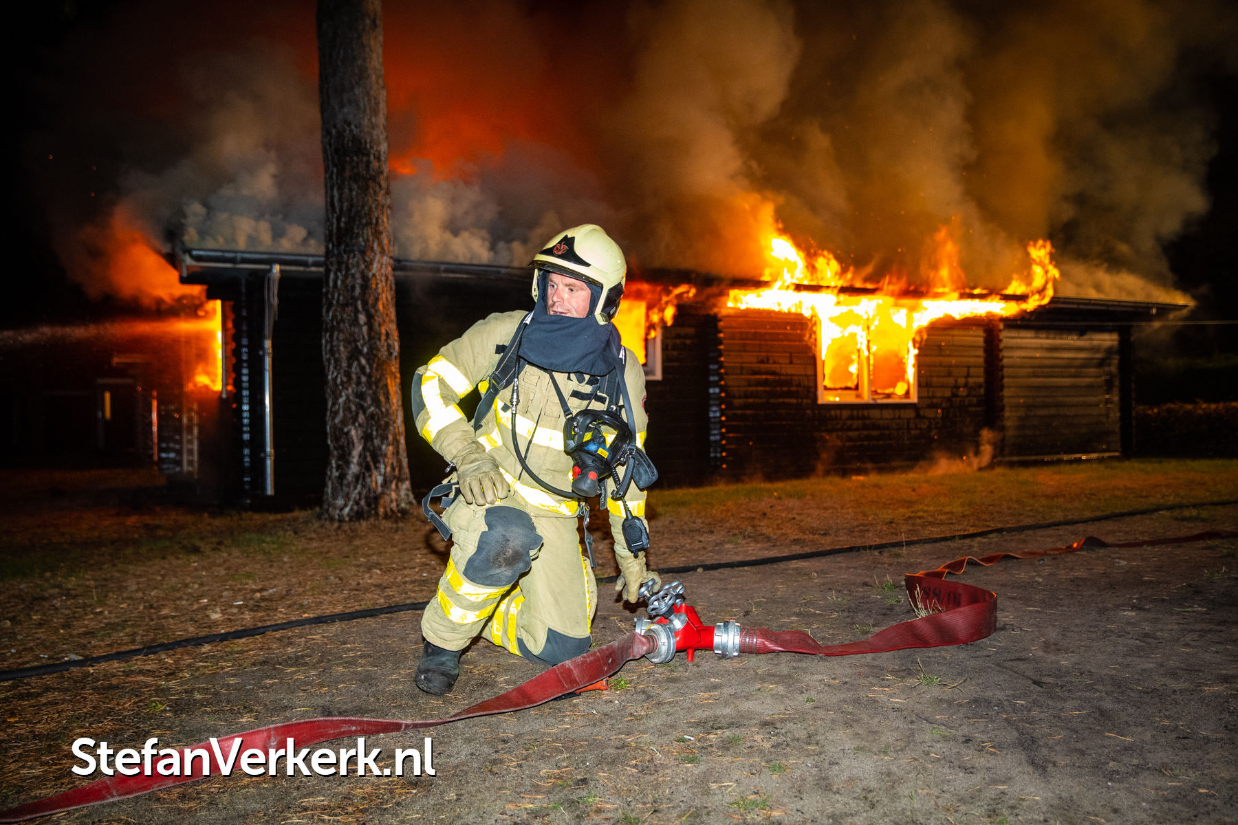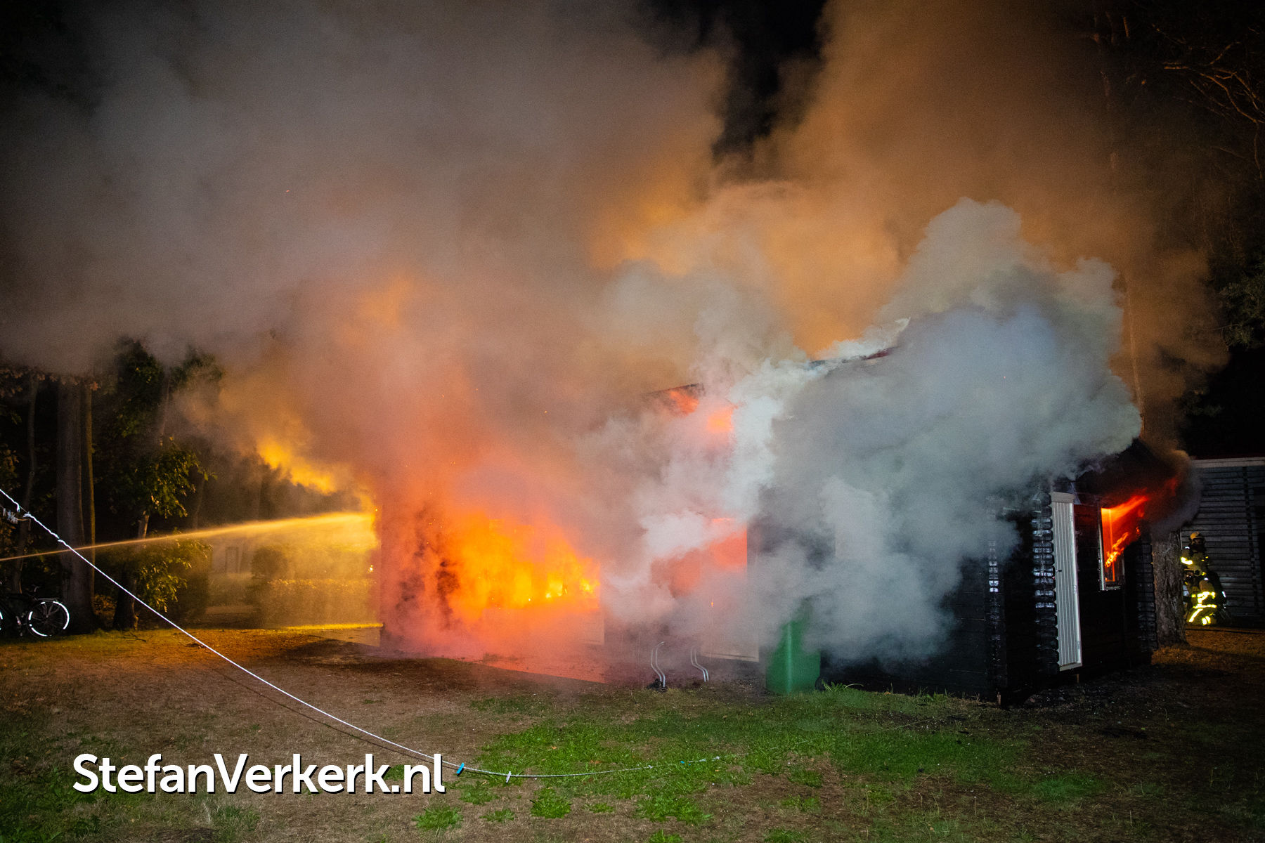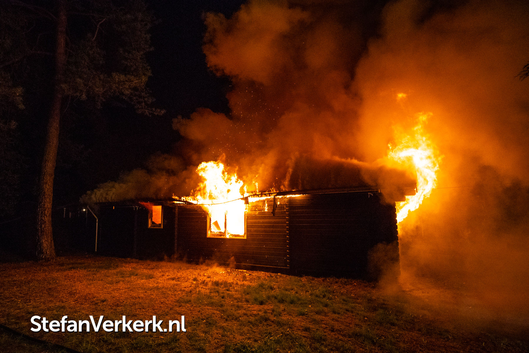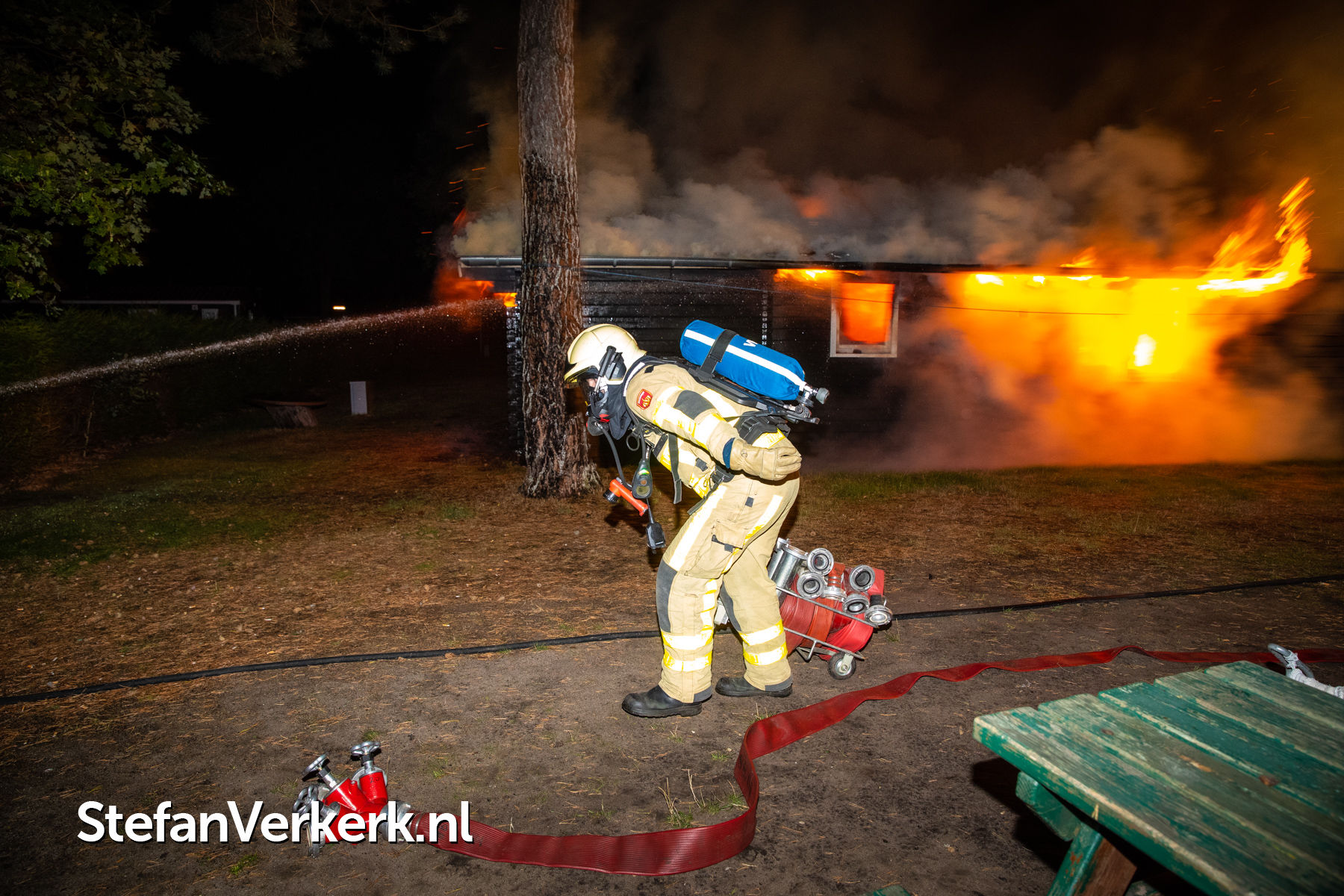 Foto's: Woningbrand houten chalet Heidehoeksweg Wezep