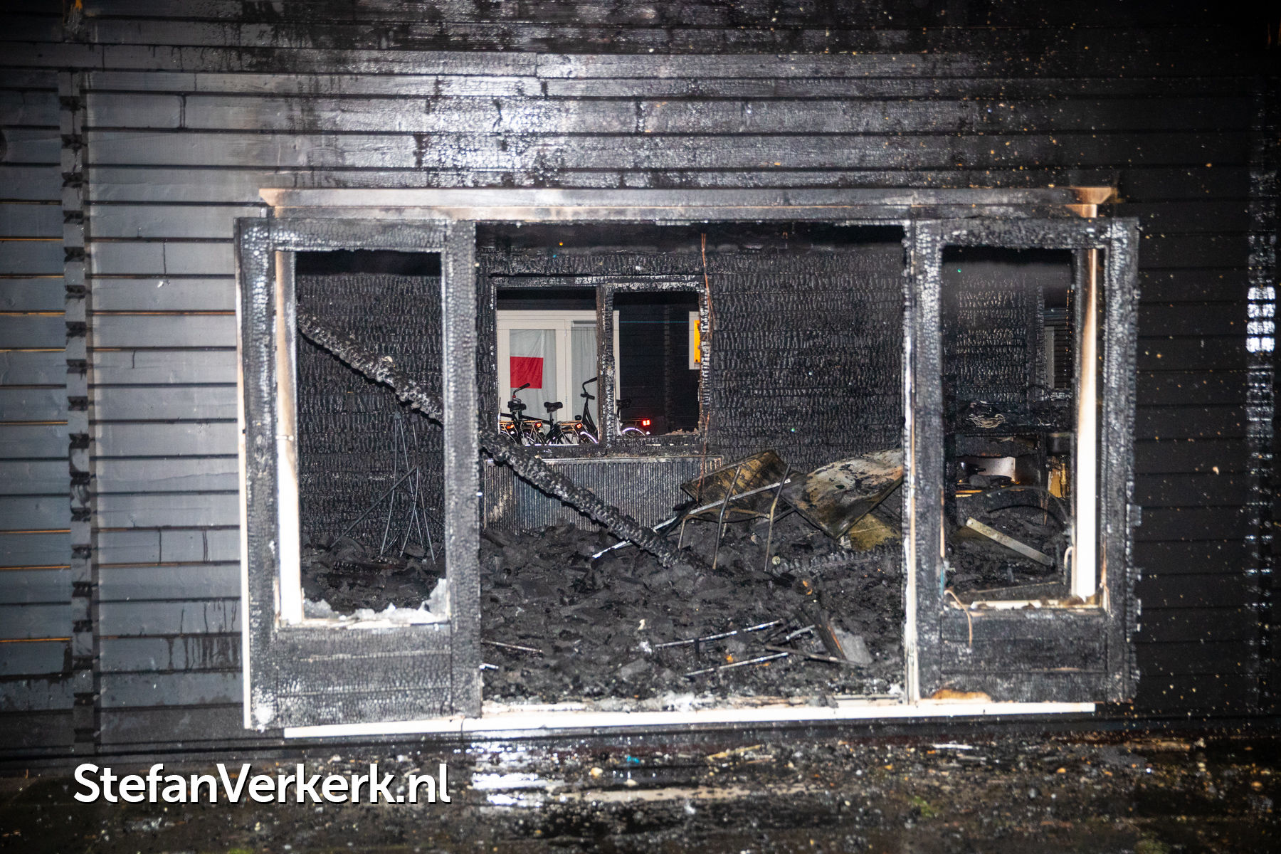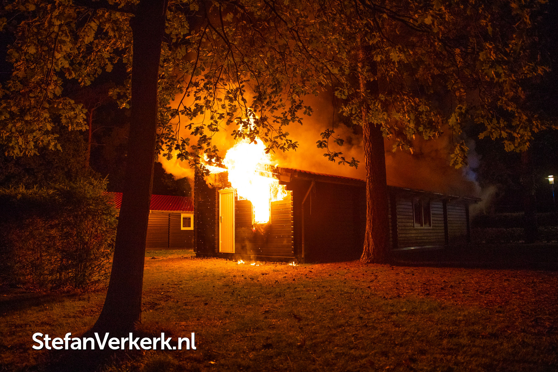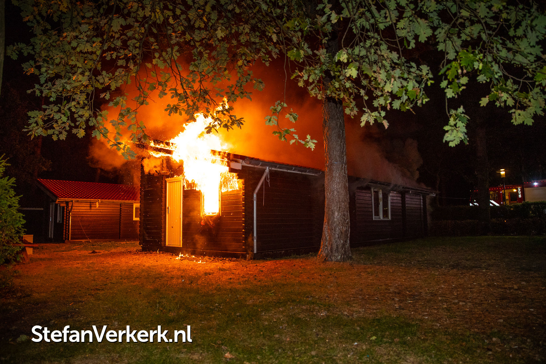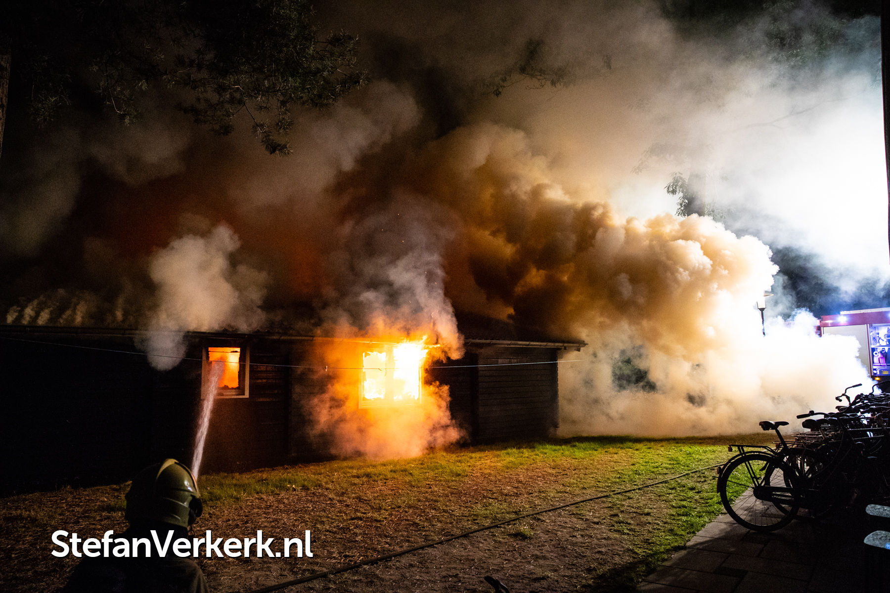 Foto's: Woningbrand houten chalet Heidehoeksweg Wezep
