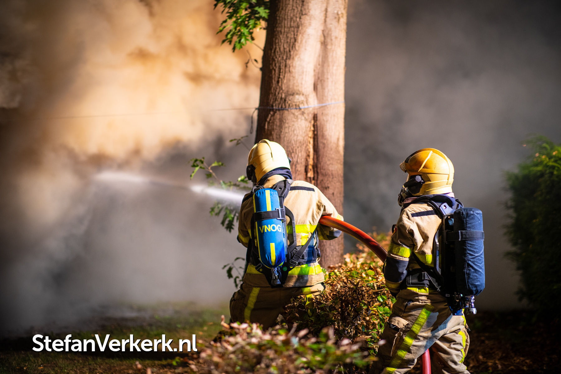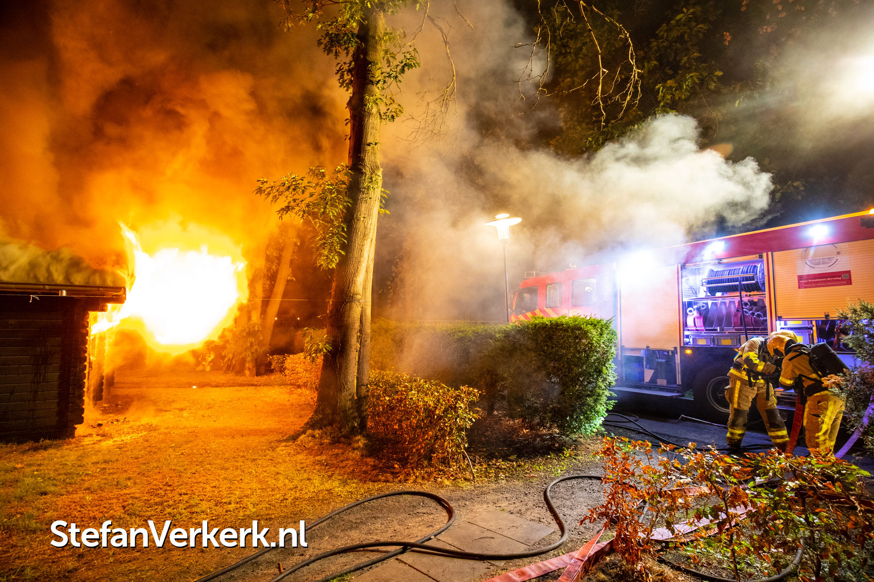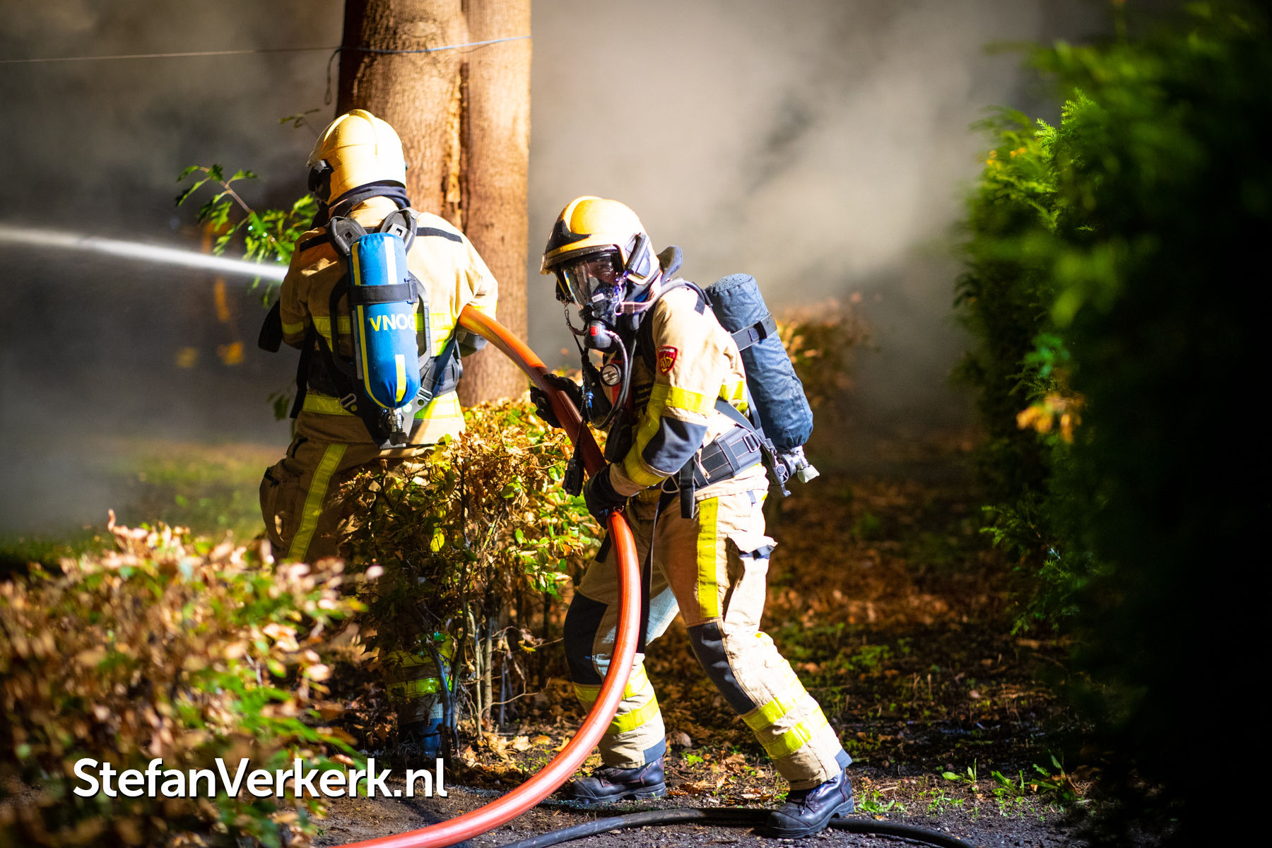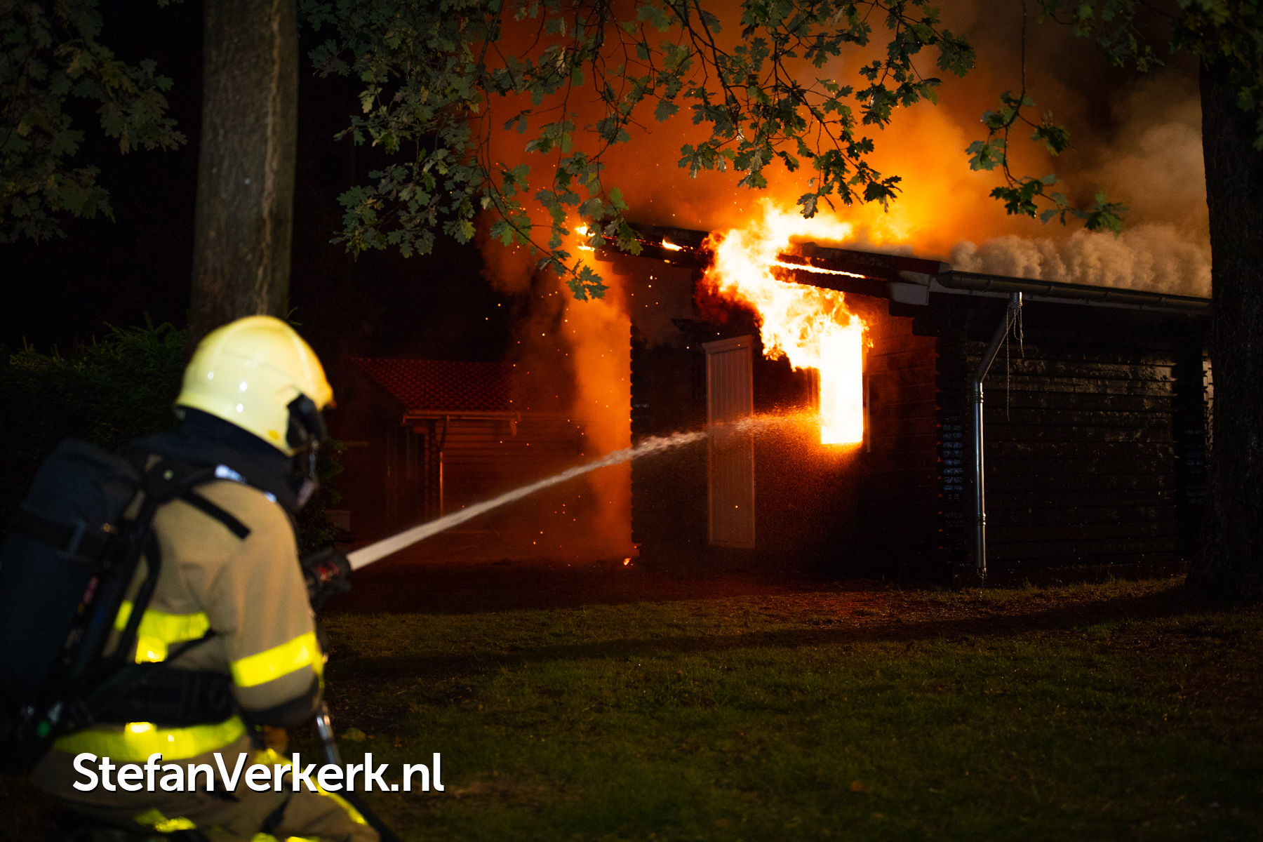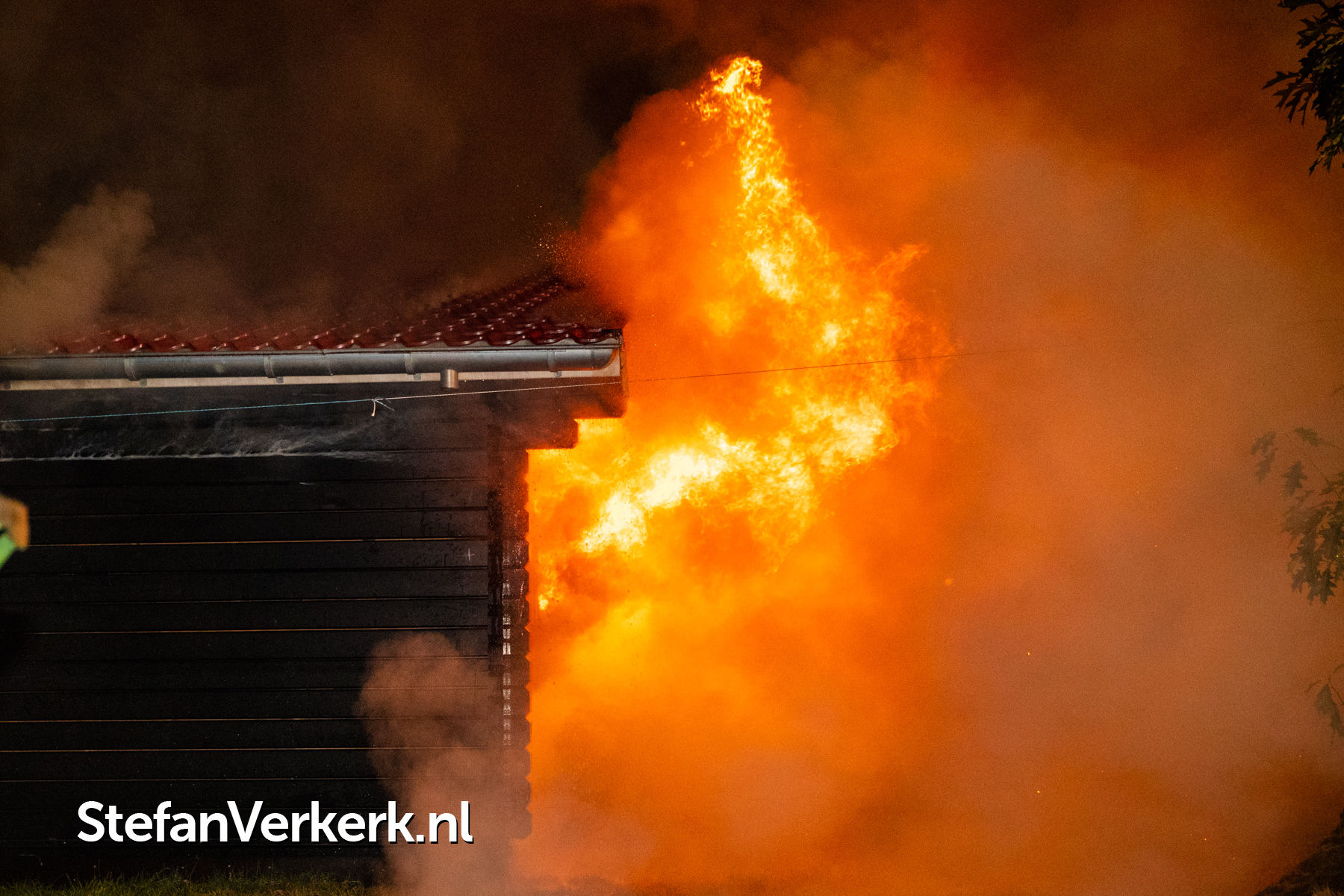 Foto's: Woningbrand houten chalet Heidehoeksweg Wezep
