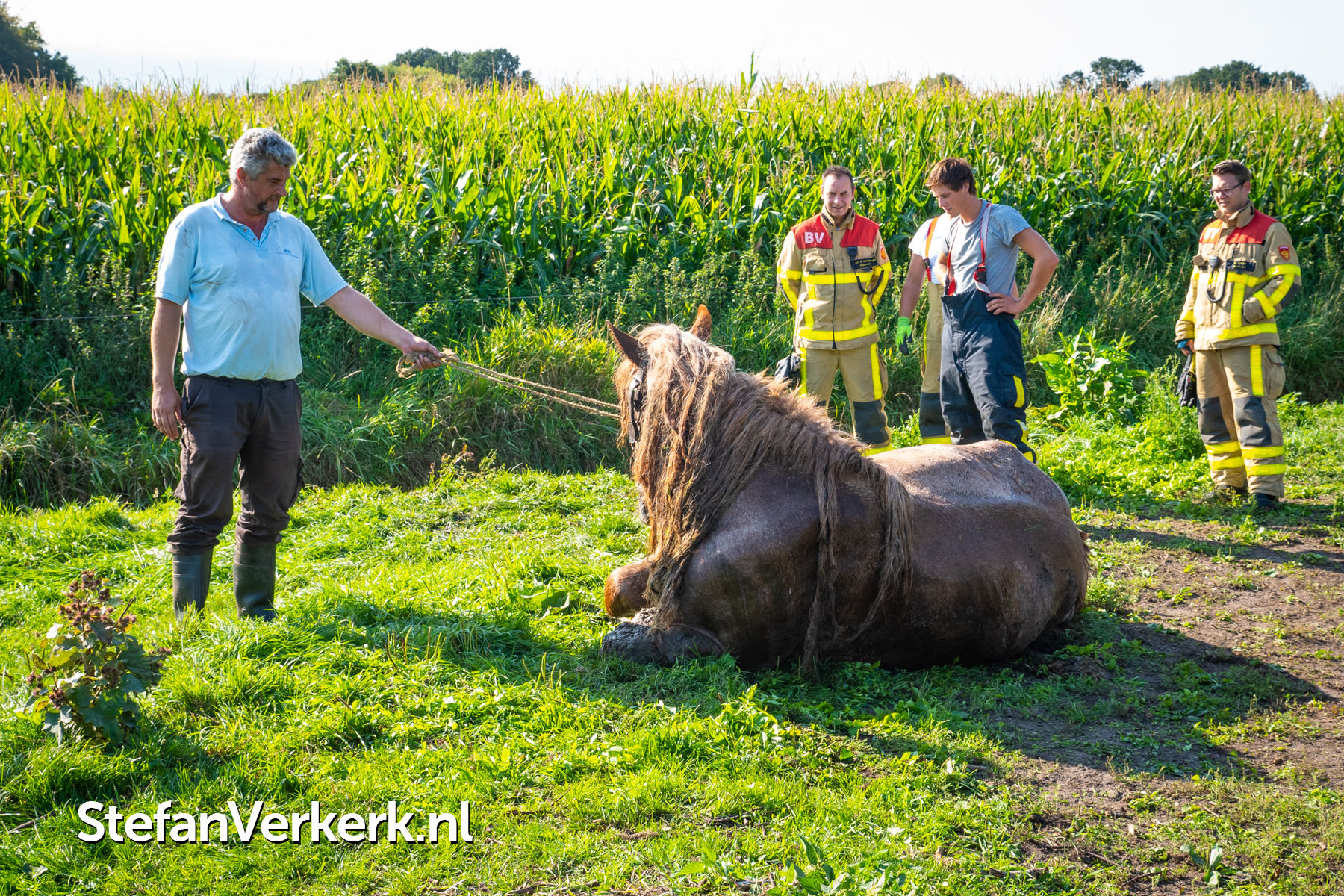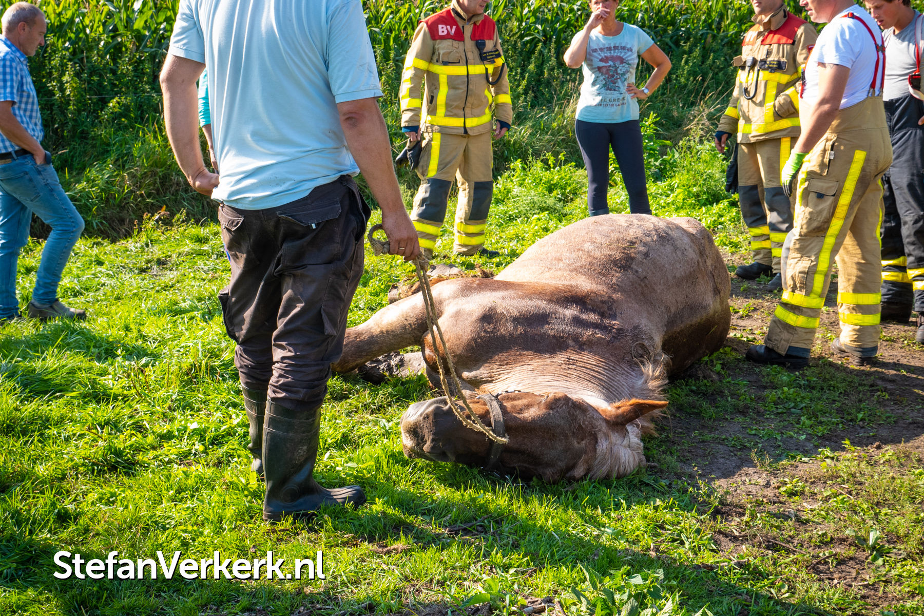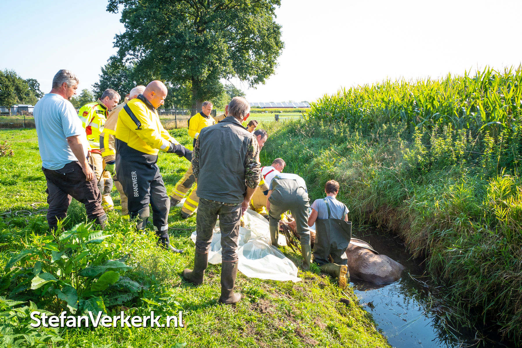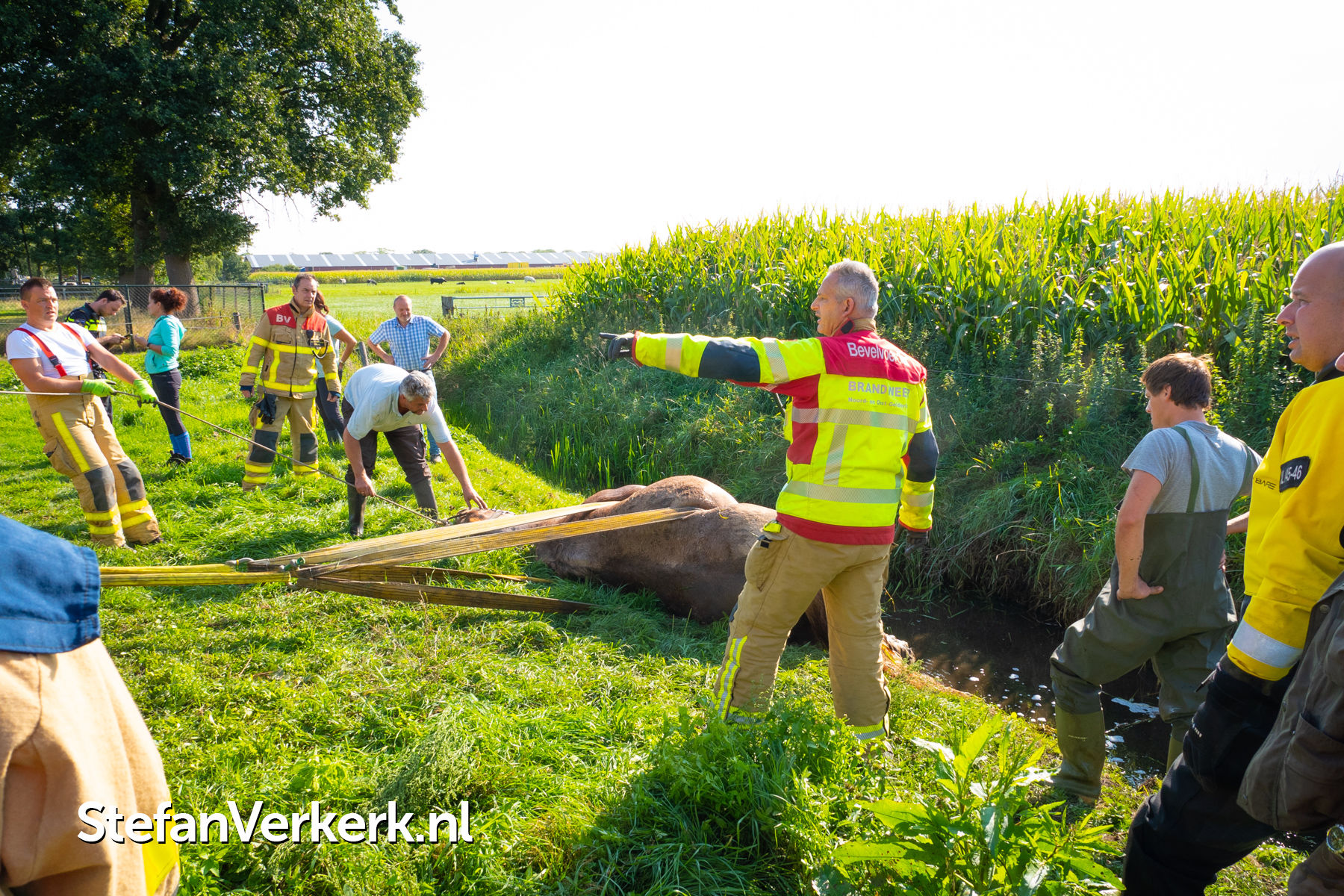 Foto's: Reddingsactie voor paard te water Zuiderzeestraatweg Oldebroek