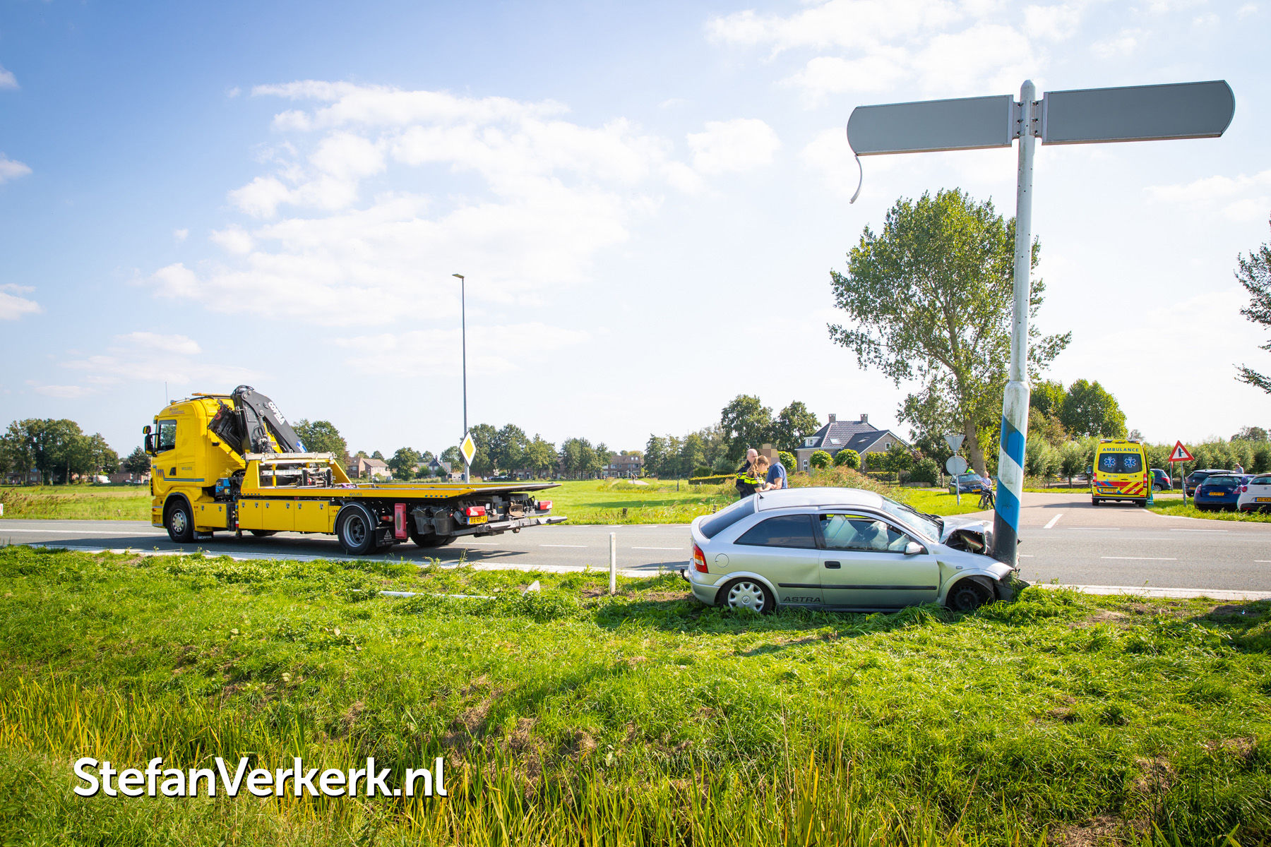 Foto's: Ongeval letsel auto tegen wegwijzer Oostelijke Rondweg Elburg