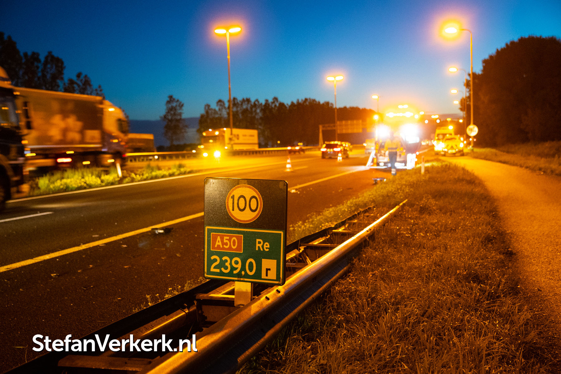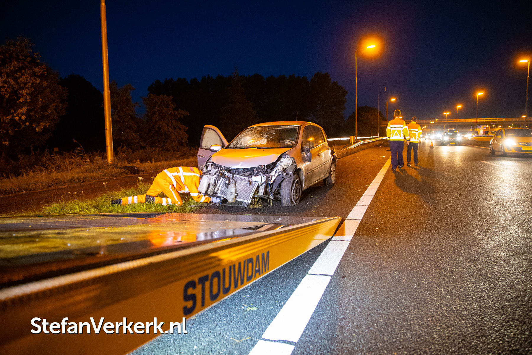 Foto's: Ongeval letsel auto tegen vangrail A50 R 238,9 r knooppunt Hattemerbroek