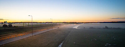 Zonsopkomst bij de IJssel bij Kampen en polder parkeerplaats N50 Zalkerbroek