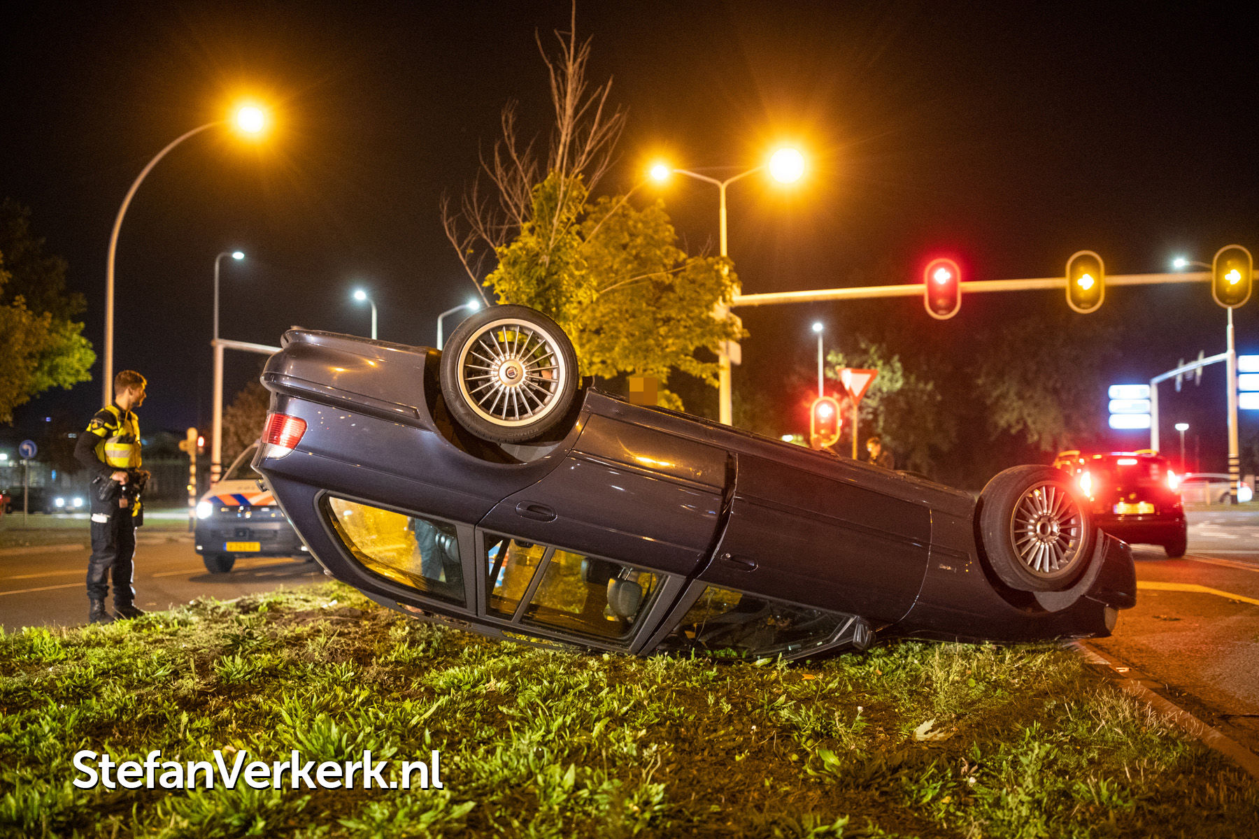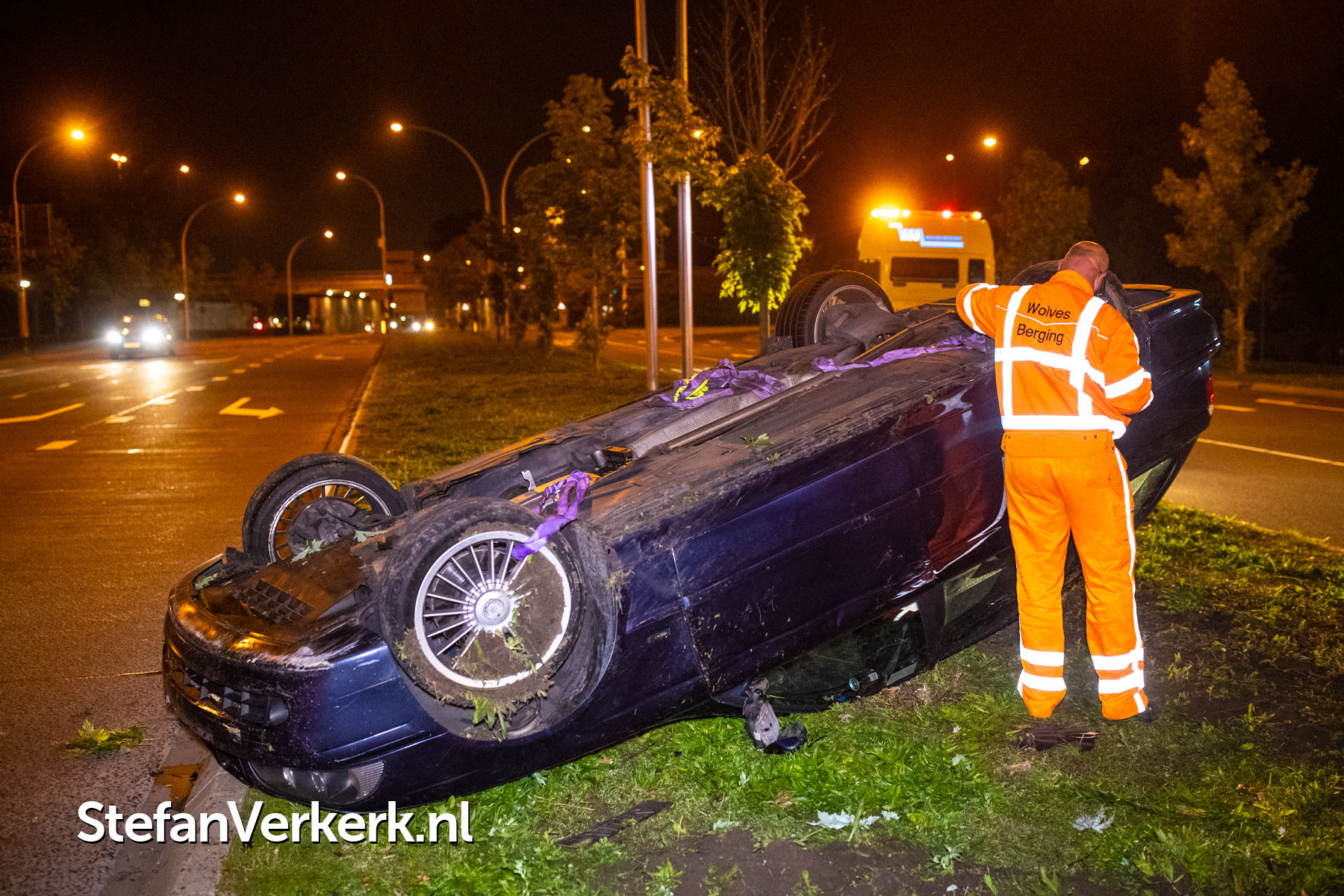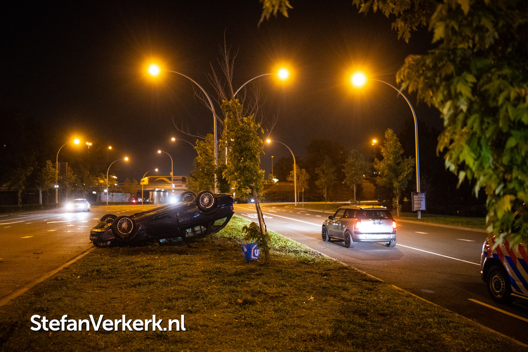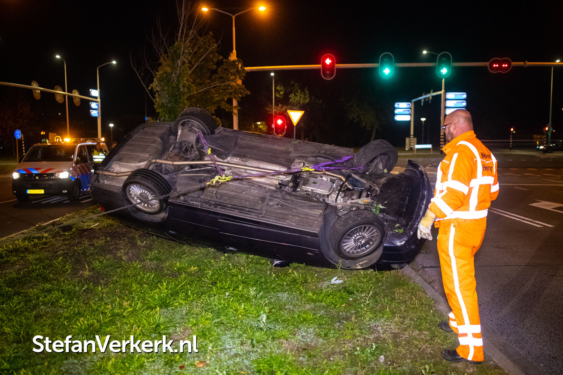 Foto's: Eenzijdig ongeval auto over de kop Katerdijk Blaloweg Zwolle