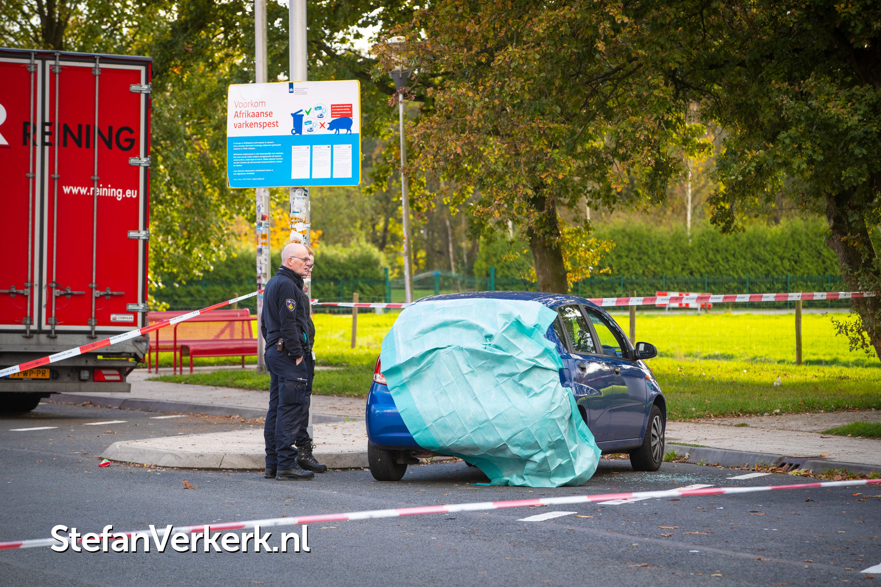 Foto's: Onderzoek na aantreffen dode man in auto A50 parkeerplaats Het Veen Heerde