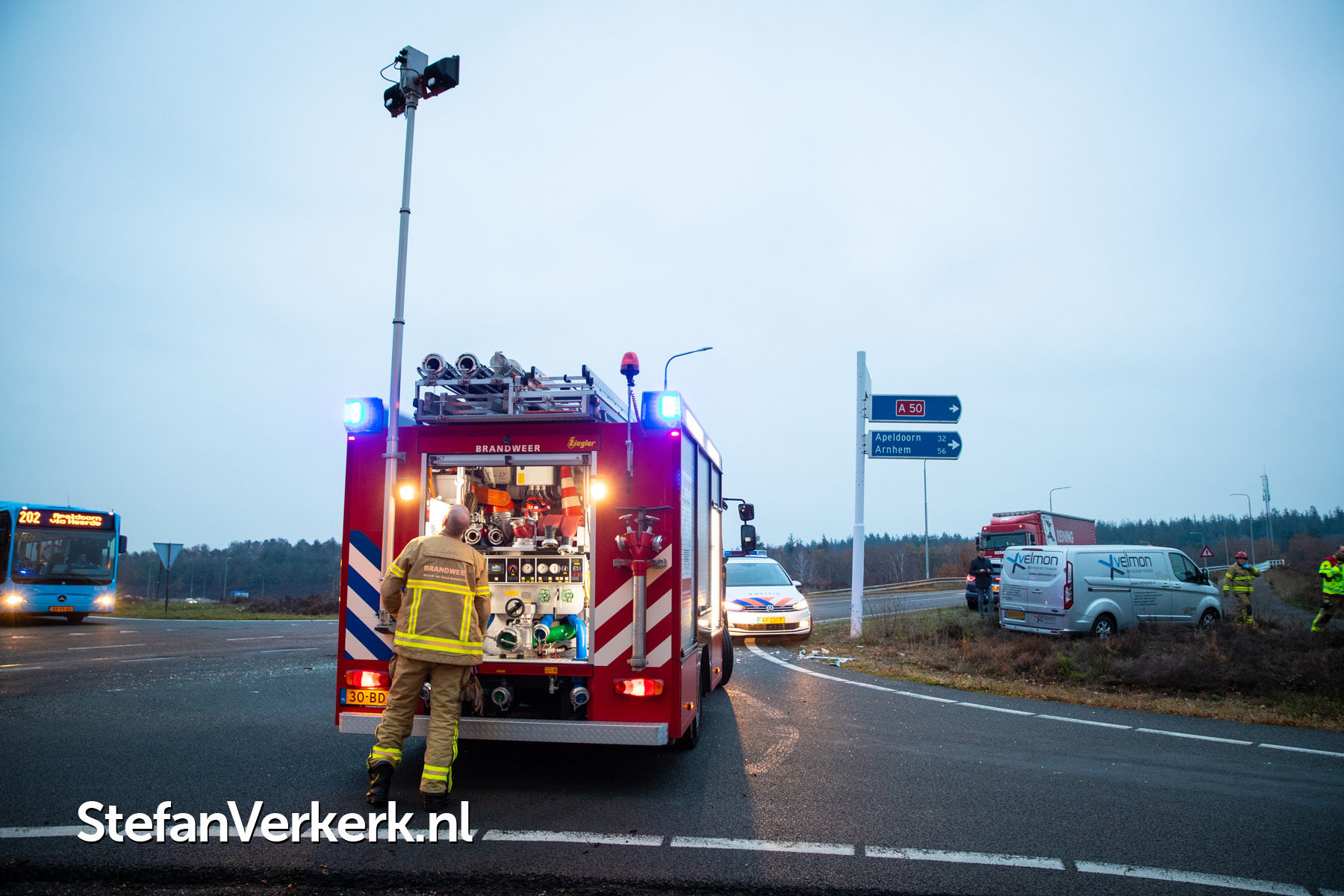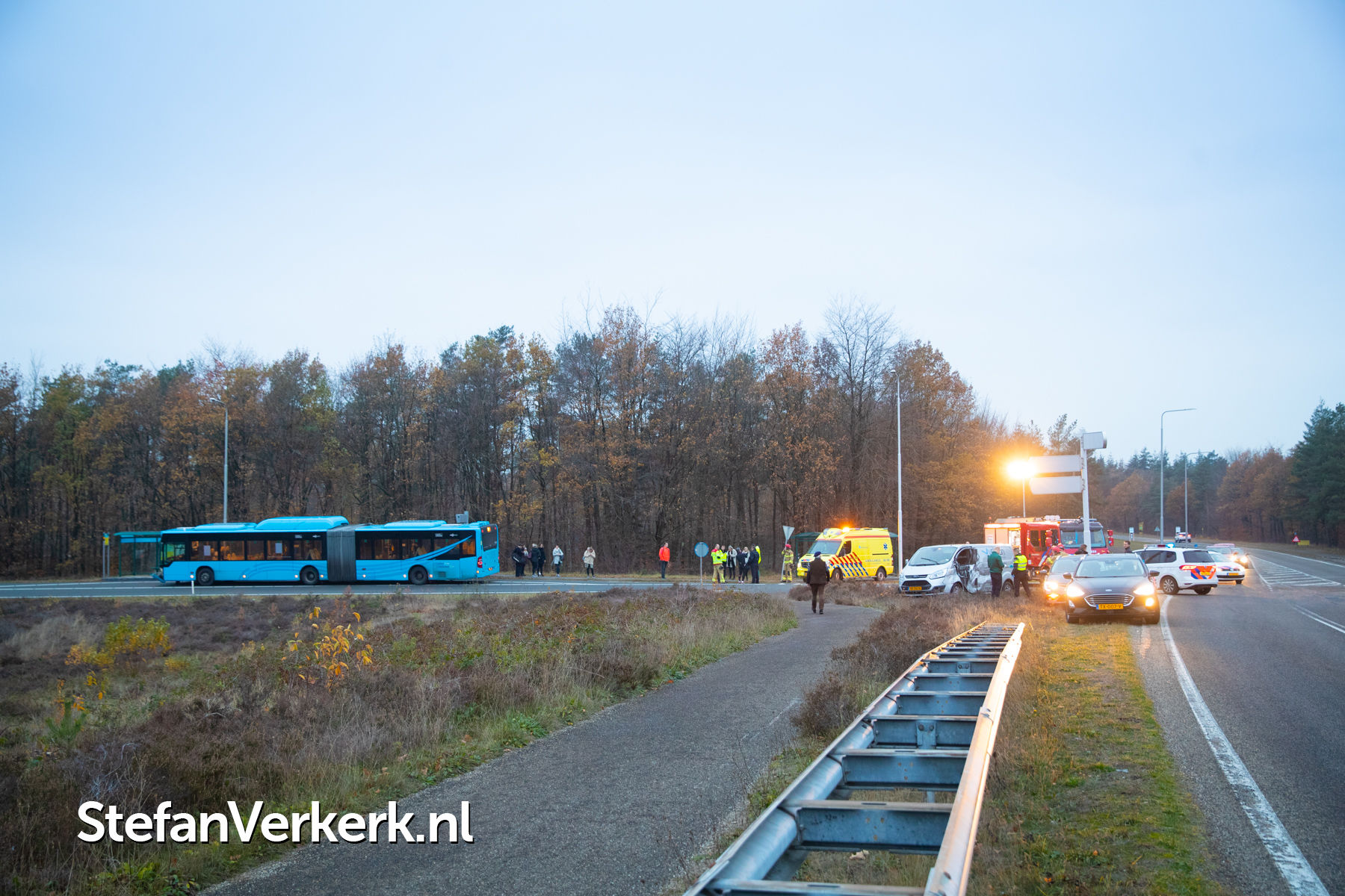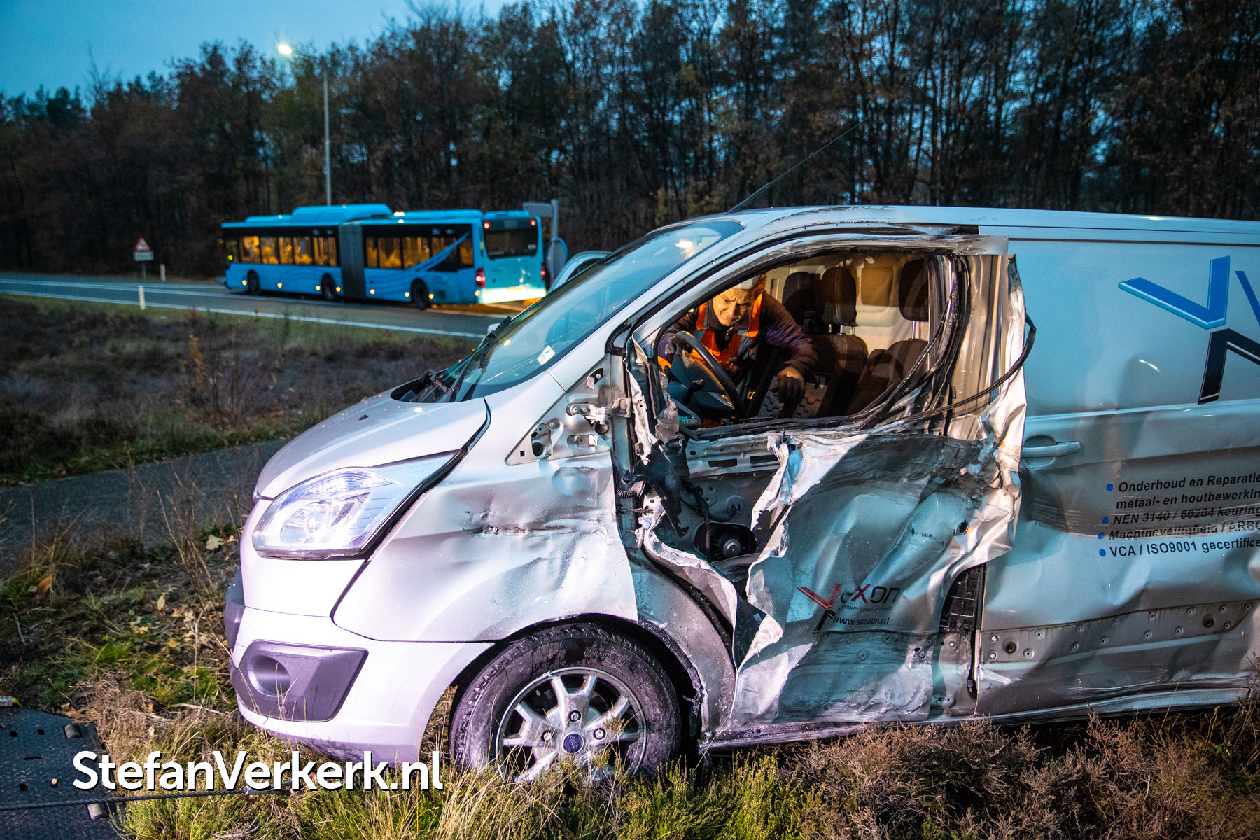 Foto's: Ongeval lijnbus - bedrijfsbusje Hessenweg - afrit A50 Hattem